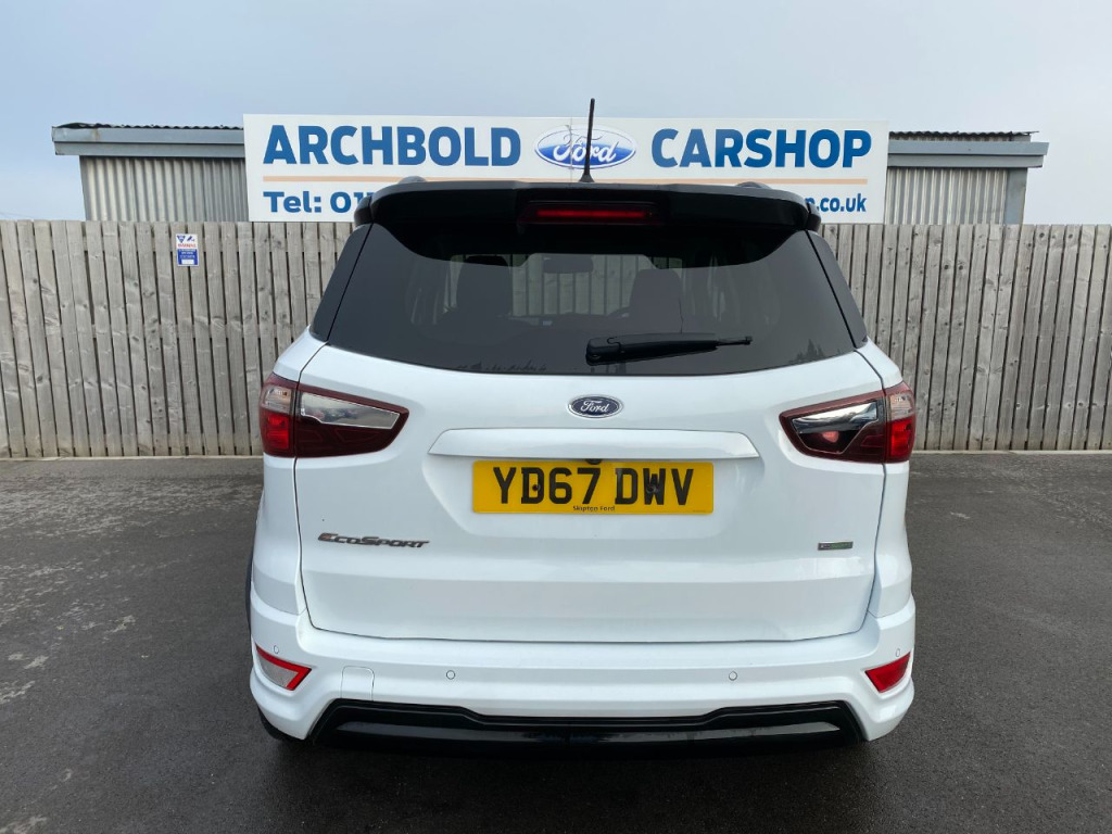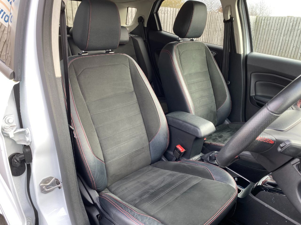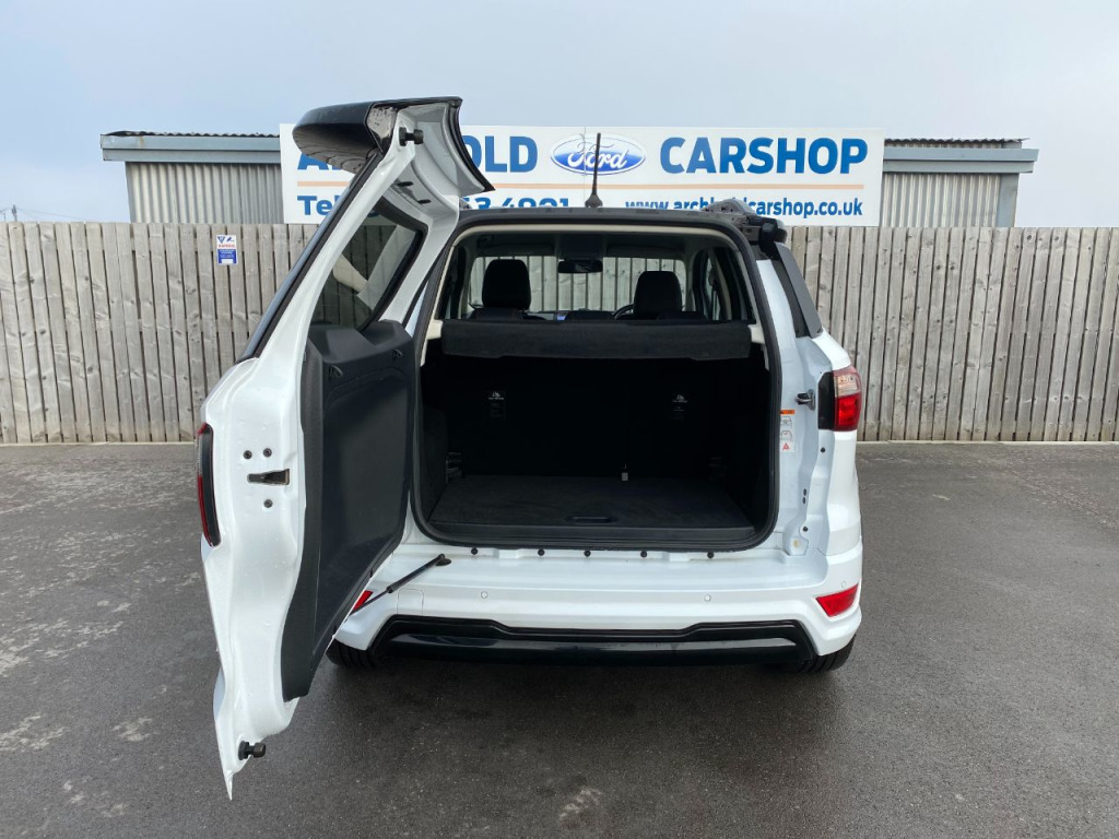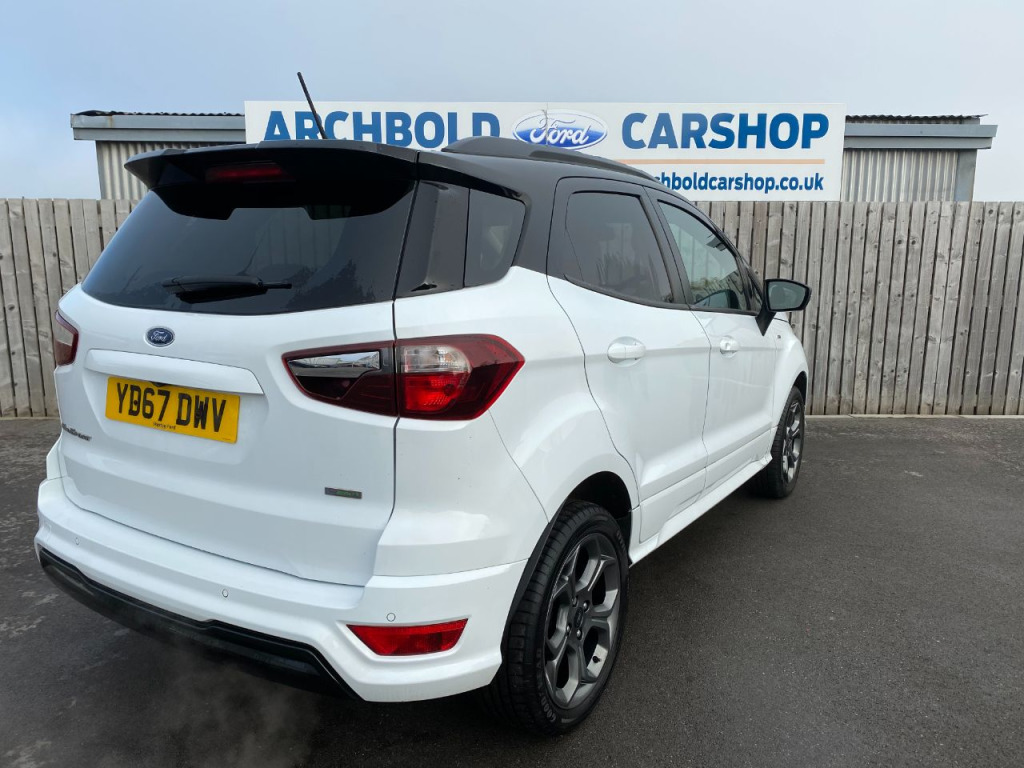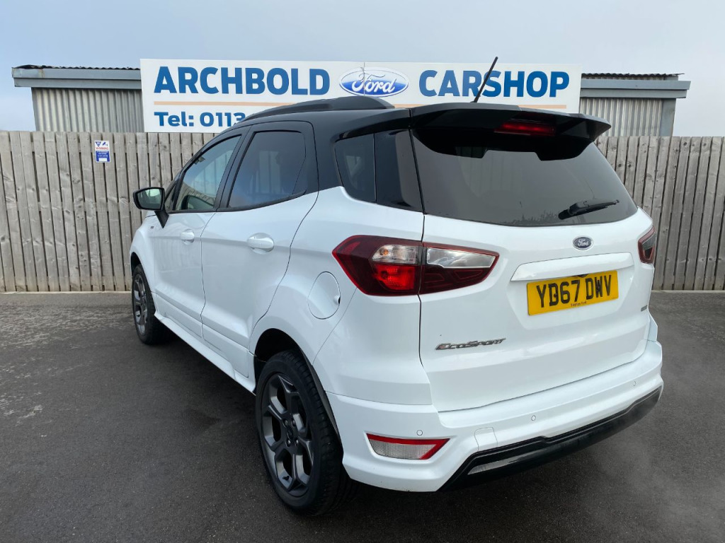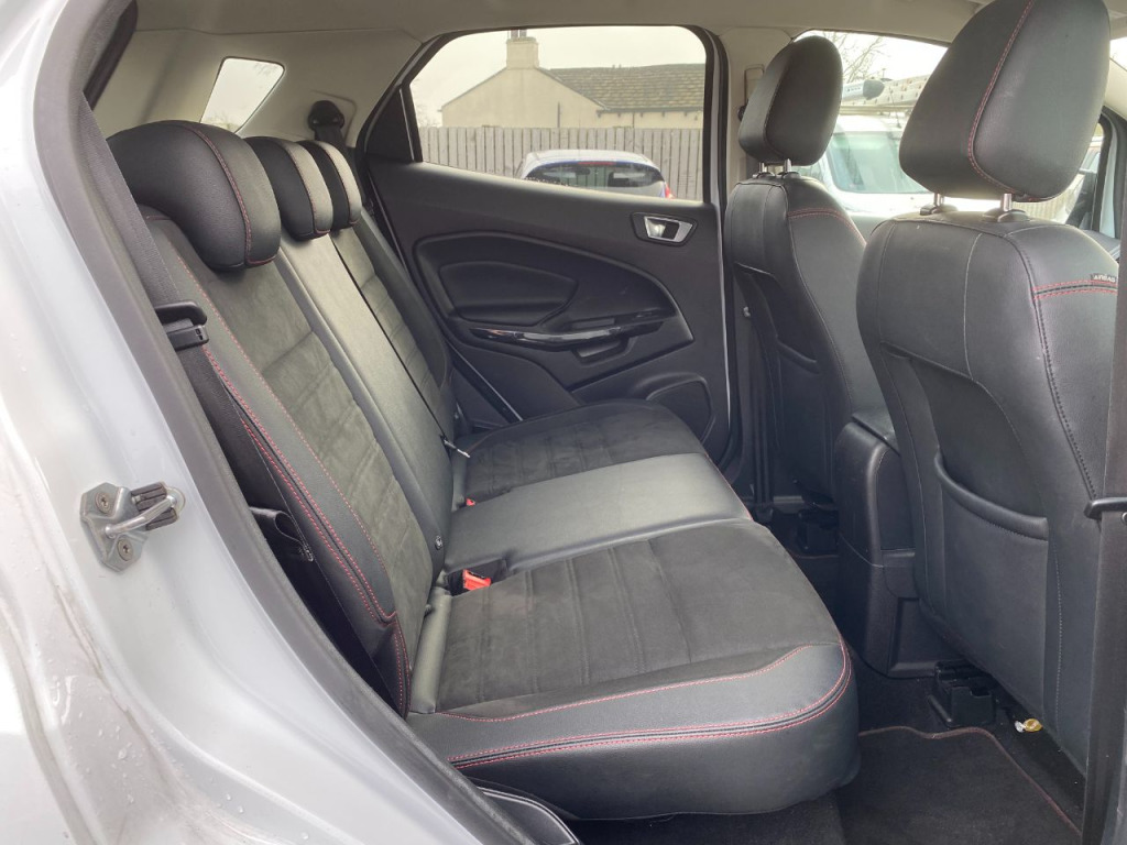 FORD ECOSPORT 1.0 ECOBOOST 140PS ST-LINE IN FROZEN WHITE, FABULOUS CAR WITH GREAT LOOKS, EXCELLENT TO DRIVE WITH LOTS OF GREAT SPEC INCLUDING FULL COLOUR SAT NAV, REAR CAMERA, KEYLESS START, ELEC TRIC WINDOWS, DAB AUDIO PLUS LOTS MORE. ONE KEEPER FROM NEW WITH FULL SERVICE HISTORY, COMES SUPPLIED WITH 1 YEAR FORD WARRANTYDON'T MISS OUT CALL THE SALES TEAM NOW ON 0113 2534901