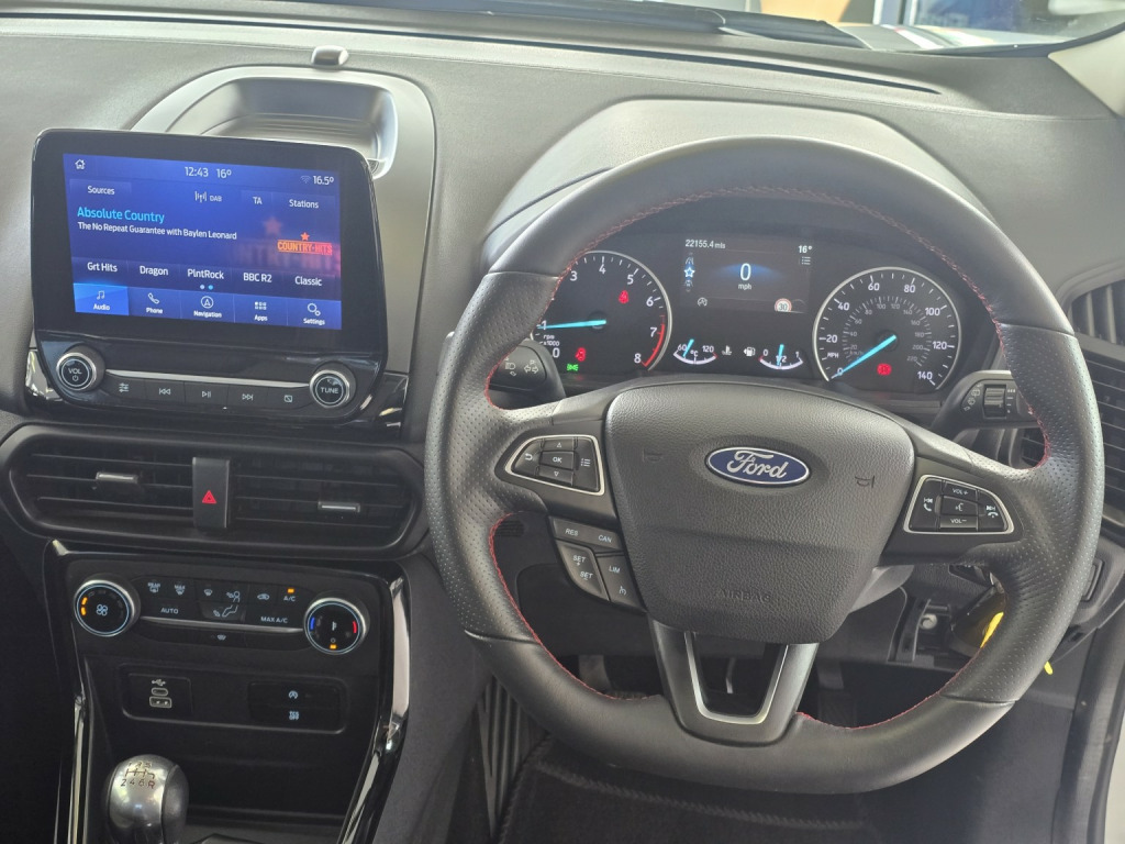 This 2022 Ford EcoSport 1.0 EcoSport ST-Line 5 Door 1.0L Ford EcoBoost 125PS FWD 6 Speed Manual SUV is currently available for £12,995 in Minehead Somerset with Petrol engine and Manual gearbox. For more information or to arrange a viewing, click here to send us an email using form below.