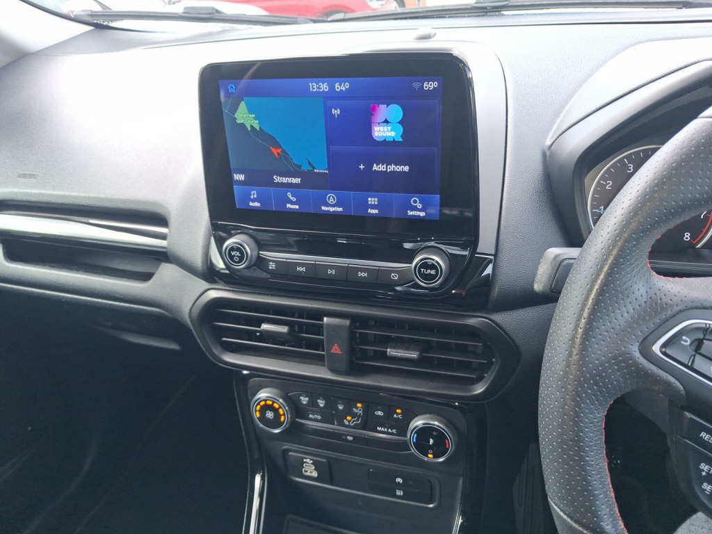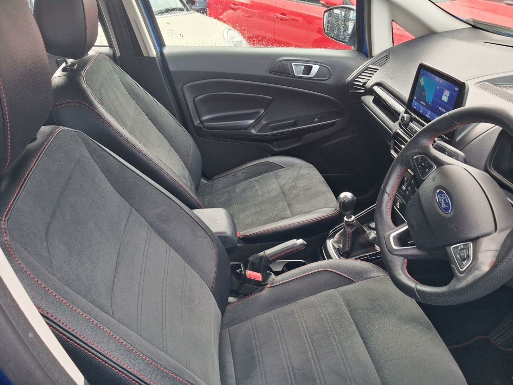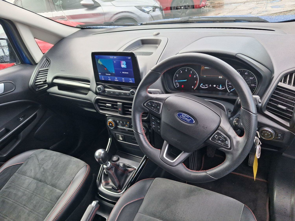 This 2022 Ford EcoSport 1.0 EcoSport ST-Line 5 Door 1.0L Ford EcoBoost 140PS FWD 6 Speed Manual SUV is currently available for £15,495 in Dumfries and Galloway with Petrol engine and Manual gearbox. For more information or to arrange a viewing, click here to send us an email using form below.