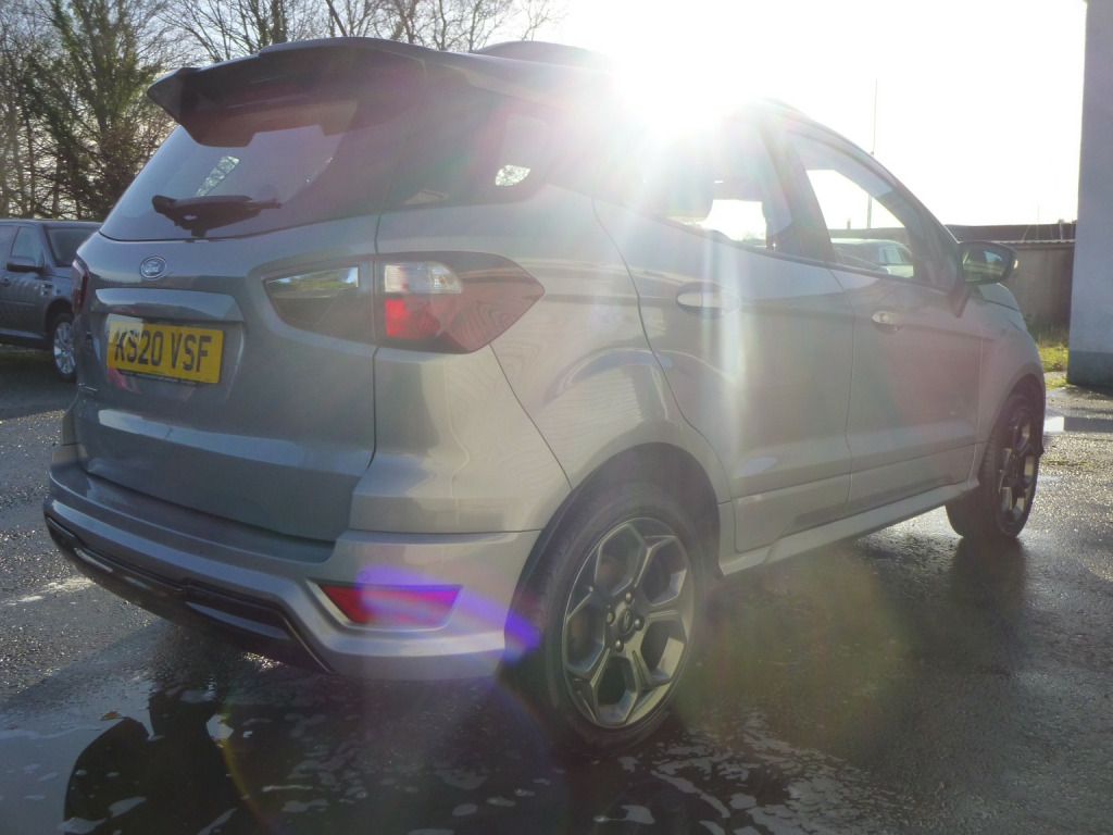 ford ecosport 1.0t 125 ps ecoboost st-line euro6 ulez compliant suv comes with Emergency Assistance Ford SYNC 3 Navigation with 8 inch colour Touchscreen Front and Rear 12v Power Points Cruise Control Gear Shift Indicator Pre-Collision Assist with Rear Parking Sensors [TSR] Traffic Sign RecognitionTyre Pressure Monitoring System 17 inch Alloy Wheels dark tarnish effect Black Roof Rails Electrically Operated and Heated door mirrors Electric Windows Front and rear Front Fog Lights and Turn Indication Light Bezel in Body Colour Front Grille Bars and Surround in Ebony BlackFront and Rear Bumper in Body Colour with Dark Sport Insert Large Rear Spoiler Lower Body Side moulding in Body Colour sT-line design Quickclear Heated Front Windscreen shadow black Roof wing mirror covers rear spoiler ST-Line Bodystyling Kit ST-Line Front Grille ST-Line Styled Rear Lights Automatic Headlights Front Fog Lights Headlights with Courtesy Delay and levelling controlHigh Mounted Brake Light LED Daytime Running Lights LED Low Beam Headlights Adjustable Boot Load Floor Air Conditioning Electronic Automatic Temperature Control [EATC] Ambient Lighting Auto-Dimming Electrochromic Rear-View Mirror Sliding Armrest Centre Console Cup Holder with Chrome Accent Courtesy Light Front with Two Map lights Door Frame Beltline in Black Driver Seat Manual Rotary Knob Lumbar Support Adjustment Driver and Passengers Sun Visor with Covered Vanity Mirror and Ticket Strip on Drivers Side Drivers Seat Height Adjust Drivers Stowage Glovebox Front Seat Passenger Manual Fore-Aft and Recline Adjustment with under seat stowage Full Length Overhead Console with Sunglasses Holder Gearshift Knob Leather-Trimmed with Black Insert and Aluminium Finish Ring and Red Stitching MyKey 60-40 Split Folding rear Seats Sensico-Trimmed Steering Wheel with Red Stitching Soft Instrument Panel Cover Sports Pedals with Stainless Steel Inserts Steering Column Rake and Reach Adjustment Automatic front wipers with Rain Sensor [EPAS] Electric Power Assisted Steering Sports SuspensionFront Passenger air bag De-Activation SwitchThatcham Category 1 with Volume Sensing and Perimeter [abs] Anti-Lock Braking System with [esc] Electronic Stability Control [ESP] Electronic Stability Programme with Hill Launch Assist Engine ImmobiliserFord Easy Fuel Capless Refuelling System [IPS] Intelligent Protection System Rear View Camera Pack Remote Central Locking ISOFIX Mounting Provision for Child Seats rear Outer Seats Only Side Impact Door Beams Rear Wash-Wipe winter pack 6 spd manual transmission,sensico trimmed st-line upholstery with red stitching cruise control front and rear heated screens looks and drives superb finished in fords two tone exclusive body colours roof mirrors spoiler in [g9z] agate black, body colour coded in fords [778] solar silver metallic , , , , , , hpi report available on all vehicles, ,