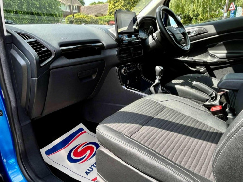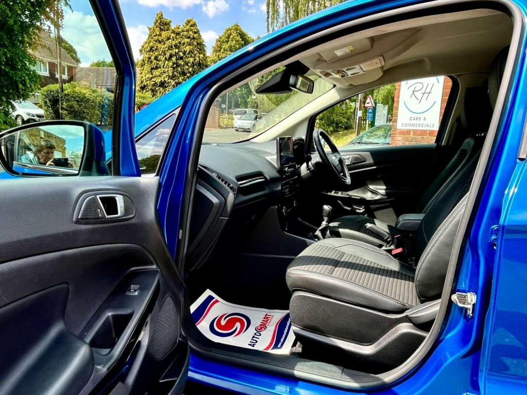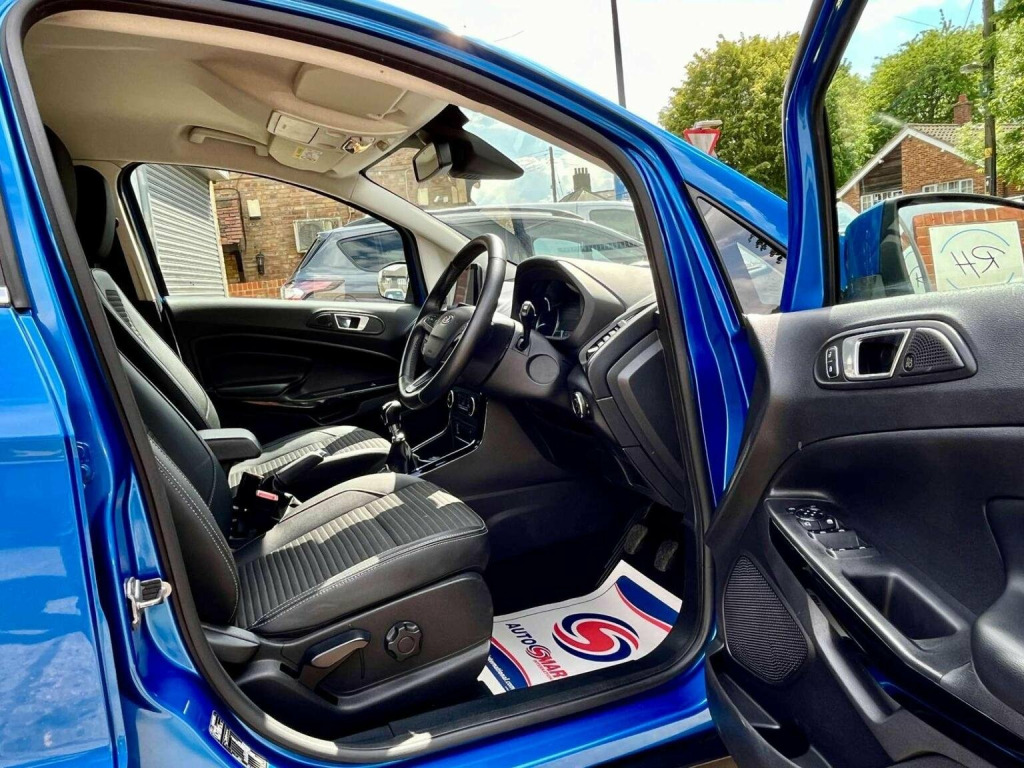 Introducing the Ford Ecosport 1.0T EcoBoost Titanium Euro 6 (s/s) 5dr, a dynamic SUV thats ready to take on any adventure with style and performance. With just 12000 miles on the clock and 1 owner from new this vehicle is practically brand new and waiting for its next driver to take the wheel. Finished in a striking Lightning blue exterior with a sleek half black leather/cloth interior, the Ford Ecosport is as eye-catching as it is comfortable. Plus, with the added X-Pack extras, youll enjoy even more features and upgrades to enhance your driving experience. Dont miss out on the opportunity to own this exceptional Ford Ecosport. Visit us today to test drive this impressive SUV and see for yourself why its the perfect choice for your next adventure.