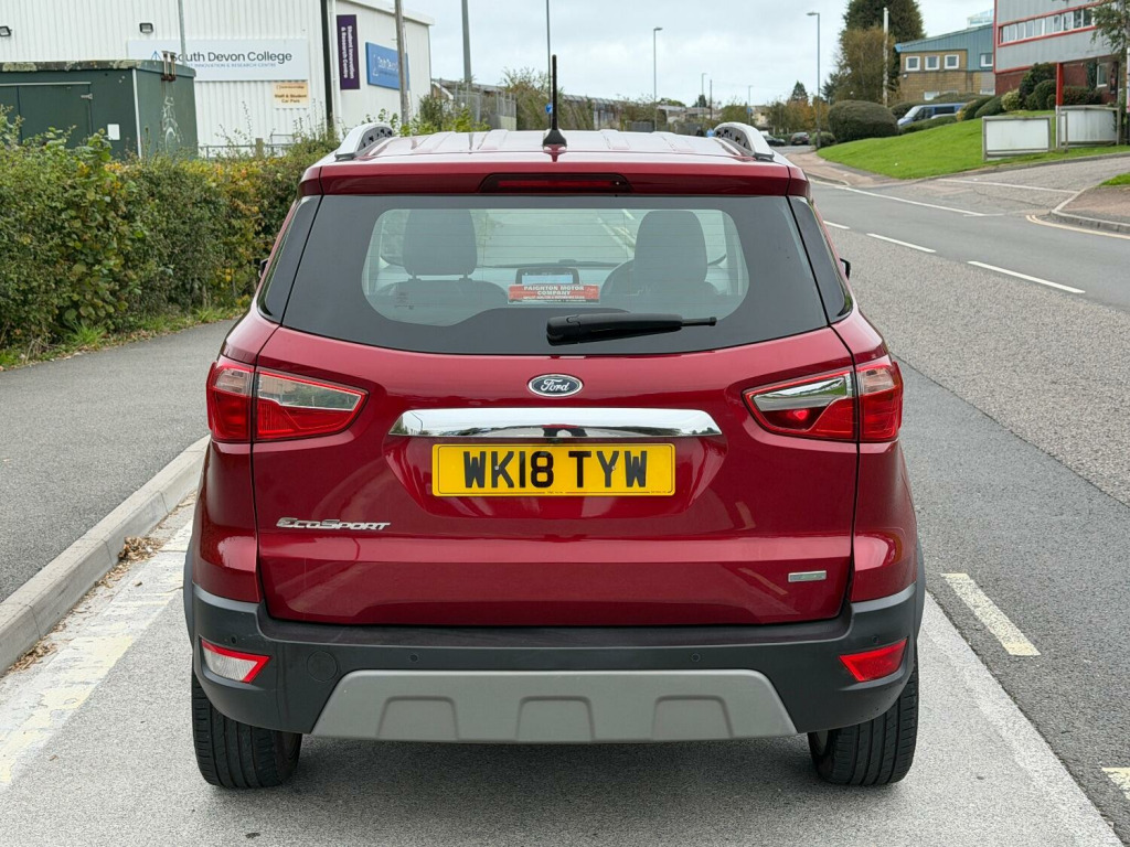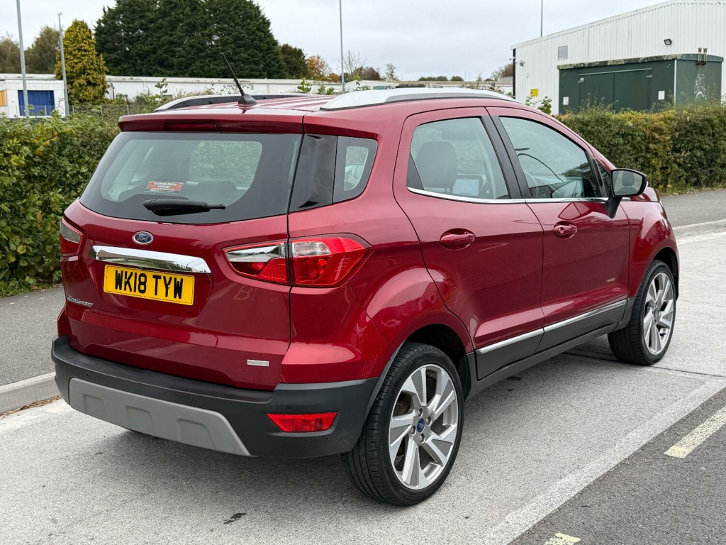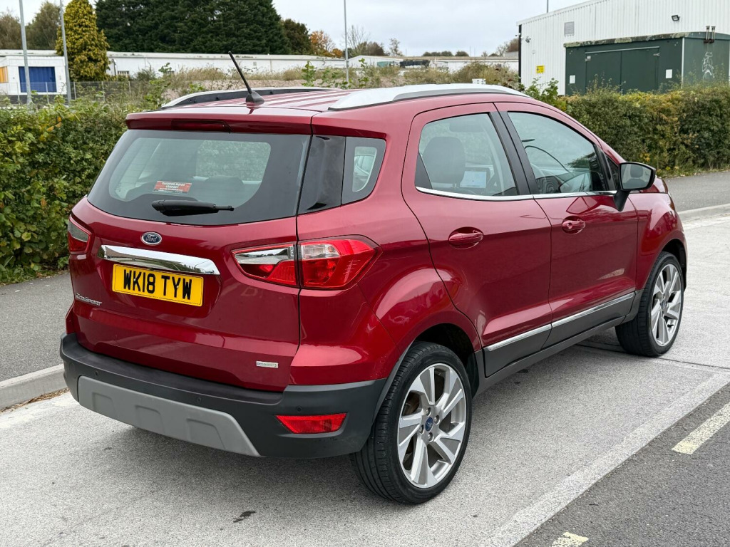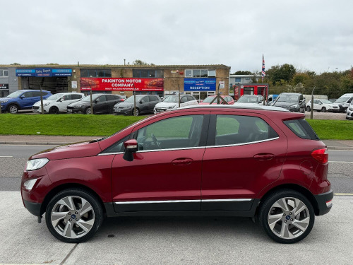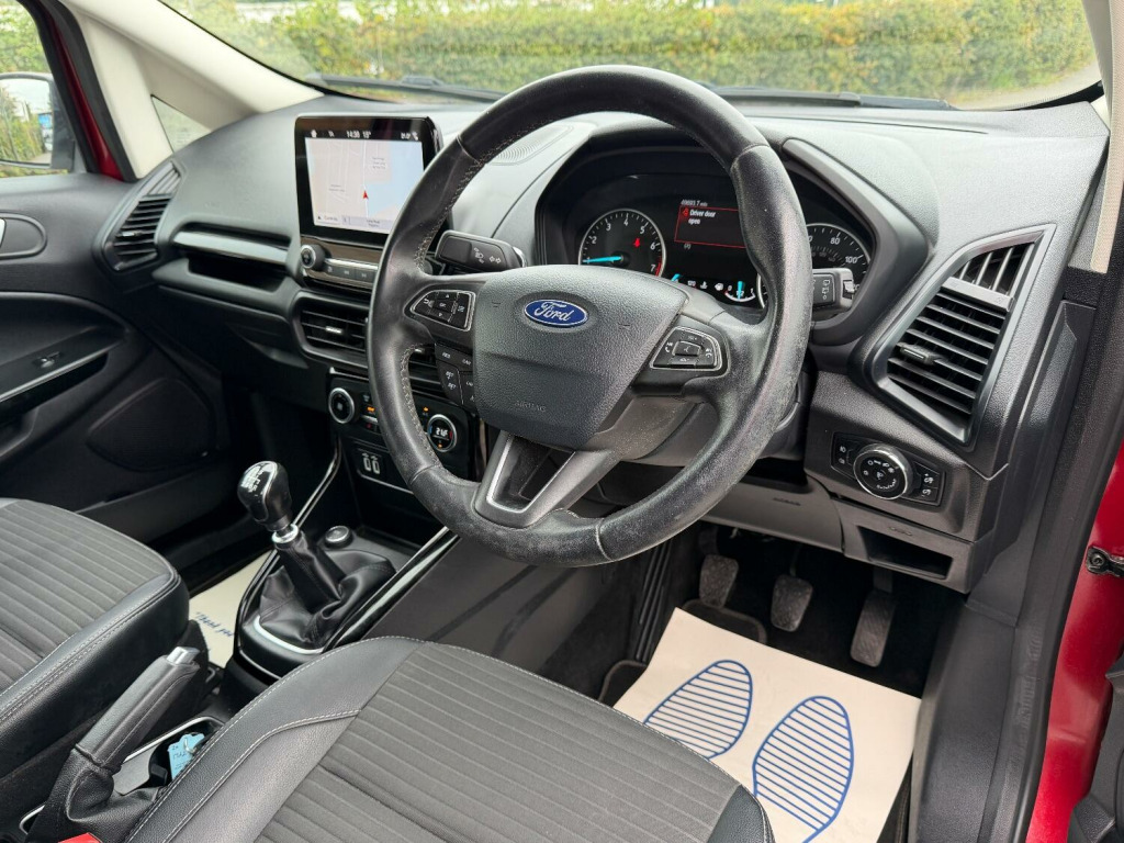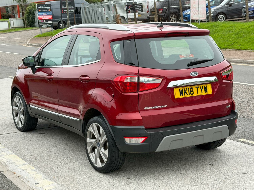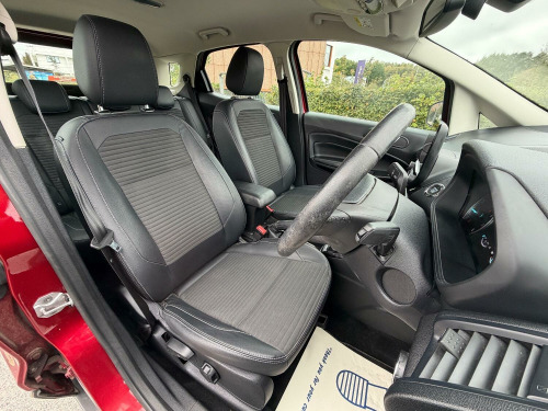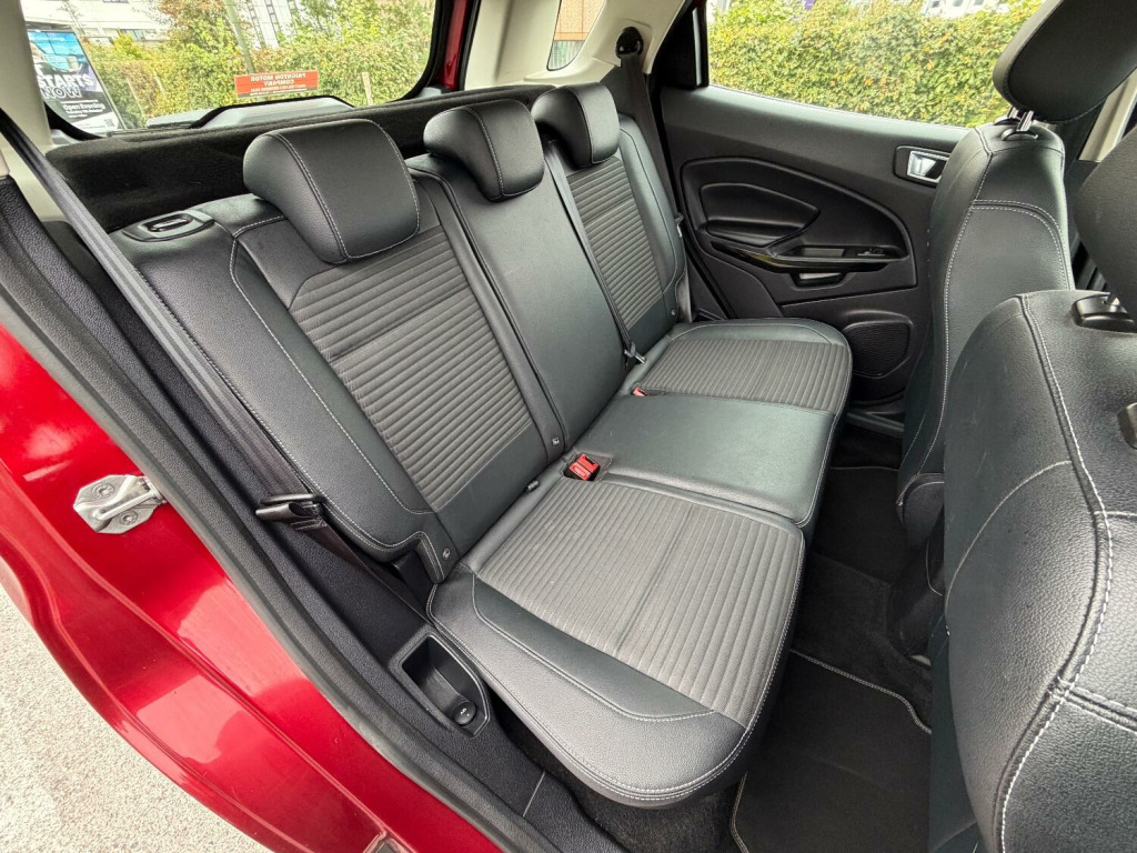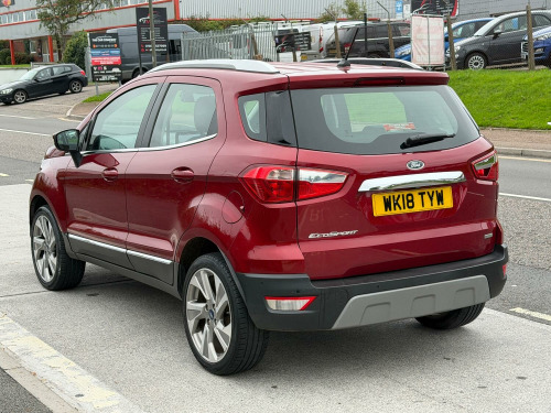 This 2018 Ford EcoSport T Titanium. This stylish SUV is equipped with a 1.0L petrol engine and meets Euro 6 emissions standards. Inside, youll find the Ford DAB Navigation System with Ford SYNC3, offering seamless integration with Android Auto and Apple CarPlay, alongside Bluetooth connectivity for hands free calls and music streaming. Driving is made easier with automatic headlights that switch on when needed, and parking is a breeze thanks to the rear view camera and rear parking sensors. For your comfort, the Electronic Automatic Temperature Control ensures the cabin is always at your preferred temperature. GREAT SPEC - B&O SOUND SYSTEM + REAR VIEW CAMERA + SAT NAV + HEATED SEATS + HEATED STEERING WHEEL + KEYLESS ENTRY. FULL SERVICE HISTORY WITH FORD WITH 7 SERVICES COMPLETED SO FAR, NEW SERVICE INCLUDED. NEW MOT INCLUDED. All of our vehicles are HPI Clear - Viewing and test drive highly recommended - Please see our website for a wider selection of vehicles that are available.