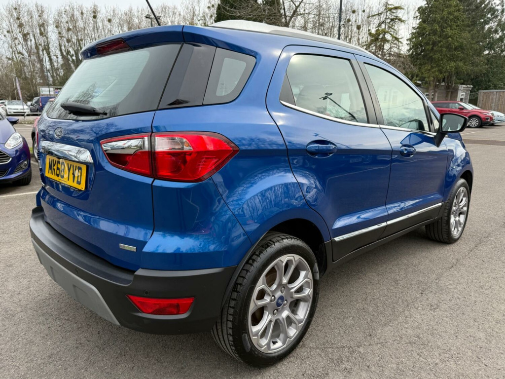 2018 Ford Ecosport Titanium 1.0 T Petrol Manual 5 Door SUV In Blue With Only 39,111 Miles, MOT Until 16/06/26, Full Service History - Last Service At 33,569 Miles 30/07/2024 - Previous Services At 25,582 Miles, 16,663 Miles, 10,386 Miles, ULEZ Compliant - No Clean Air Zone Charges, One Former Keeper, Very Economical - 60.1 MPG (Extra Urban), Road Tax - Only £190 Per Year, Boot Capacity - 356 Litres, In Good Condition Throughout, This Compact SUV Combines A Spacious Interior With A Fuel-Efficient Petrol Engine, Perfect For Those Seeking An Economical Vehicle With Ample Room For Passengers And Luggage. , This High-Spec Titanium Model Comes With Extras Such As Ford Navigation System with Ford SYNC 3 - Apple CarPlay and Android Auto, Bluetooth, Rear View Camera with Rear Parking Sensors, Cruise Control, Air Conditioning - Electronic Automatic Temperature Control - EATC, 2 x USB Connections, Door Mirrors - Power-Foldable Heated with Integrated Side Indicator and Puddle Lights, Power Front and Rear Windows with Global Opening-Closing, 17in Alloy Wheels - 10 Spoke, Silver Roof Rails, Halogen Headlamps with LED Day Running Lights, Front Fog Lights and Turn Indication Light Bezel, Glovebox with Cool Bin, Height Lumbar Adjustment on Drivers Seat, Keyless Start with Ford Power Start Button, Multi-Function Steering Wheel - Leather-Trimmed, ISOFIX Mounting Provision for Child Seats - Outer Seats, , All Vehicles Are Fully Valeted With A 45 point inspection check undertaken, Part Exchange & Test Drive Welcome, Finance Available On All Cars - Come Direct For No Admin Fees & Competitive Prices - Good and Bad Credit Welcome - No Obligation Quote, 3 - 36 Month Warranty Available, Open 7 Days A Week. , For More Pictures and Info Please Visit www.bristolautohub.com, , The specification is for a typical vehicle of this model and year when manufactured. Every effort has been made to ensure the accuracy of the information provided however there may be differences to the specification of the actual vehicle in stock, or the vehicle may have been modified. Do not rely entirely on the listed specification and please check to confirm that any features which may influence your decision to buy are present, and the actual specification of the vehicle meets your requirements and expectations.