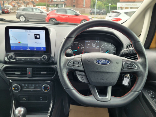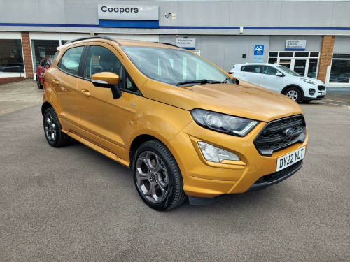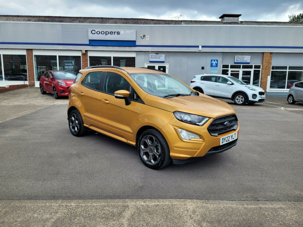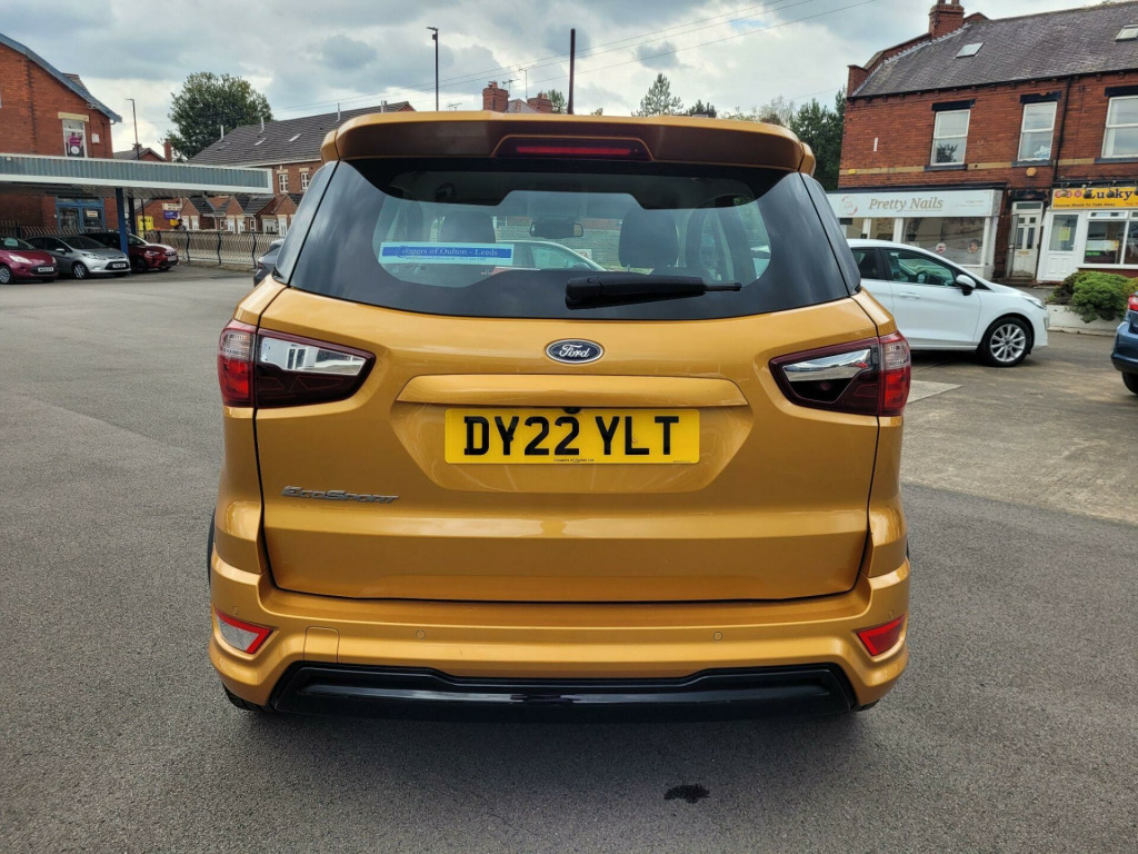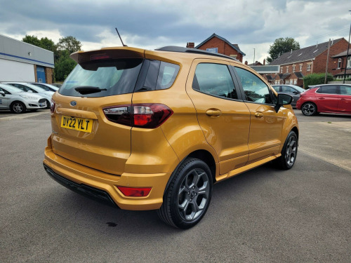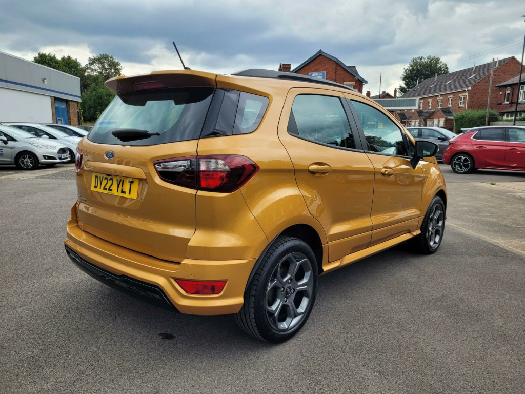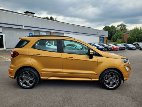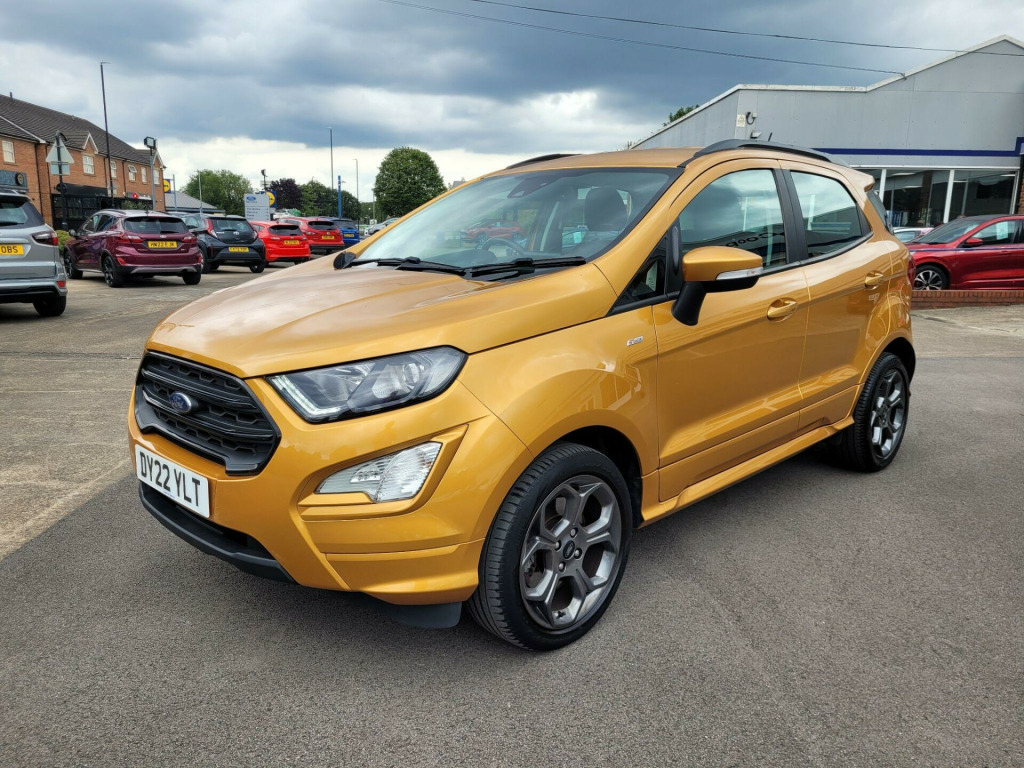 Priced At £13,999.00 This One Owner Ex Motability Ford EcoSport 1.0T 125PS Ecoboost ST-Line 5dr Finished In Luxe Yellow Metallic Paint is a smart choice. The sporty ST-Line trim enhances the appeal of this model, which features a responsive 1.0L petrol engine and complies with Euro 6 emission standards. Equipped with the Rear View Camera Pack, including rear parking sensors making manoeuvring easier. Ford SYNC 3 Navigation, complete with an 8in touchscreen, Android Auto, and Apple Car Play, keeps you connected on the move. The inclusion of electronic automatic temperature control (EATC) ensures a comfortable environment, while LED low beam headlights provide enhanced visibility.This EcoSport stands out with its fuel economy, offering around 46 mpg, which means fewer trips to the petrol station compared to similar vehicles. The low CO2 emissions also mean that you can drive with a clearer conscience. This Ford EcoSport T ST-Line offers a blend of style, technology, and efficiency. Presented In Exceptional Condition Inside And Out Our Sale Price Would Include; A Full 12 Months MOT, A Convenience Check ( Annual Inspection), A 3 Months/Unlimited Mileage Ford Protect Parts And Labour Warranty And Up To 12 Months Ford Roadside Assistance (Breakdown Cover), Or Until The Car Is Due Its Next Service, Which Ever Comes The Soonest. We Do Not Charge Any Administration Fees,The Only Add On Costs Are For Road Tax And Any Additional Warranty Period Requested By the New Keeper.