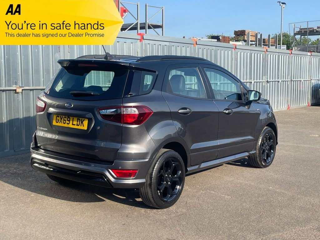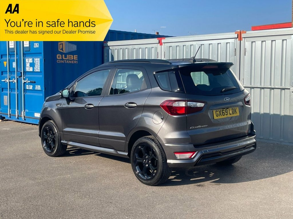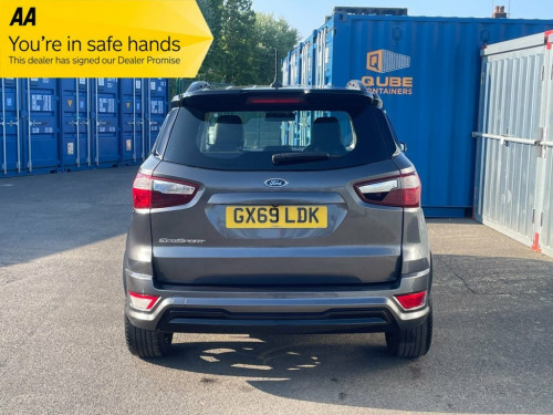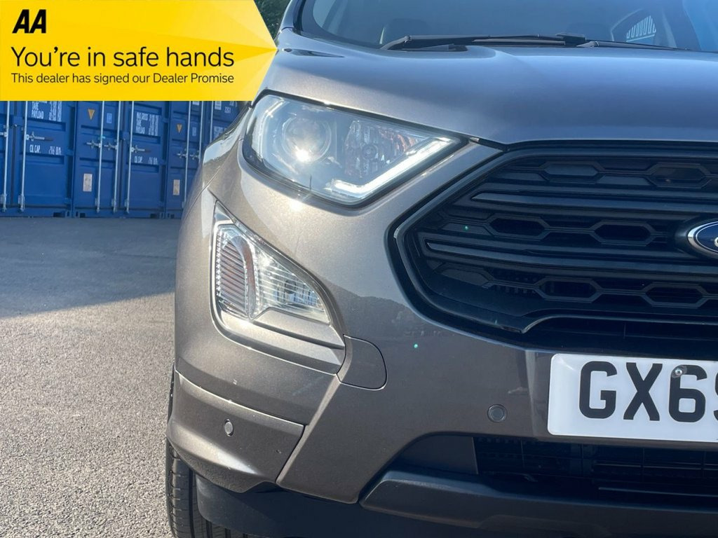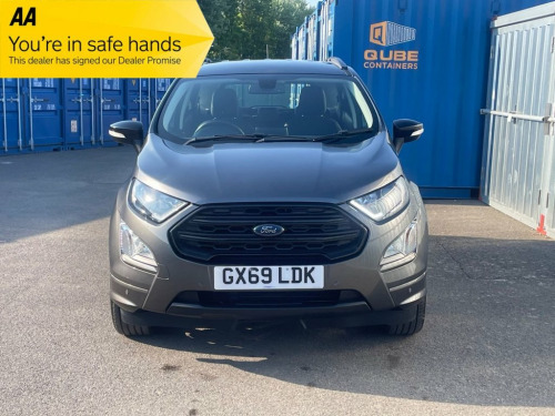 Graham Marsh Car Sales Ltd are delighted to offer this superb 2019 (69) Ford EcoSport 1.0T EcoBoost GPF ST-Line SUV 5dr Petrol Auto Euro 6 (s/s) (125 PS), finished in glorious Magnet Metallic with power steering, electric windows, remote central locking, driver and passenger airbags, anti-lock brakes, ESP, gloss black alloy wheels, cruise control, AUX, USB, Bluetooth, sat nav, reversing camera, front and rear parking sensors—an absolutely stunning one-owner example with full Ford dealership service history, just 29,000 miles, ULEZ compliant, and ready to drive away. Magnetic, Front Parking Sensors, Rear Privacy Glass