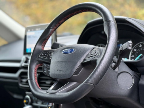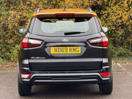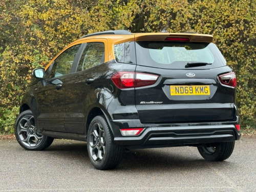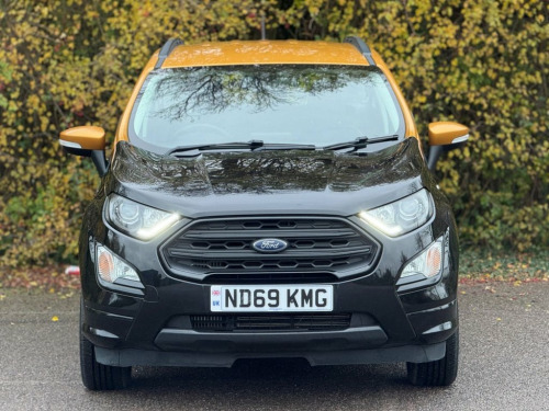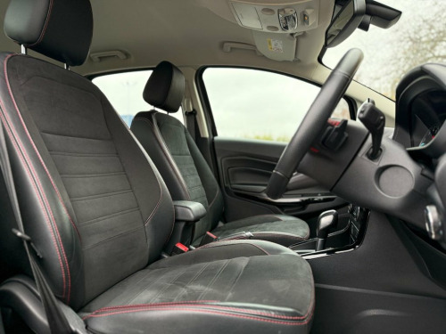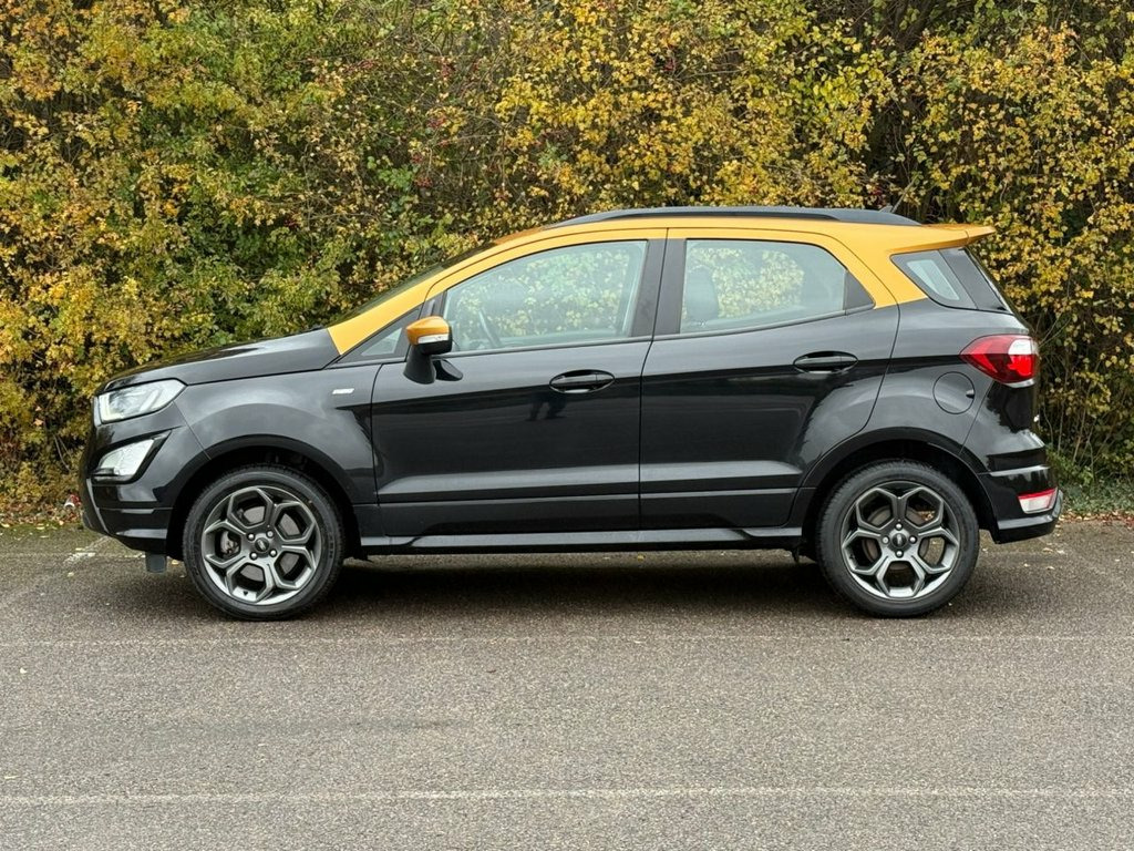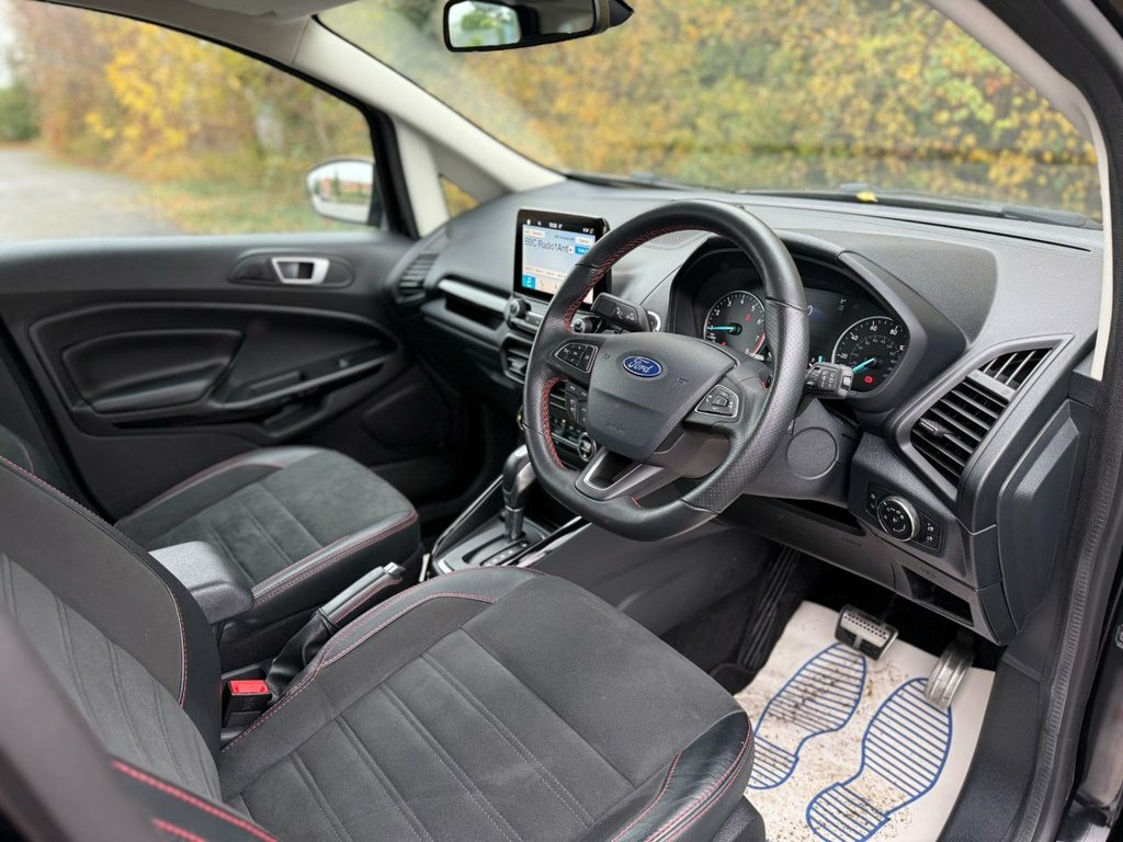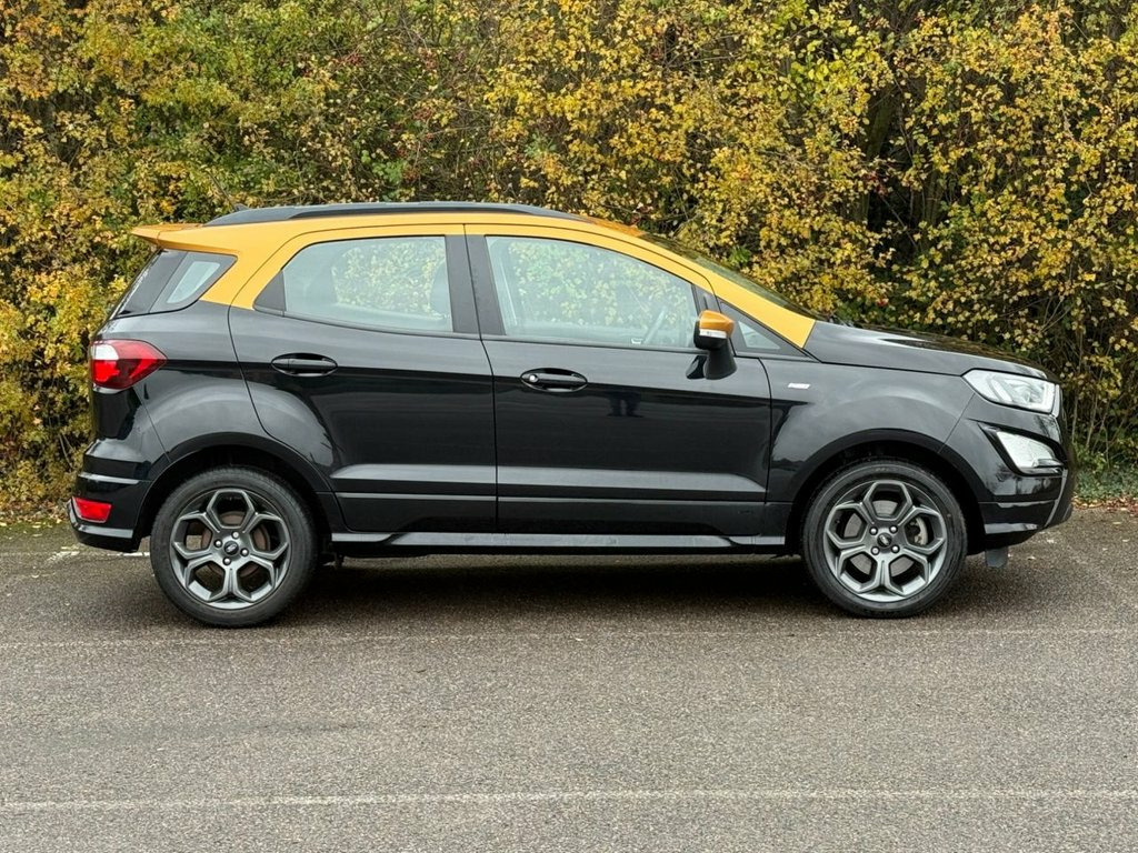 Here for sale at Leigh Cars Ltd we are delighted to present this lovely low mileage example of the extremely popular low mileage Ford Ecosport GPF 1.0 ST Line 5dr 125bhp petrol automatic SUV finished in agate black metallic paint with luxe yellow roof, and mirror caps, making this really stand out from the crowd, a fantastic colour combo! This wonderful example comes with a great service history - 4 services - last completed December 2025. The car also comes with a brand new advisory free MOT for your peace of - expiry December 2026. This particular example benefits from some great standard features including half leather alcantara interior, Ford SYNC 3 satellite navigation, Apple Car Play / Android Auto, rear parking sensors + rear camera, DAB radio, climate control with ice cold air conditioning, bluetooth for phone and music, cruise control + speed limiter, electric windows + mirrors, automatic lights + wipers, Ford quickclear windscreen, power fold mirrors, 17" alloy wheels, remote central locking, 2 keys + much much more. This would make an ideal family car with an abundance of space and practicality with a great sized boot! Road tax is only £195 per year and economy figures of 38.7mpg combined on average and is ULEZ charge exempt, which make this one a no brainer! This beautiful rare low mileage automatic example will not be with us long, book in your test drive today to avoid disappointment... As we are an AA accredited dealer you will receive 12 months c Miko Dinomica Fabric-Salerno Leather-Vin, Luxe Yellow Contrast Roof and Mirrors, Agate Black, 17in Alloy Wheels - 5 Spoke Dark Tarnish, Adjustable Boot Load Floor, Air Conditioning - Electronic Automatic , Airbags - Curtain, Airbags - Driver and Front Passenger, Airbags - Drivers Knee, Airbags - Front Passenger De-Activation , Alarm - Thatcham Category 1 with Volume , Ambient Lighting - Instrument Panel and , Analogue Instrument Cluster, Anti-Lock Braking System - ABS with Elec, Auto-Dimming Electrochromic Rear-View Mi, Automatic Headlights, Black Headlight Bezel, Black Roof Rails, Centre Console Cup Holder with Chrome Ac, Centre Console with Covered Bin and Slid, Child Locks, Courtesy Light