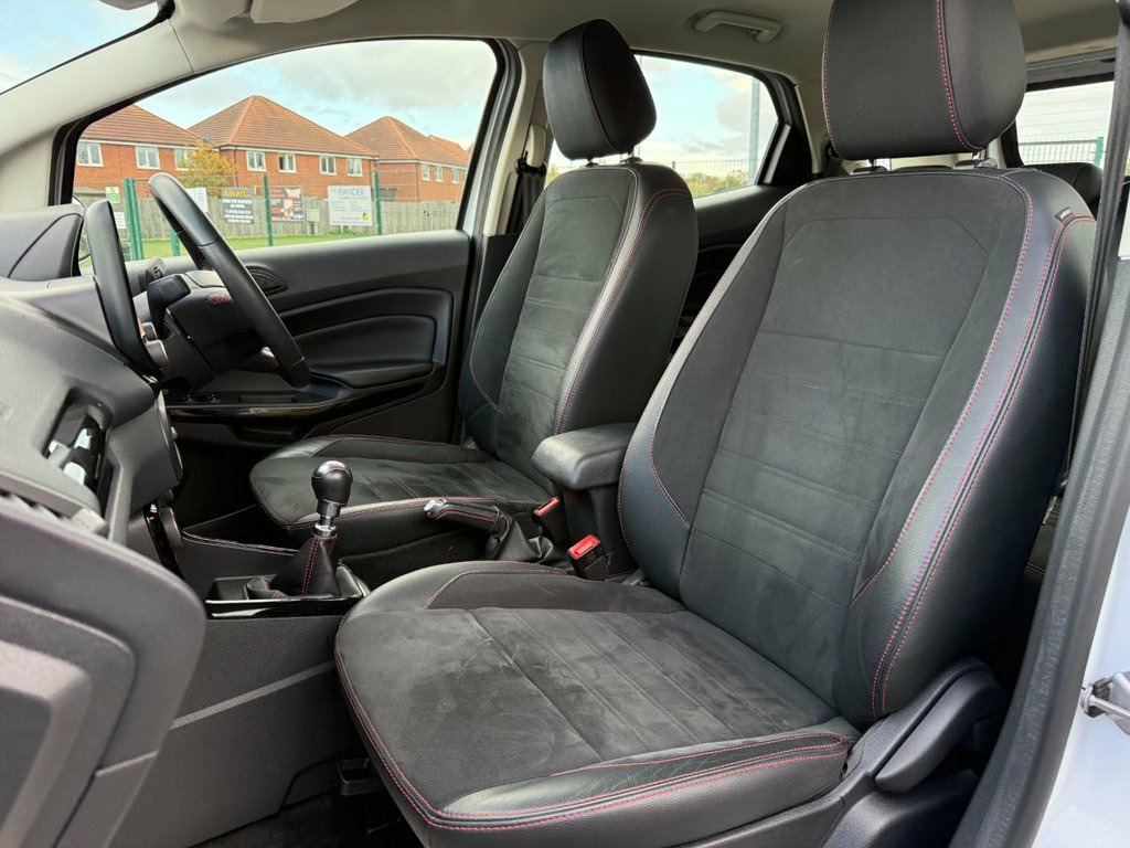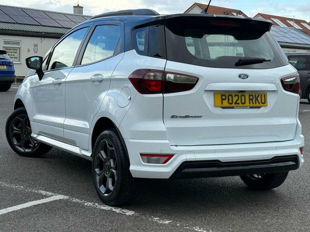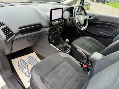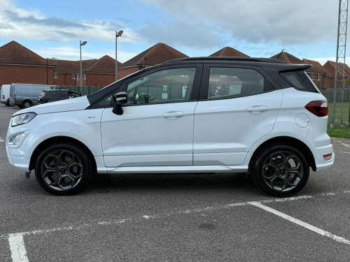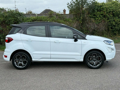Here for sale at Leigh Cars Ltd we are delighted to present this lovely low mileage example of the extremely popular ULEZ EXEMPT Ford Ecosport GPF 1.0 ST Line 5dr 125bhp petrol manual SUV finished in frozen white paint with contrasting black roof, mirror caps and A pillars. This wonderful example comes with a great service history - 4 services - last completed September 2025. The car also comes with a brand new MOT for your peace of - expiry September 2026. This particular example benefits from some great standard features including half leather alcantara interior, Ford SYNC 3 satellite navigation, Apple Car Play / Android Auto, rear parking sensors + rear camera, DAB radio, climate control with ice cold air conditioning, bluetooth for phone and music, cruise control + speed limiter, electric windows + mirrors, automatic lights + wipers, Ford quickclear windscreen, power fold mirrors, 17" alloy wheels, remote central locking, 2 keys + much much more. This would make an ideal family car with an abundance of space and practicality with a great sized boot! Road tax is only £195 per year and economy figures of 47.1mpg combined on average make this one a no brainer! This beautiful rare example also benefits from being ULEZ charge exempt. Book in your test drive today to avoid disappointment... As we are an AA accredited dealer you will receive 12 months complimentary AA roadside assistance. AA warranty packages available up to 2 years and superb low rate zero deposit Frozen White, 17in Alloy Wheels - 5 Spoke Dark Tarnish, Adjustable Boot Load Floor, Air Conditioning - Electronic Automatic , Airbags - Curtain, Airbags - Driver and Front Passenger, Airbags - Drivers Knee, Airbags - Front Passenger De-Activation , Alarm - Thatcham Category 1 with Volume , Ambient Lighting - Instrument Panel and , Analogue Instrument Cluster, Anti-Lock Braking System - ABS with Elec, Auto-Dimming Electrochromic Rear-View Mi, Automatic Headlights, Black Headlight Bezel, Black Roof Rails, Centre Console Cup Holder with Chrome Ac, Centre Console with Covered Bin and Slid, Child Locks, Courtesy Light - Front with Two Map Ligh, Courtesy Light - Rear, Cruise Control, Door Frame Be