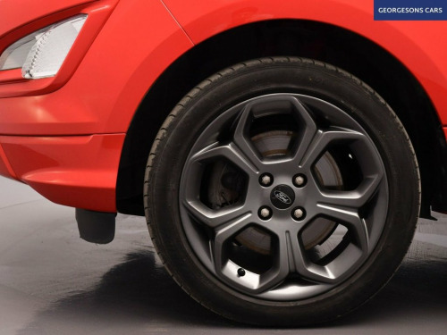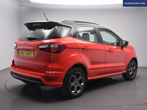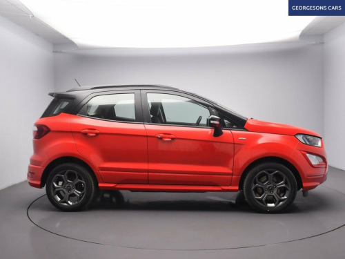 ThIs Ford EcoSport 1.0T EcoBoost GPF ST-Line combines a responsive 1.0-litre turbo petrol engine with 125hp, delivering 0-62mph in 9.9 seconds and up to 52.3mpg in this front-wheel-drive setup with a 6-speed manual transmission. The ST-Line trim adds sporty flair wit , dynamic styling, and a tuned chassis for engaging urban driving. With four services, this EcoSport is in excellent condition. Navigate effortlessly with integrated satellite navigation, Apple CarPlay, Bluetooth, and DAB radio, ensuring seamless connectivity on every journey. Parking is a breeze thanks to the reverse camera and parking sensors, providing clear visibility and confidence in tight spaces. Stay comfortable with climate control and a heated windscreen, offering personalized warmth and quick defrosting year-round. Cruise control with speed limiter enhances relaxation on highways. Start-stop technology improves fuel economy in traffic. The spacious five-door SUV design includes a 356-litre boot for practicality. Contact us today to test drive this stylish compact SUV! Adjustable Boot Load Floor, Air Conditioning - Electronic Automatic , Airbags - Curtain, Airbags - Driver and Front Passenger, Airbags - Drivers Knee, Airbags - Front Passenger De-Activation , Alarm - Thatcham Category 1 with Volume , Analogue Instrument Cluster, Anti-Lock Braking System - ABS with Elec, Auto-Dimming Electrochromic Rear-View Mi, Automatic Headlights, Black Headlight Bezel, Black Roof Rails, Centre Console Cup Holder with Chrome Ac, Centre Console with Covered Bin and Slid, Child Locks, Courtesy Light - Front with Two Map Ligh, Courtesy Light - Rear, Cruise Control, Door Frame Beltline - Black, Door Handles - Body Colour, Door Mirrors - Electrically Operated and, Driver and P