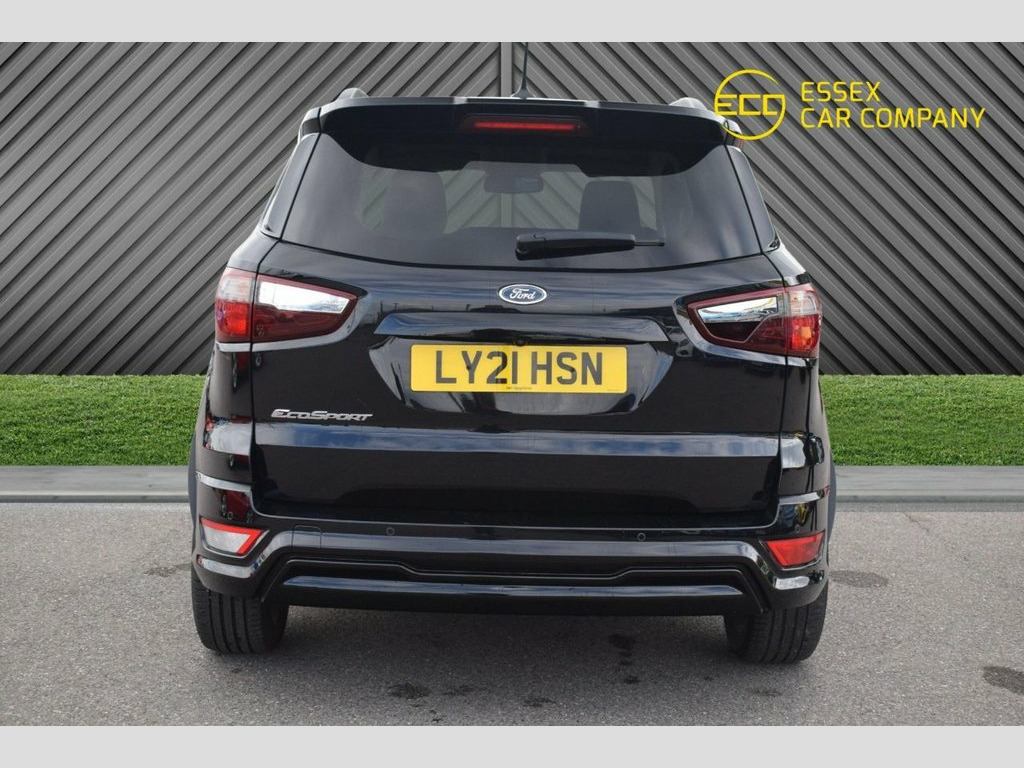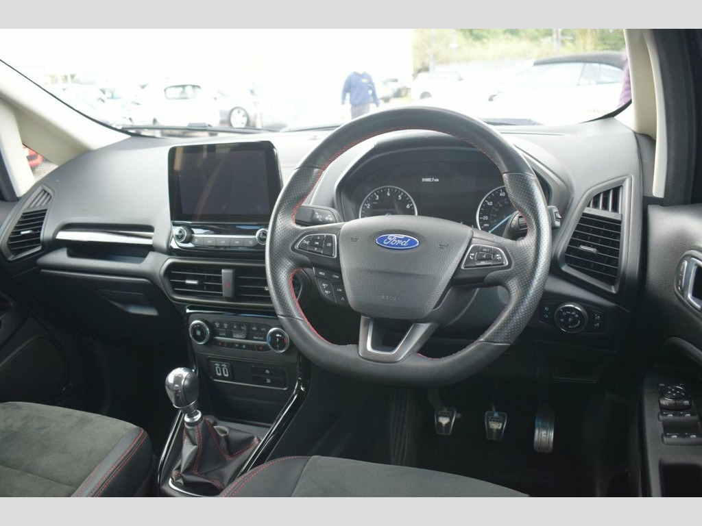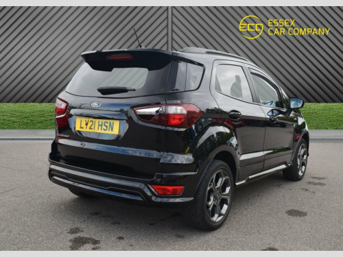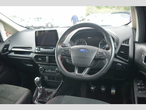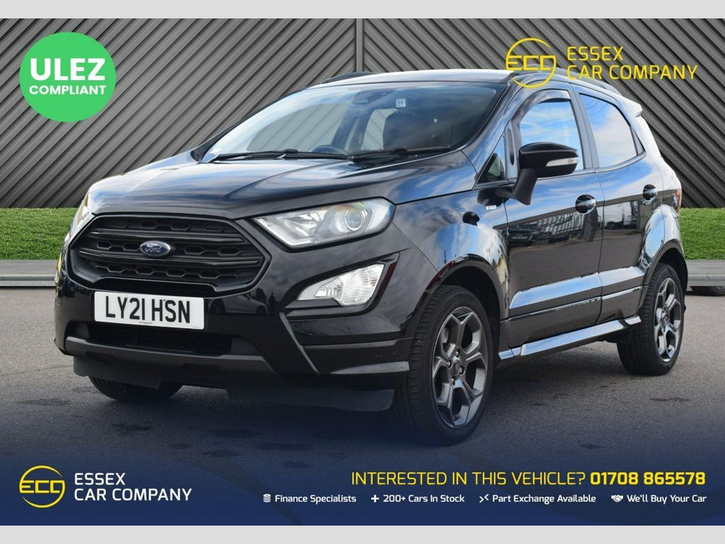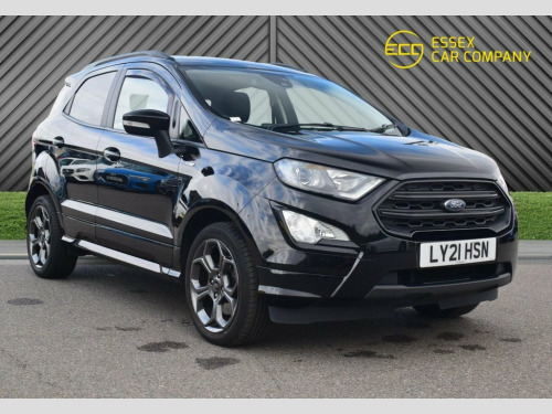 This 2021 Ford EcoSport T ST-Line offers excellent value with its MOT valid until April 2026, providing peace of mind for the coming years. This stylish ST-Line model is equipped with a responsive 1.0L petrol engine and meets Euro 6 emissions standards. While it has a partial service history, the inclusion of the X-Pack brings keyless entry and a premium branded sound system, enhancing your driving experience. The Winter Pack ensures comfort with heated seats and a heated steering wheel, perfect for colder months.  Further enhancing this Ford EcoSport is the Ford SYNC 3 Navigation system featuring an 8-inch touchscreen, compatible with both Android Auto and Apple CarPlay, keeping you connected and on track. Rear parking sensors assist with manoeuvring, while the electronic automatic air conditioning maintains a comfortable cabin temperature. With a fuel economy of 46 mpg, this vehicle is more economical than many similar cars, and its low CO2 emissions also contribute to its appeal. 17in Alloy Wheels - 5 Spoke Dark Tarnish, Adjustable Boot Load Floor, Air Conditioning - Electronic Automatic , Airbags - Curtain, Airbags - Driver and Front Passenger, Airbags - Drivers Knee, Airbags - Front Passenger De-Activation , Alarm - Thatcham Category 1 with Volume , Ambient Lighting, Analogue Instrument Cluster, Anti-Lock Braking System - ABS with Elec, Auto-Dimming Electrochromic Rear-View Mi, Automatic Headlights, Black Roof Rails, Centre Console - Sliding Armrest, Centre Console Cup Holder with Chrome Ac, Child Locks, Courtesy Light - Front with Two Map Ligh, Courtesy Light - Rear, Cruise Control, Door Frame Beltline - Black, Door Handles - Body Colour, Door Mirrors - Body Colou