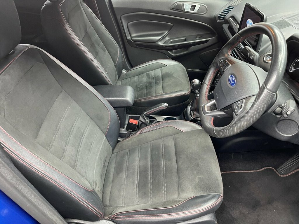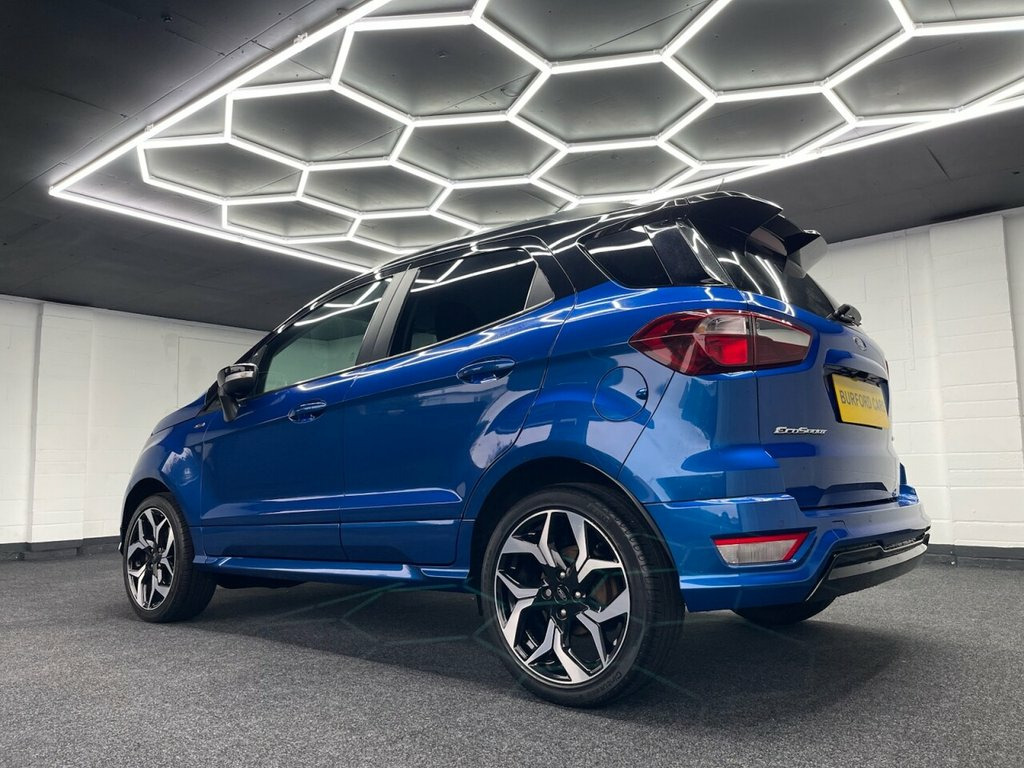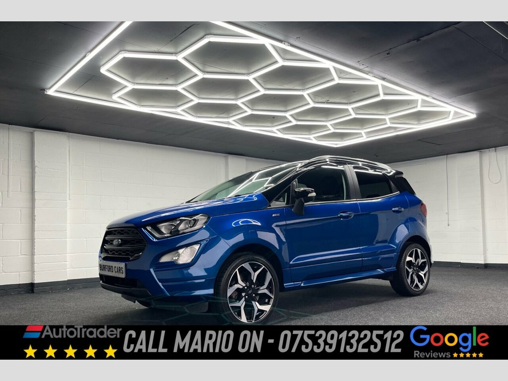This 2020 Ford EcoSport ST-Line offers exceptional value with its remarkably low mileage of just 29,500 miles for its age. This Euro 6 compliant 1.0L petrol model presents a compelling package, featuring stylish 18in Shadow Black Machined Finish alloy wheels and automatic headlights for enhanced visibility. Inside, you'll find the convenience of electronic automatic temperature control air conditioning and the advanced Ford SYNC 3 navigation system, complete with an 8in touchscreen that seamlessly integrates with Android Auto and Apple CarPlay. The rear view camera pack, including rear sensors, makes parking a breeze, further enhancing the practicality of this already appealing vehicle. With an impressive fuel economy of 46 mpg, this EcoSport is designed to be economical for your journeys. Its MOT is valid until June 2026, providing peace of mind for the coming years. These combined attributes, from its efficient engine and modern technology to its low mileage and excellent fuel economy, position this Ford EcoSport ST-Line as a standout choice in its class. FINISHED IN DESERT ISLAND BLUE WITH CHAR, ++ 18'' UPGRADED ALLOYS ++, ++ APPLE CAR PLAY + ANDROID AUTO ++, ++ REVERSE CAMERA ++, ++ 2 KEYS ++, ++ FULL SERVICE HISTORY ++, 18in Alloy Wheels - Shadow Black Machine, Adjustable Boot Load Floor, Air Conditioning - Electronic Automatic , Airbags - Curtain, Airbags - Driver and Front Passenger, Airbags - Drivers Knee, Airbags - Front Passenger De-Activation , Alarm - Thatcham Category 1 with Volume , Ambient Lighting - Instrument Panel and , Analogue Instrument Cluster, Anti-Lock Braking System - ABS with Elec, Auto-Dimming Electrochromic Rear-View Mi, Automatic Headlights, Black Headlight Bezel, Black Roof Rails, Centre Console - Sliding