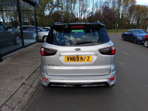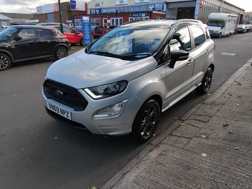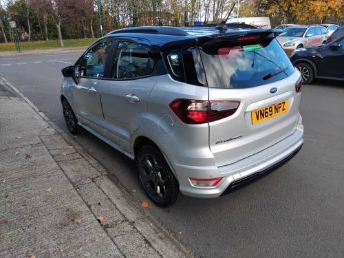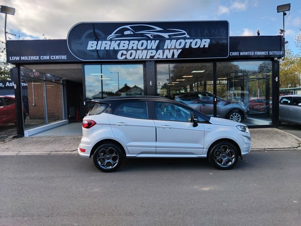 AVAILABLE AT OUR MARSKE SITE, THE SHOWROOM, 105 REDCAR ROAD, MARSKE TS11 6HU BIRKBROW MOTOR COMPANY AT MARSKE IS DELIGHTED TO OFFER THIS BEAUTIFULLY PRESENTED 2020/69 PLATE FORD ECOSPORT 1.0T ECOBOOST ST-LINE 5 DOOR SUV IN SOLAR SILVER METALLIC WITH AGATE BLACK ROOF AND DOOR MIRROR CAPS AND ONLY 27,146 MILES COVERED FROM NEW, SPEC INCLUDES 17" ALLOY WHEELS, FRONT FOG LIGHTS, LED DAYTIME RUNNING LIGHTS, AUTOMATIC HEADLIGHTS AND FRONT WIPERS, FRONT AND REAR ELECTRIC WINDOWS, ELECTRIC DOOR MIRRORS, REMOTE CENTRAL LOCKING WITH KEYLESS ENTRY AND START, AIR CONDITIONING, 8" TOUCHSCREEN DAB DIGITAL RADIO WITH BLUETOOTH, APPLE CARPLAY AND ANDROID AUTO, SATELLITE NAVIGATION, REVERSING CAMERA, CRUISE CONTROL WITH SPEED LIMITER, REVERSE PARKING SENSORS, QUICKCLEAR WINDSCREEN, PART LEATHER SPORTS INTERIOR TRIM WITH RED STITCHING, FRONT CENTRE ARMREST, 6 SPEED GEARBOX, ROOF RAILS, EXCELLENT MPG, HIGHER SEATING POSITION FOR EASY ACCESS, SPACIOUS BOOT, IDEAL FAMILY HATCHBACK, FINANCE ARRANGED Emergency Assistance, Ford SYNC 3 Navigation with 8in Touchscr, Front and Rear Power Points - 12V, 17in Alloy Wheels - 5 Spoke Dark Tarnish, Black Headlight Bezel, Black Roof Rails, Door Handles - Body Colour, Door Mirrors - Electrically Operated and, Front and Rear Bumper - Body Colour with, Front Grille Bars and Surround - Ebony B, Large Rear Spoiler, Lower Body Side - Door Claddings - Body , Painted Contrast Roof and Mirrors - Agat, Power Front and Rear Windows with Global, Quickclear Heated Front Windscreen, Rocker Panel and Side Cladding - Body Co, ST-Line Bodystyling Kit, ST-Line Front Grille, Tyre Repair Kit, Adjustable Boot Load Floor, Air Conditioning - Electronic Automatic , Ambien