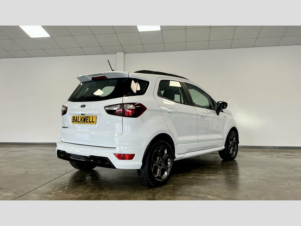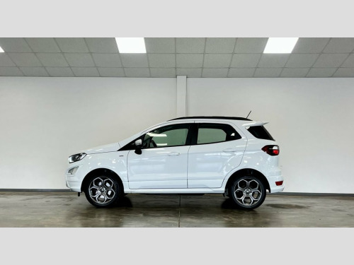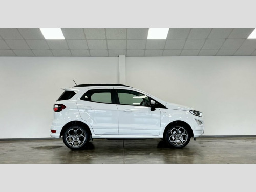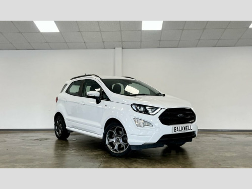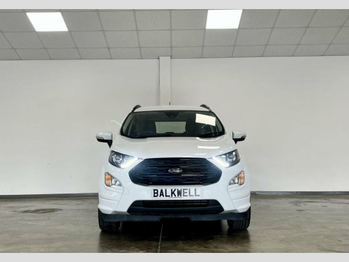 Right, have a look at this! The Ford EcoSport ST-Line has just rumbled its way into our collection of pre-loved cars, and honestly, it's a bit of a corker. Now, I know what you're thinking — another small SUV? Haven't we already got about seven thousand of those clogging up every cul-de-sac in Britain? Yes, we have. But this one… this one's actually rather good. First off, it's the ST-Line, which means it doesn't look like it's wearing a cheap plastic raincoat. It's fully colour-coded, sleek, and frankly, rather handsome. Then there's the fact it's a Ford — so it doesn't just look the part, it actually goes round corners like a proper car rather than wobbling about like a shopping trolley with a flat wheel. And despite being about the same size as a small suitcase, it's got space inside for all your stuff, your family, and possibly even your hopes and dreams. This particular one's been cherished — it's an ex-Motability car, which means it's been maintained more religiously than a Swiss watch. Full main dealer history, two keys, the lot. Then we step in and make it even better: brand new MOT (even though it's already good until June 2026, because why not), fresh service, and a 12-month parts and labour warranty included. Most other dealers would charge you three hundred quid for that — but not us. We're practically saints. So, if you want a small SUV that loo 17in Alloy Wheels - 5 Spoke Dark Tarnish, Adjustable Boot Load Floor, Air Conditioning - Electronic Automatic , Airbags - Curtain, Airbags - Driver and Front Passenger, Airbags - Drivers Knee, Airbags - Front Passenger De-Activation , Alarm - Thatcham Category 1 with Volume , Ambient Lighting, Analogue Instrument Cluster, Anti-Lock Braking System - ABS with Elec, Auto-Dimming Electrochromic Rear-View Mi, Automatic Headlights, Black Roof Rails, Centre Console - Sliding Armrest, Centre Console Cup Holder with Chrome Ac, Child Locks, Courtesy Light - Front with Two Map Ligh, Courtesy Light - Rear, Cruise Control, Door Frame Beltline - Black, Door Handles - Body Colour, Door Mirrors - Body Colou