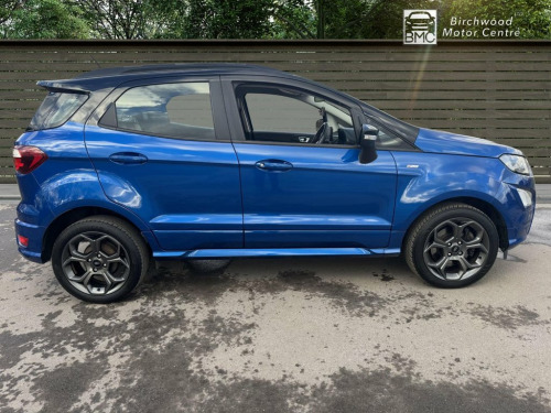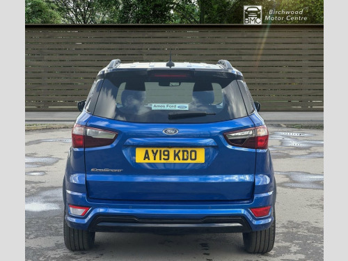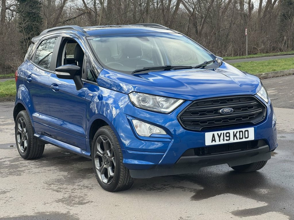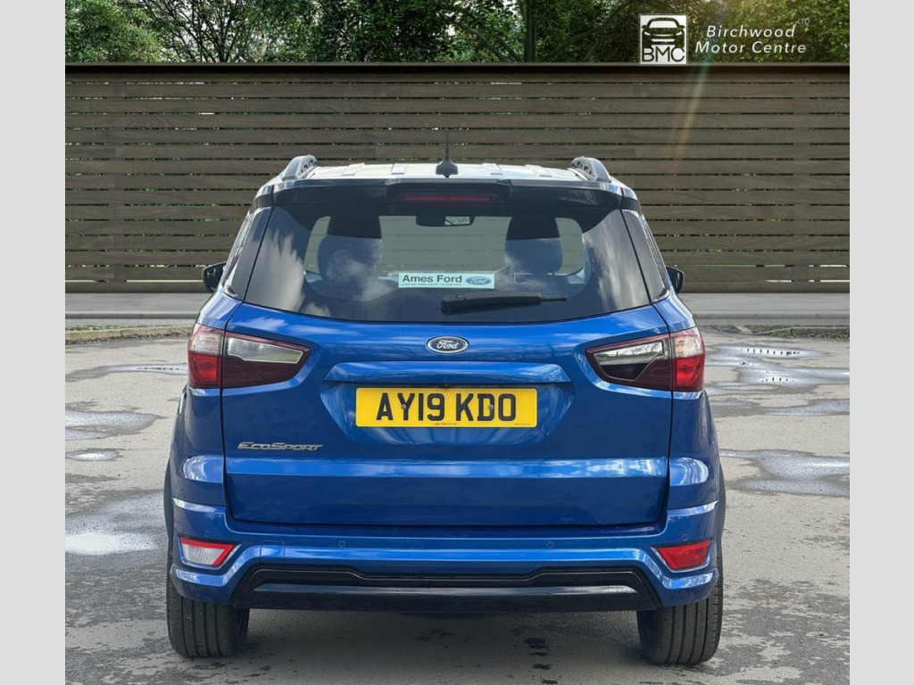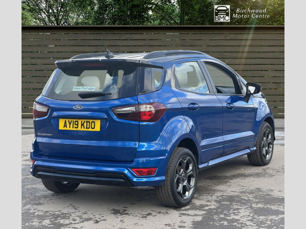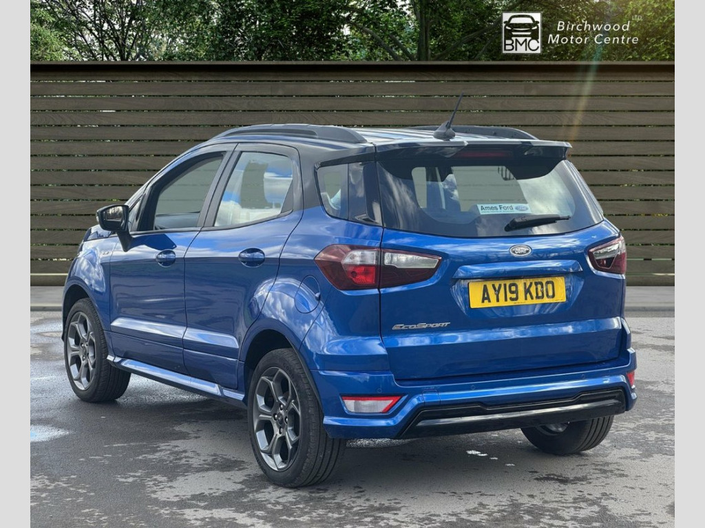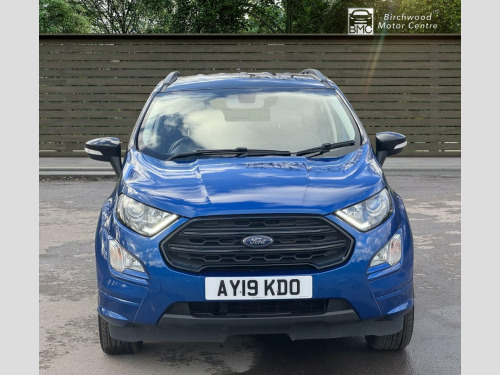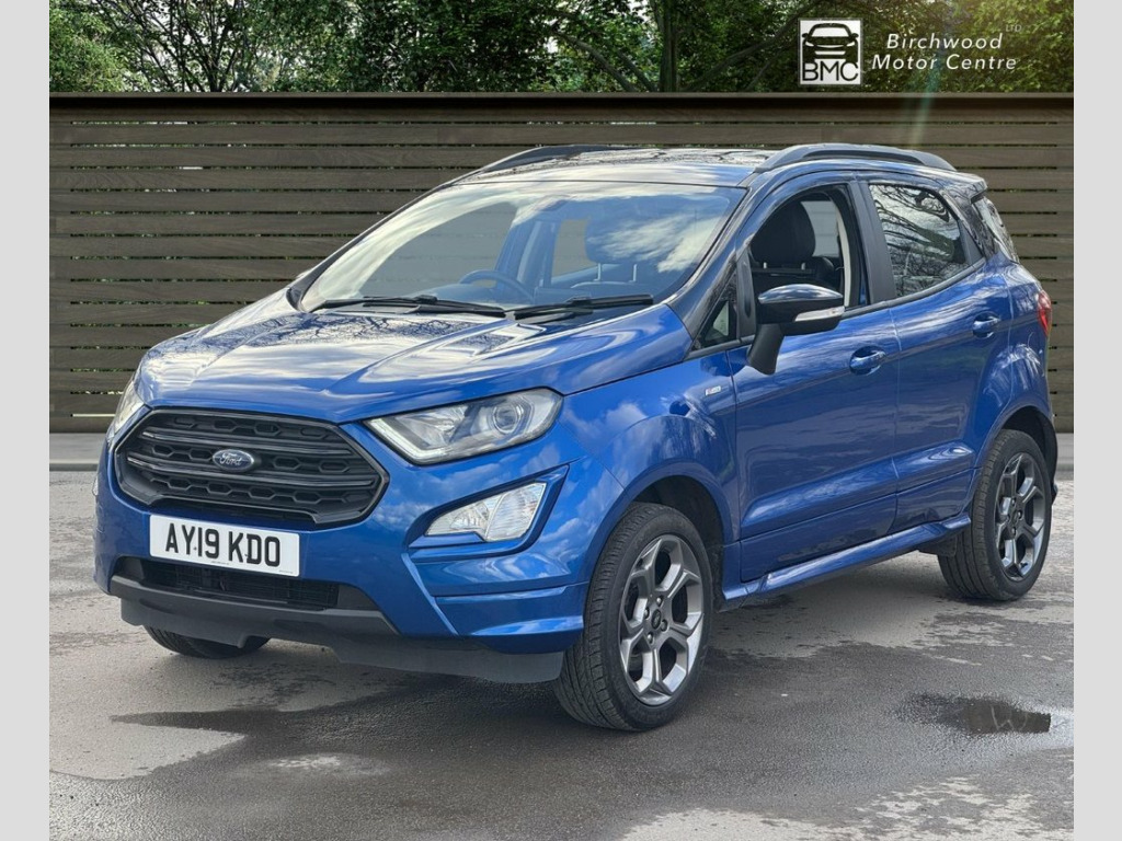 This 2019 Ford EcoSport T ST-Line offers a compelling blend of style and practicality, making it a standout choice. Powered by a responsive 1.0L petrol engine and meeting Euro 6 emissions standards, this ST-Line trim vehicle is equipped with a Rear View Camera Pack for enhanced parking assistance, including rear sensors and a camera. Drivers will appreciate the convenience of automatic headlights and the advanced Ford SYNC 3 Navigation system, complete with an 8-inch touchscreen that seamlessly integrates with Android Auto and Apple CarPlay. For comfort, the electronic automatic temperature control ensures a pleasant cabin environment. The Ford EcoSport T ST-Line demonstrates its efficiency with a highlighted fuel economy of 46 mpg, a figure that positions it favourably against other vehicles in its class. Furthermore, its low CO2 emissions indicate a more environmentally conscious performance. These highlights, combined with its comprehensive feature set and sporty ST-Line styling, make this EcoSport a well rounded and attractive option for those seeking a capable and feature rich compact SUV. 17in Alloy Wheels - 5 Spoke Dark Tarnish, Adjustable Boot Load Floor, Air Conditioning - Electronic Automatic , Airbags - Curtain, Airbags - Driver and Front Passenger, Airbags - Drivers Knee, Airbags - Front Passenger De-Activation , Alarm - Thatcham Category 1 with Volume , Ambient Lighting - Instrument Panel and , Analogue Instrument Cluster, Anti-Lock Braking System - ABS with Elec, Auto-Dimming Electrochromic Rear-View Mi, Automatic Headlights, Black Headlight Bezel, Black Roof Rails, Centre Console Cup Holder with Chrome Ac, Centre Console with Covered Bin and Slid, Child Locks, Courtesy Light - Front with Two Map Ligh, Courtesy Light - Rear, Cruise Control, Door Frame Beltline - Black