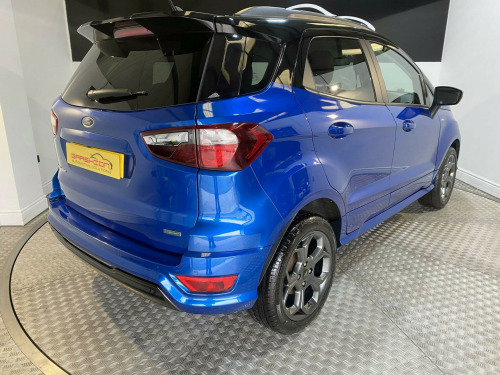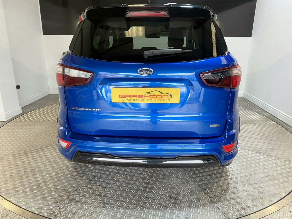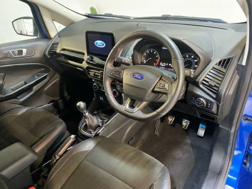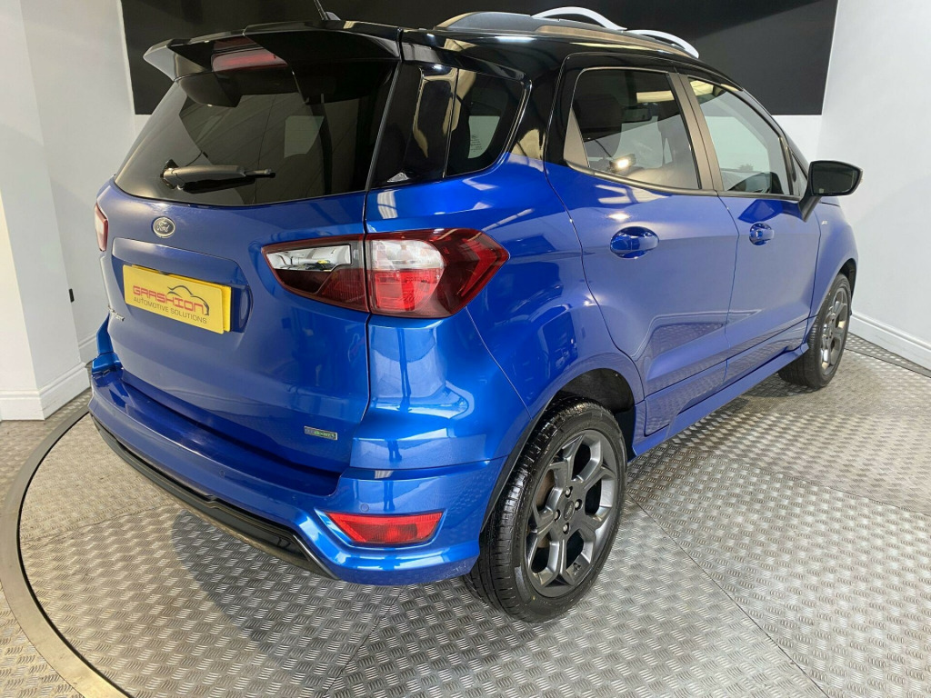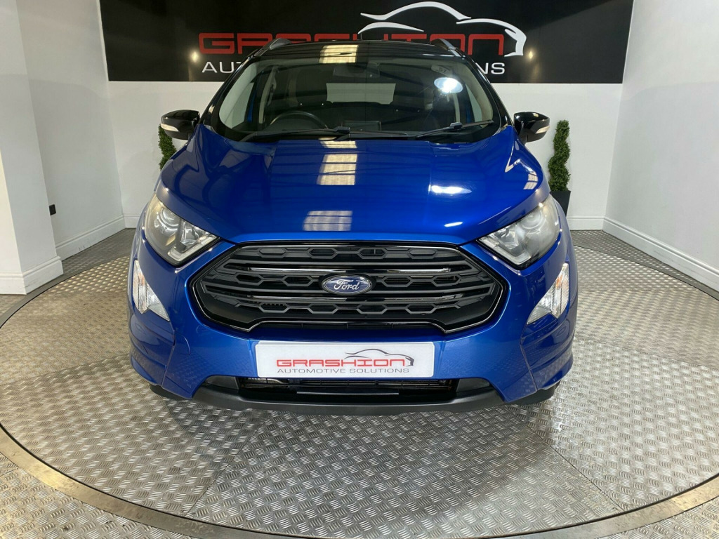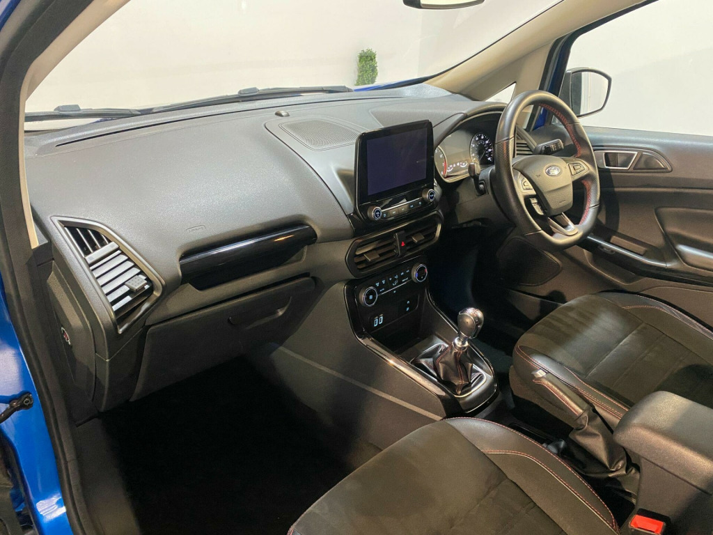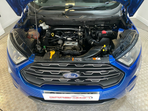 ONLINE AND PHONE ENQUIRIES ONLY ON SUNDAYS, PLEASE CALL 01302 457702 TO SPEAK DIRECTLY WITH US. FORD ECO SPORT 1.0 125 ST LINE 5 DOOR FINISHED IN METALLIC BLUE WITH 3 SERVICE STAMPS - THE LAST ONE CARRIED OUT AT 43,146 MILES IN AUGUST AND HAS MOT THAT RUNS UNTIL NOVEMBER 2026. SPECIFICATION INCLUDES ALLOY WHEELS - AUTOMATIC CLIMATE CONTROL - FORD SYNC 3 WITH FACTORY FITTED SATELLITE NAVIGATION - HALF LEATHER SEATS - REVERSING CAMERA - BLUETOOTH PHONE HANDS FREE WITH MEDIA STREAMING - - TOUCH SCREEN INFOTAINMENT SYSTEM - STEERING WHEEL AUDIO CONTROLS - REAR PARKING ASSIST WITH CAMERA - CRUISE CONTROL - AMBIENT INTERIOR LIGHTING - FORD KEYLESS START - DAYTIME RUNNING LIGHTS - DAB RADIO/CD PLAYER WITH MEDIA CONNECTIVITY - REMOTE CENTRAL DOOR LOCKING WITH 2 KEYS -ST LINE BODYKIT WITH REAR TAILGATE SPOILER - ELECTRIC WINDOWS AND ELECTRIC HEATED POWER FOLD DOOR MIRRORS - SPORTS PEDALS AND SPORTS SUSPENSION - TINTED GLASS - HEATED FRONT WINDSCREEN - AUTOMATIC LIGHTS AND FACTORY ALARM AND IMMOBILIZER. A FULLY HPI CLEAR CAR WITH CERTIFICATE PROVIDED. TO VIEW AND DRIVE AWAY TODAY CALL 01302 457702. NO ADMIN FEES (EXCEPT BROKERS).. 17in Alloy Wheels - 5 Spoke Dark Tarnish, Adjustable Boot Load Floor, Air Conditioning - Electronic Automatic Temperature Control - EATC, Airbags - Curtain, Airbags - Driver and Front Passenger, Airbags - Drivers Knee, Airbags - Front Passenger De-Activation Switch, Alarm - Thatcham Category 1 with Volume Sensing and Perimeter, Ambient Lighting - Instrument Panel and Footwell, Analogue Instrument Cluster, Anti-Lock Braking System - ABS with Electronic Stability Control - ESC, Auto-Dimming Electrochromic Rear-View Mirror, Automatic Headlights, Black Headlight Bezel, Black Roof Rails, Centre Console Cup Holder with Chrome Accent, Centre Console with Covered Bin and Sliding Armrest, Child Locks, Courtesy Light - Front with Two Map Lights, Courtesy Light - Rear, Cruise Control, Door Frame Beltline - Black, Door Handles - Body Colour, Door Mirrors - Body Colour Housing, Door Mirrors - Power-Foldable Heated with Integrated Side Indicator and Puddle Lights, Driver Seat Manual Height- Fore/Aft and Seatback Angle Adjustment and Recliner, Driver Seat Manual Rotary Knob Lumbar Support Adjustment, Driver and Passengers Sun Visor with Covered Vanity Mirror and Ticket Strip on Drivers Side, Drivers Stowage Glovebox, EPAS - Electric Power Assisted Steering, ESP - Electronic Stability Programme with Hill Launch Assist, Emergency Assistance, Engine Immobiliser, Ford Easy Fuel - Capless Refuelling System, Ford SYNC 3 Navigation with 8in Touchscreen, Front Fog Lights and Turn Indication Light Bezel - Body Colour, Front Fog Lights with Combined Turn Indication Light, Front Grille Bars and Surround - Ebony Black, Front Seat - Passenger Manual - Fore-Aft and Recline Adjustment, Front Seat - Under Passenger Seat Stowage, Front Seats - 2-Way Head Restraint Up-Down, Front Seats - 3 Point Seat Belts with Load Limiter and Seatbelt Height Adjust, Front Seats - Seat-Back Map Pockets, Front Suspension - Independent with MacPherson Struts and Anti-Roll Bar, Front and Rear Bumper - Body Colour with Dark Sport Insert, Front and Rear Floor Mats with Red Stitching, Front and Rear Folding Grab Handles, Front and Rear Power Points - 12V, Full Length Overhead Console with Sunglasses Holder, Gear Shift Indicator, Gearshift Knob - Leather-Trimmed with Black Insert and Aluminium-Finish Ring and Red Stitching, Glovebox with Cool Bin - Lid and Illumination, Halogen Rear Lights, Handbrake Grip - Leather-Trimmed with Red Stitching, Headlights - Courtesy Delay, Headlights - Levelling Control, Headlights - Projector Beam Headlight with LED Daytime Running Lights, Height Lumbar Adjustment on Drivers Seat, High Mounted Brake Light, IPS - Intelligent Protection System, Keyless Start with Ford Power Start Button, Large Rear Spoiler, Leather Handbrake and Gearknob, Load Compartment - Lights, Load Compartment Carpet, Load Compartment Side Trim Incorporating Shopping Hooks, Lower Body Side - Door Claddings - Body Colour, Manual Parking Brake, MyKey, Power Front and Rear Windows with Global Opening-Closing, Quickclear Heated Front Windscreen with Heated Washer Jets, Rake Adjustable Rear Seat, Rear Seat - 60-40 Split Folding Seats, Rear Seats - 2-Way Head Restraint Up-Down, Rear Seats - Centre Head Restraint - Up-Down, Rear Seats - Retractable Rear Seat Belt - 3-Point All Positions, Rear Suspension - Semi-Independent Twist Beam with Twin Gas and Oil-Filled Shock Absorbers, Rear View Camera Pack, Remote Central Locking, Rocker Panel and Side Cladding - Body Colour ST-Line Design, Roof Rails - Black Painted Finish, ST-Line Bodystyling Kit, ST-Line Front Grille, ST-Line Styled Rear Lights, Seat Belt Reminder System - Drivers and Front Passengers, Seats - ISOFIX Mounting Provision for Child Seats - Outer Seats Only, Side Impact Door Beams, Soft Instrument Panel Cover, Sports Pedals with Stainless Steel Inserts, Sports Suspension, Steering Column - Rake and Reach Adjustment, Steering Wheel - Perforated Leather-Trimmed with Chrome Inserts and Red Stitching, Suspension - Front Stabiliser. Part service history