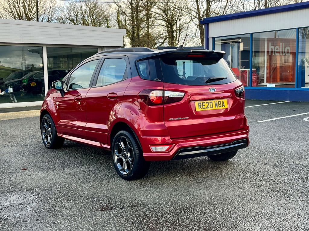 Stunning EcoSport 1.0T 125ps ST-Line finished in Ruby Red. This car is very well specified with Climate Control, Cruise Control, Rear Camera, Sat Nav and Bluetooth.