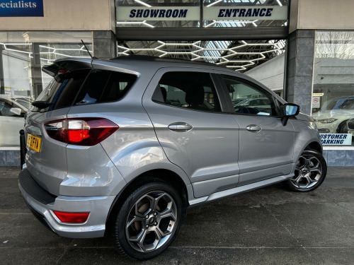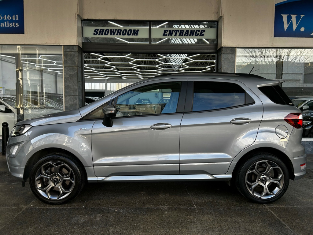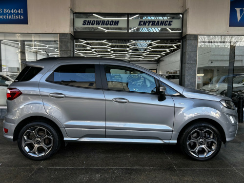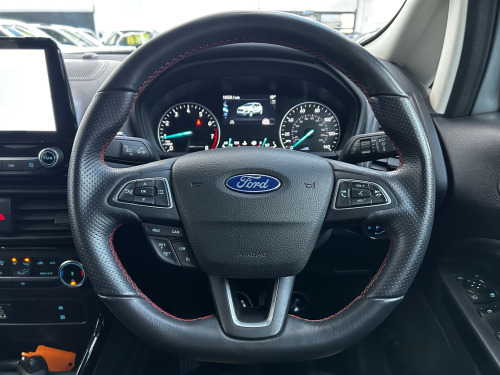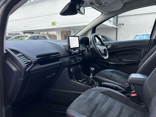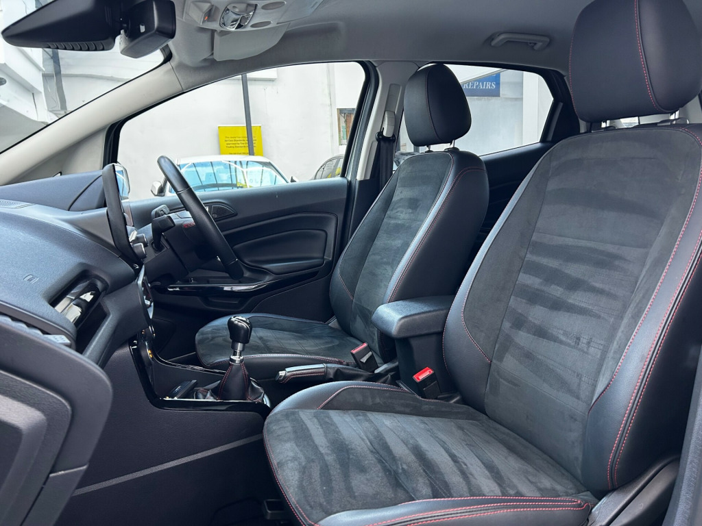 W Jones of Bognor are delighted to present this lovely Ford Ecosport 1.0T EcoBoost ST-Line 5dr. Across all our stock, we ensure servicing is up to date, provide a new 12 month MOT, and provide warranty options of up to 36 months! As we are an AA Approved dealership, all vehicles come with 12 months AA breakdown cover free of charge. We are partnered with one of the largest finance brokers in the country, Evolution Funding, in order to cater to all deal sizes and credit ratings, on both HP and PCP. Unsure if you'll be accepted? We can soft search your credit profile to check how likely you are to be accepted! W Jones is a family run business, founded in 1902 and currently run by a 5th generation Jones. We have an indoor showroom facility and also a workshop, for MOTs, servicing and repairs. If you have any questions please do not hesitate to get in touch. in alloy wheels - 5 spoke dark tarnish, black roof rails, door handles - body colour, door mirrors - body colour housing, door mirrors - electrically operated and heated, electric windows - front, electric windows - rear, front fog lights and turn indication light bezel - body colour, front grille bars and surround - ebony black, front and rear bumper - body colour with dark sport insert, large rear spoiler, lower body side - door claddings - body colour, quickclear heated front windscreen, rocker panel and side cladding - body colour st-line design, roof - body colour, st-line bodystyling kit, st-line front grille, st-line styled rear lights, tyre repair kit, adjustable boot load floor, air conditioning - electronic automatic temperature control - eatc, ambient lighting, analogue instrument cluster, auto-dimming electrochromic rear-view mirror, centre console - sliding armrest, centre console cup holder with chrome accent, courtesy light - front with two map lights, courtesy light - rear, door frame beltline - black, driver seat manual rotary knob lumbar support adjustment, driver and passengers sun visor with covered vanity mirror and ticket strip on drivers side, drivers seat height adjust, drivers stowage glovebox, front seat - passenger manual - fore-aft and recline adjustment, front seat - under passenger seat stowage, front seats - 2-way head restraint up-down, front seats - seat-back map pockets, front and rear folding grab handles, full length overhead console with sunglasses holder, gearshift knob - leather-trimmed with black insert and aluminium-finish ring and red stitching, load compartment - lights, load compartment carpet, load compartment side trim incorporating shopping hooks, mykey, rear seat - 60-40 split folding seats, rear seats - 2-way head restraint up-down, st-line front floor mats with red stitching, sensico-trimmed steering wheel - handbrake handle and gearshift gaiter with red stitching, soft instrument panel cover, sports pedals with stainless steel inserts, steering column - rake and reach adjustment, tie-down hooks, wipers - front - automatic with rain sensor, airbags - curtain, airbags - driver and front passenger, airbags - drivers knee, airbags - front passenger de-activation switch, alarm - thatcham category 1 with volume sensing and perimeter, anti-lock braking system - abs with electronic stability control - esc, child locks, esp - electronic stability programme with hill launch assist, engine immobiliser, ford easy fuel - capless refuelling system, front seats - 3 point seat belts with load limiter and seatbelt height adjust, ips - intelligent protection system, manual parking brake, rear seats - retractable rear seat belt - 3-point all positions, rear view camera pack, remote central locking, seat belt reminder system - drivers and front passengers, seats - isofix mounting provision for child seats - outer seats only, side impact door beams, wipers - rear wash-wipe - intermittent, automatic headlights, front fog lights, halogen rear lights, headlights - courtesy delay, headlights - levelling control, high mounted brake light, led daytime running lights, led low beam headlights, cruise control, epas - electric power assisted steering, front suspension - independent with macpherson struts and anti-roll bar, gear shift indicator, pre-collision assist with aeb, rear parking sensors, rear suspension - semi-independent twist beam with twin gas and oil-filled shock absorbers, sports suspension, suspension - front stabiliser bar, tsr - traffic sign recognition, trip computer, tyre pressure monitoring system, emergency assistance, ford sync 3 navigation with 8in touchscreen, front and rear power points - 12v