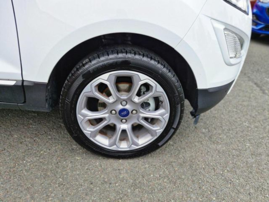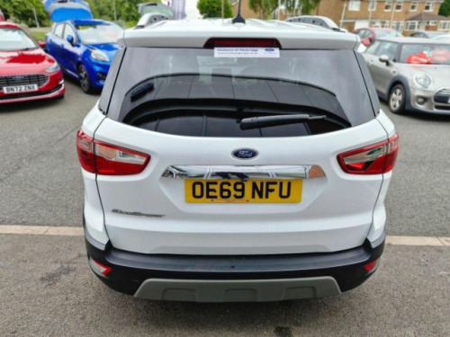 This 2019 Ford EcoSport T Titanium is a superb example of a well maintained compact SUV.  Powered by an efficient 1.0L petrol engine, this Euro 6 compliant model offers a refined driving experience.  It comes equipped with desirable features such as Electronic Automatic Temperature Control for effortless climate management, and the Ford SYNC 3 Navigation system complete with an 8 inch touchscreen, offering seamless integration with Android Auto, Apple CarPlay, and Bluetooth connectivity.  Manoeuvring is made simpler with the inclusion of a rear view camera and rear parking sensors, while automatic headlights ensure optimal visibility in varying light conditions.  The EcoSport T Titanium stands out with its low CO2 emissions, indicating a more environmentally conscious choice compared to many vehicles in its class. The combination of its advanced infotainment system, practical parking aids, and automatic lighting features collectively enhance its appeal, providing a comfortable and convenient ownership experience. This model represents a smart choice for those seeking a versatile and well equipped compact SUV.