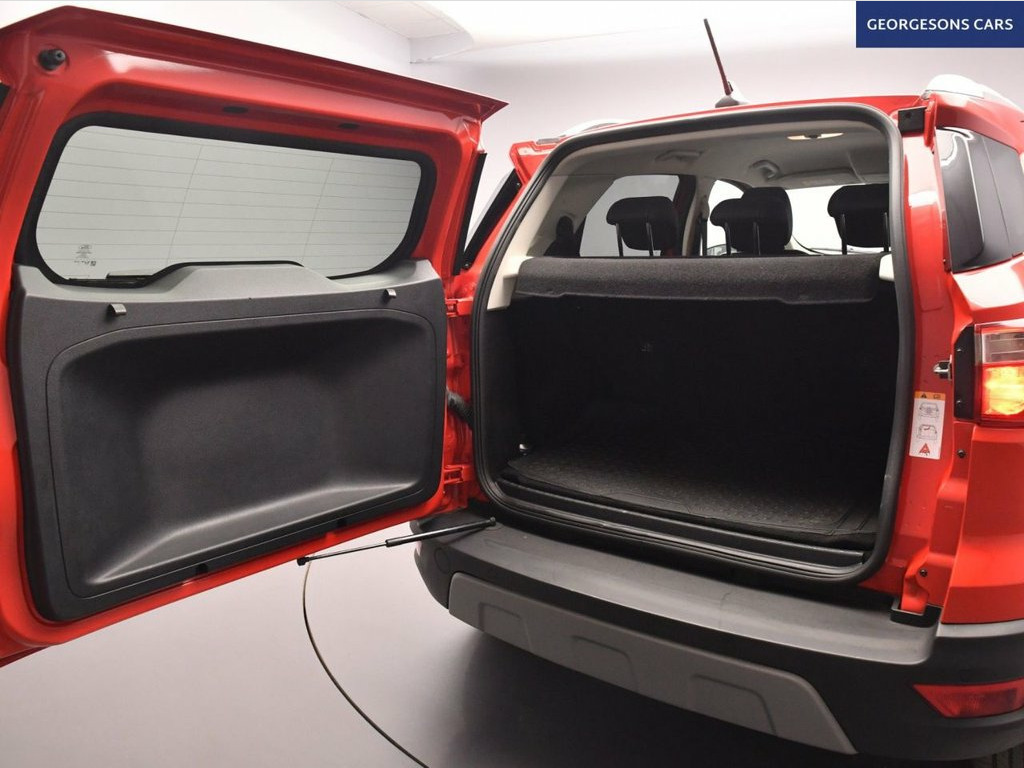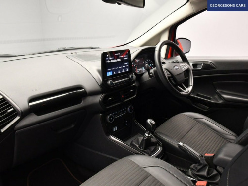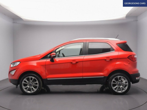 The Ford EcoSport 1.0T EcoBoost GPF Titanium combines a responsive 1.0-litre turbo petrol engine with 125hp, delivering 0-62mph in 11.0 seconds and up to 53.3mpg in this front-wheel-drive setup with a precise 6-speed manual transmission. The Titanium trim offers a refined blend of style and comfort with 17-inch alloy wheels and a premium interior for versatile compact SUV motoring. Navigate effortlessly with integrated satellite navigation, Apple CarPlay, Bluetooth, and DAB radio, ensuring seamless connectivity on every journey. Parking is a breeze thanks to the reverse camera and parking sensors, providing clear visibility and confidence in tight spaces. Stay comfortable with climate control and a heated windscreen for quick defrosting year-round. Cruise control with speed limiter enhances relaxation on highways. The spacious five-door SUV design includes a 356-litre boot for practicality. 17in Alloy Wheels - 10 Spoke Flash Grey , Adjustable Boot Load Floor, Air Conditioning - Electronic Automatic , Airbags - Curtain, Airbags - Driver and Front Passenger, Airbags - Drivers Knee, Airbags - Front Passenger De-Activation , Alarm - Thatcham Category 1 with Volume , Ambient Lighting - Instrument Panel and , Analogue Instrument Cluster, Anti-Lock Braking System - ABS with Elec, Auto-Dimming Electrochromic Rear-View Mi, Automatic Headlights, Autonomous Emergency Braking, Centre Console Cup Holder with Chrome Ac, Centre Console with Covered Bin and Slid, Child Locks, Chrome Headlight Bezel, Courtesy Light - Front with Two Map Ligh, Courtesy Light - Rear, Cruise Control, Door Frame Bel