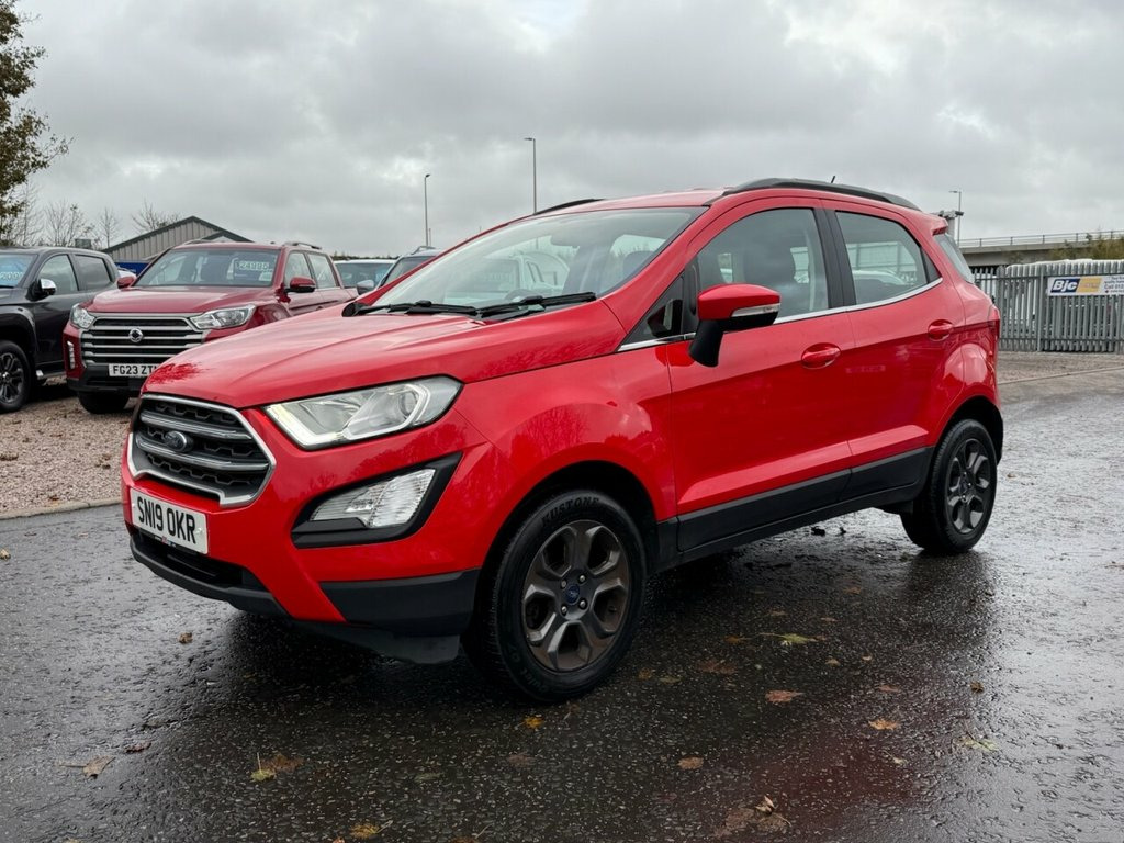 Compact, stylish, and practical — the Ford EcoSport Zetec delivers a perfect blend of efficiency and everyday usability. Powered by Ford's award-winning 1.0-litre EcoBoost petrol engine producing 125 bhp, it offers lively performance with impressive fuel economy. The Zetec trim adds smart exterior styling and a well-equipped interior, including 16-inch alloy wheels, SYNC infotainment with Bluetooth and DAB, air conditioning, heated front windscreen, leather steering wheel, With its elevated driving position, versatile cabin, and compact SUV proportions, the EcoSport is ideal for both city driving and weekend adventures. A reliable, economical, and comfortable SUV with the quality and refinement you'd expect from Ford. Dwell-Belgrano Fabric - Ebony Black, Race Red, Black Roof Rails, 16in Alloy Wheels - 5 Spoke Magnetic, Adjustable Boot Load Floor, Airbags - Curtain, Airbags - Driver and Front Passenger, Airbags - Drivers Knee, Airbags - Front Passenger De-Activation , Alarm - Thatcham Category 1 with Volume , Analogue Instrument Cluster, Anti-Lock Braking System - ABS with Elec, Centre Console with Cup Holder, Child Locks, Chrome Headlight Bezel, Courtesy Light - Front with Two Map Ligh, Courtesy Light - Rear, Door Frame Beltline - Black, Door Handles - Body Colour, Door Mirrors - Body Colour Housing, Door Mirrors - Electrically Operated and, Driver Seat Manual Height- Fore/Aft and , Driver Seat Manual Rot