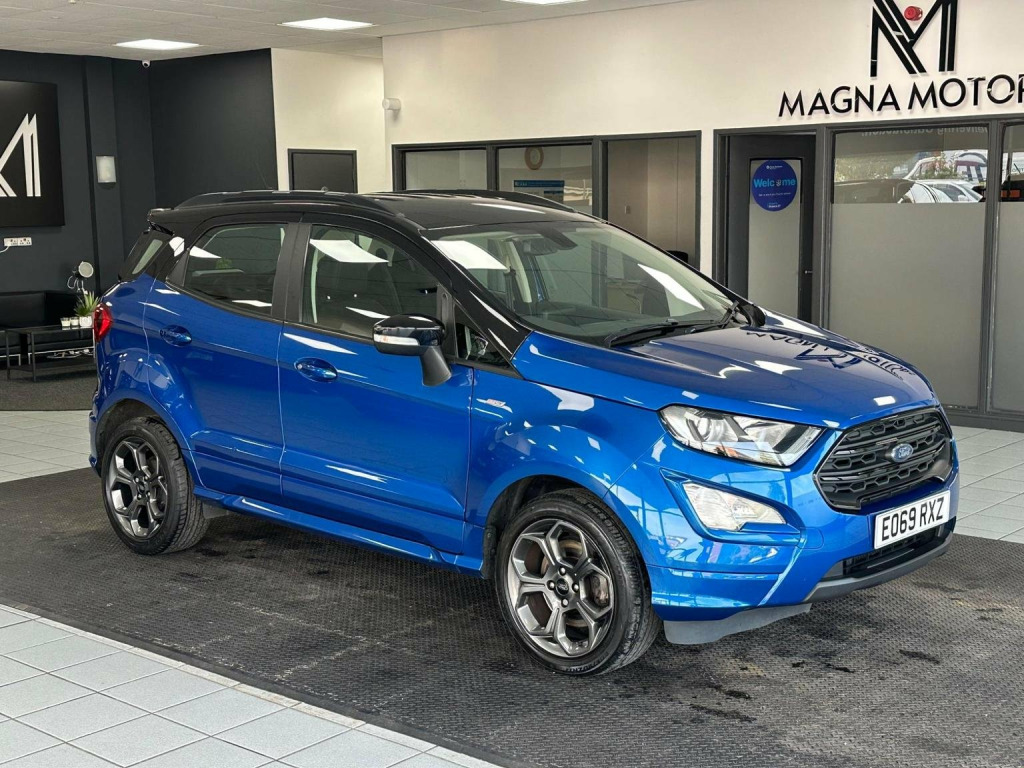 This Ford EcoSport ST-Line Auto is a sporty, compact SUV in great condition throughout. Powered by the 1.0T EcoBoost petrol engine with automatic gearbox, it offers a smooth, efficient drive. Its Euro 6 compliant and ULEZ friendly. Being the ST-Line model, it comes with 17 dark tarnish alloy wheels, ST-Line bodystyling, black roof rails, and sports suspension. Inside, it features Ford SYNC 3 navigation with 8†touchscreen, cruise control, Quickclear heated windscreen, rear-view camera, and automatic headlights. The part-leather sports seats and red stitching throughout give it a premium, sporty feel. The car is fully valeted, clean inside and out, and comes with a 3-month warranty included. A fresh MOT will be provided. Finance options available. Part exchange welcome. Nationwide delivery from £99 incl. VAT, and we collect part exchange vehicles free of charge. Friendly team on hand and open long hoursâ€get in touch to arrange a test drive, viewing, or delivery.
