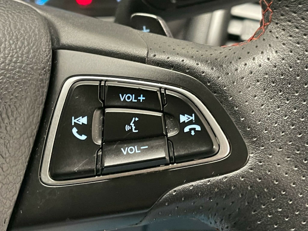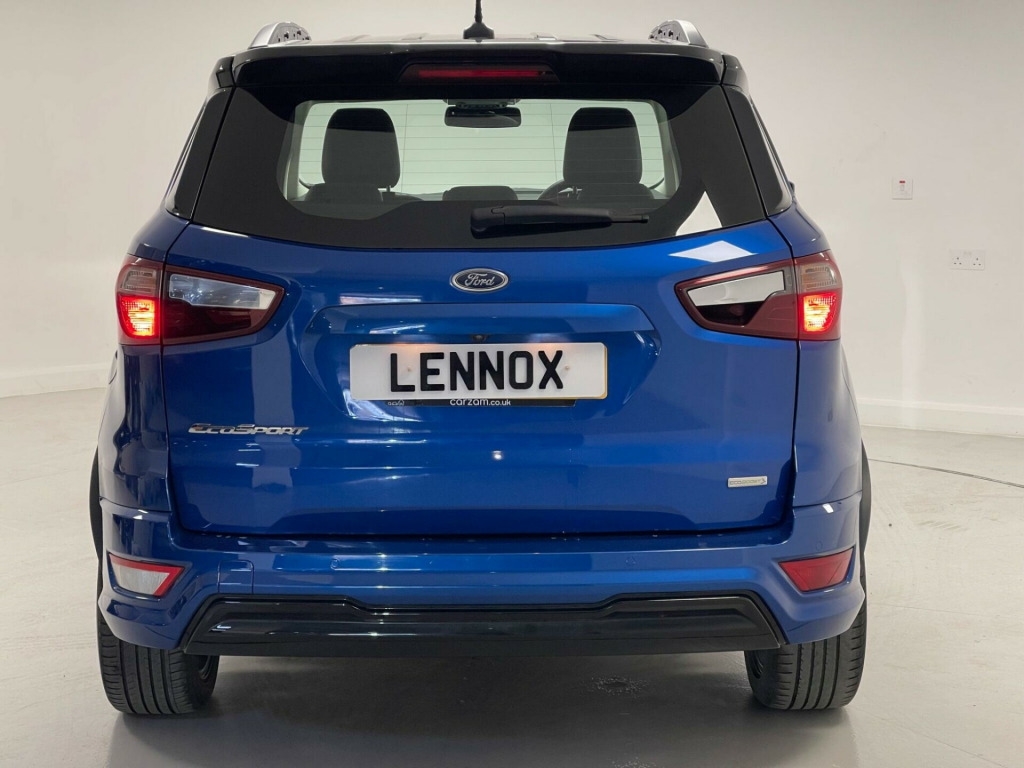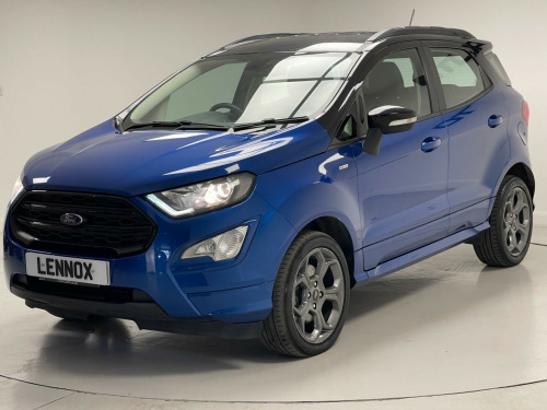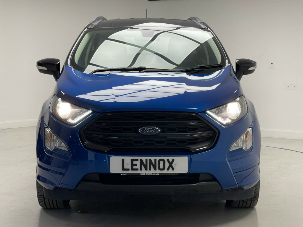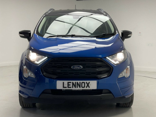 This 2018 Ford EcoSport ST Line offers a compelling blend of style and practicality, boasting a 1.0L petrol engine and meeting Euro 6 emissions standards.  As a T ST-Line variant, it presents a sporty aesthetic.  Inside, you'll find a Ford DAB Navigation System with Ford SYNC3, compatible with both Android Auto and Apple CarPlay, alongside Bluetooth connectivity for seamless integration of your devices.  Comfort is further enhanced by Electronic Automatic Temperature Control, ensuring a pleasant cabin environment.  Practicality is key with a front passenger underseat storage area and a versatile 60-40 split rear seat that can fold and tumble.This EcoSport is equipped with a Rear View Camera and Rear Parking Sensors, complete with Parking Assistance, making manoeuvring and parking significantly easier. The fuel economy is a notable highlight, achieving an impressive 46 miles per gallon, which indicates its efficiency compared to similar vehicles. This combination of advanced technology, comfort features, and economical performance makes the 2018 Ford EcoSport ST Line a well rounded choice. in alloy wheels - 5 spoke dark tarnish, adjustable boot load floor, airbags - curtain, airbags - driver and front passenger, airbags - drivers knee, airbags - front passenger de-activation switch, alarm - thatcham category 1 with volume sensing and perimeter, ambient lighting - instrument panel and footwell, analogue instrument cluster, anti-lock braking system - abs with electronic stability control - esc, automatic dimming rear view mirror, automatic headlights, black headlight bezel, black roof rails, centre console cup holder with chrome accent, centre console with sliding armrest, child locks, courtesy light - front with two map lights, courtesy light - rear, cruise control, door frame beltline - black, door handles - body colour, door mirrors - power-foldable heated with integrated side indicator and puddle lights, driver seat manual height- fore/aft and seatback angle adjustment and recliner, driver seat manual rotary knob lumbar support adjustment, driver and passengers sun visor with covered vanity mirror and ticket strip on drivers side, drivers stowage glovebox, epas - electric power assisted steering, electronic automatic temperature control - eatc, emergency assistance, engine immobiliser, ford dab navigation system with ford sync3, ford easy fuel - capless refuelling system, front 2-way head restraints, front fog lights, front seat - passenger manual - fore-aft and recline adjustment, front seats - 3 point seat belts with load limiter and seatbelt height adjust, front seats - seat-back map pockets, front suspension - independent with macpherson struts and anti-roll bar, front and rear bumper - body colour with dark sport insert, front and rear floor mats with red stitching, front and rear folding grab handles, front and rear power points - 12v, full length overhead console with sunglasses holder, gear shift indicator, gearshift knob - leather-trimmed with black insert and aluminium-finish ring and red stitching, glovebox with cool bin - lid and illumination, halogen headlamps with led day running lights, halogen rear lights, handbrake grip - leather-trimmed with red stitching, headlights - courtesy delay, headlights - levelling control, high mounted brake light, ips - intelligent protection system, keyless start with ford power start button, large rear spoiler, load compartment - lights, load compartment carpet, load compartment side trim incorporating shopping hooks, lower body side - door claddings - body colour, manual parking brake, mykey, power front and rear windows with global opening-closing, quickclear heated front windscreen with heated washer jets, rain sensing wipers, rear seat - fold and tumble 60-40 split - split back, rear seats - centre head restraint - up-down, rear seats - retractable rear seat belt - 3-point all positions, rear suspension - semi-independent twist beam with twin gas and oil-filled shock absorbers, rear view camera with rear parking sensors, remote central locking, rocker panel and side cladding - body colour st-line design, st-line bumpers and side skirts, st-line front grille, seat belt reminder system - drivers and front passengers, seats - isofix mounting provision for child seats - outer seats only, select shift sports mode technology, side impact door beams, soft instrument panel cover, sports suspension, steering column - rake and reach adjustment, steering wheel - paddle shift, steering wheel - perforated leather-trimmed with chrome inserts and red stitching, storage - front passenger underseat area, suspension - front stabiliser bar, threshold plates - front stainless steel with st logo, tie-down hooks, trip computer, tyre pressure monitoring system, tyre repair kit, wiper - intermittent rear wash-wipe
