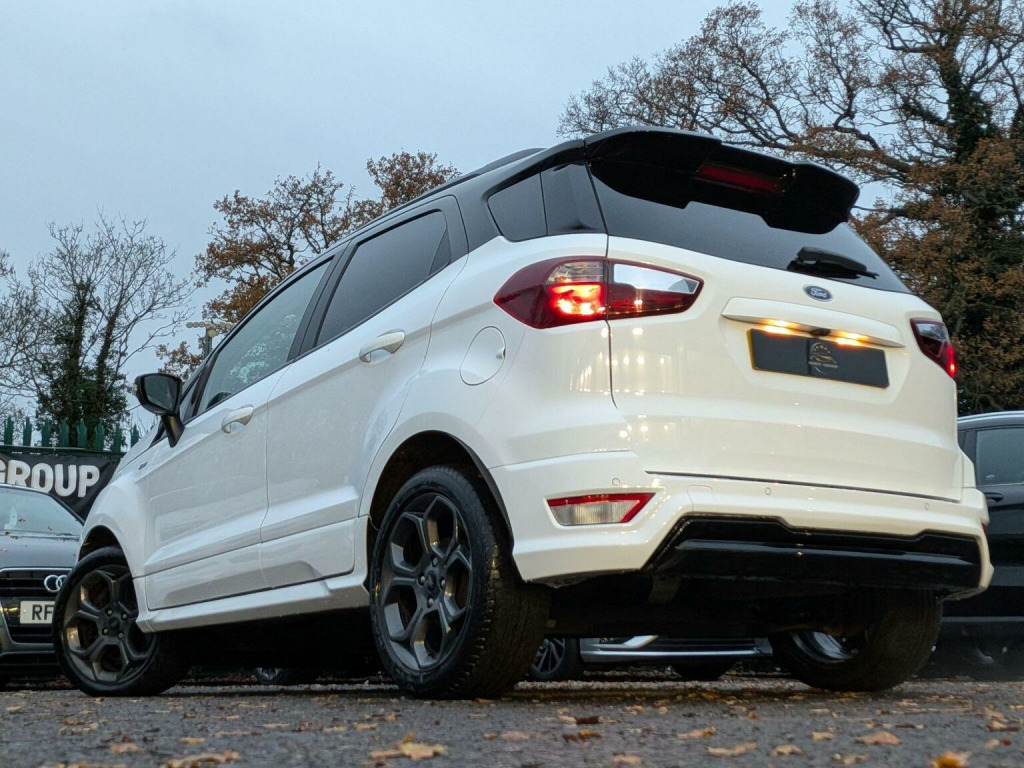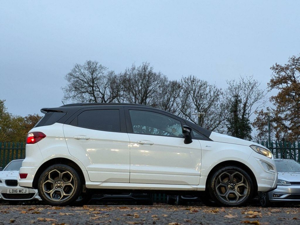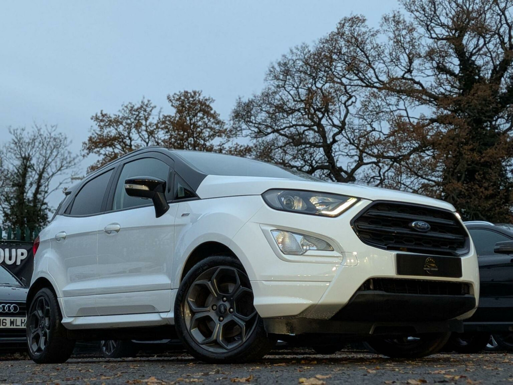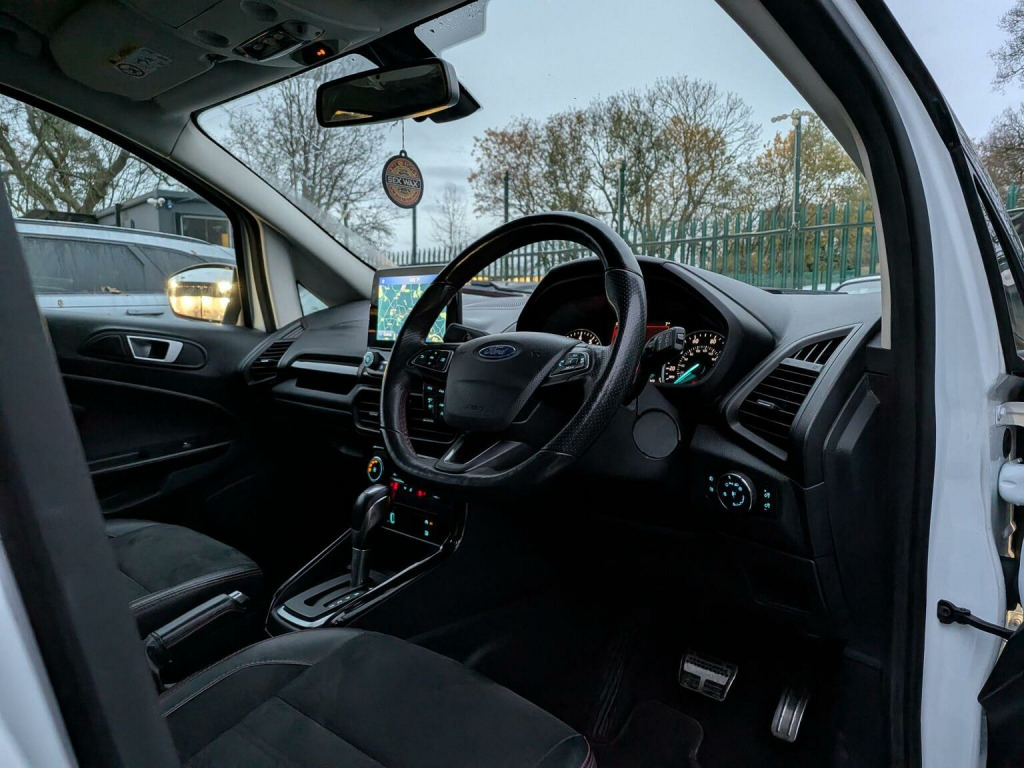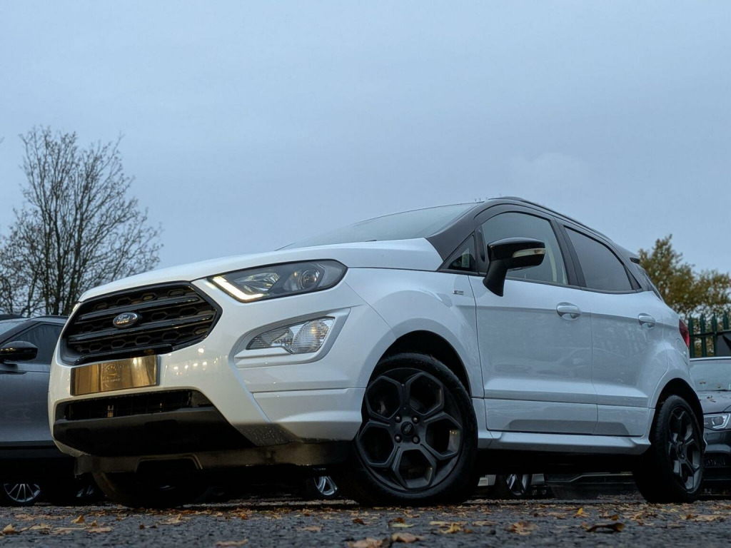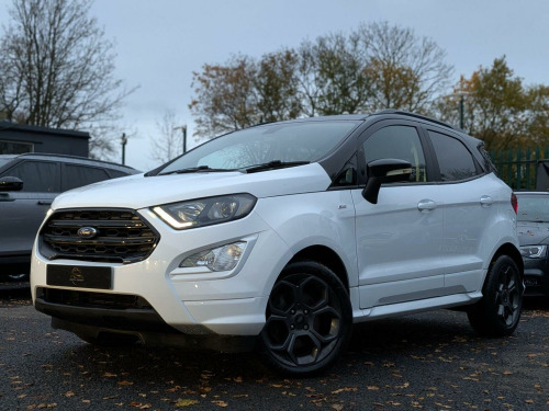 ⭐⭐⭐*ALMOST ALL OF OUR CARS COME WITH A GOOD PRICE OR GREAT PRICE AUTO TRADER BADGE MEANING THEY ARE THE BEST PRICED ON THE MARKET - ALL WHILST MAINTAINING EXCELLENT QUALITY* - OUR IN-HOUSE PREP CENTRE ALLOWS US TO PASS THESE LOWER COSTS ON TO OUR CUSTOMERS MEANING YOU ALWAYS GET THE BEST DEAL EVERY TIME!✅✅✅ --- THIS STUNNING FORD ECOSPORT ST-LINE IS NO DIFFERENT --- JUST BEEN FULL SERVICED BEFORE SALE!⭐⭐⭐, Discover this 2019 Ford EcoSport T ST-Line, a stylish and capable compact SUV. Powered by an efficient 1.0L petrol engine, this Euro 6 compliant model offers a refined driving experience. The ST-Line trim level brings a sporty aesthetic, complemented by the Comfort Pack which includes heated seats and a heated steering wheel for those colder journeys. Youll also find a CD player for your favourite music, Select Shift Sports Mode Technology and paddle shift steering wheel for a more engaging drive, and rear privacy glass for added comfort and security. This Ford EcoSport stands out with its low CO2 emissions, making it a more environmentally conscious choice compared to many other vehicles in its class. The combination of its practical SUV body style, comfortable interior features, and engaging driving technology ensures it is well equipped for both daily commutes and longer trips.