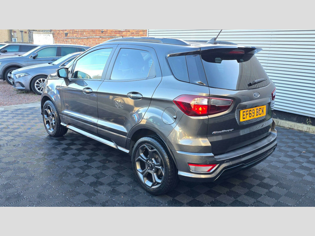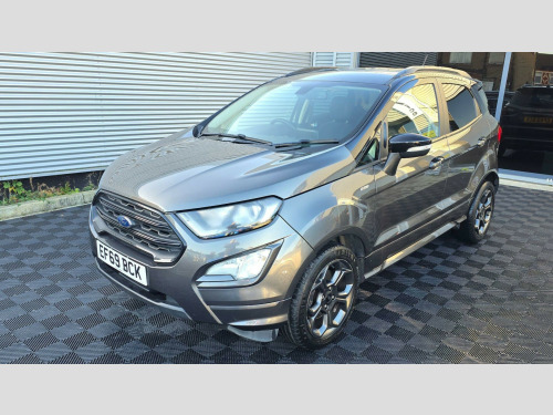 This 2019 Ford EcoSport ST Line offers a compelling blend of style and practicality, featuring a responsive 1.0L petrol engine that meets Euro 6 emissions standards. This particular model benefits from Ford's Keyless Entry and Keyless Start system, allowing for effortless access and ignition. Navigating tight spaces is made simpler with front parking sensors and parking assistance, while the steering wheel mounted paddle shifts and Select Shift Sports Mode Technology offer an engaging driving experience. Automatic headlights ensure optimal visibility in varying conditions.The EcoSport ST Line stands out with its low CO2 emissions, indicating a more environmentally conscious choice compared to many vehicles in its class. This Euro 6 compliant model is designed for efficiency without compromising on performance. The inclusion of features like keyless entry, automatic headlights, and parking assistance further enhances its appeal, providing a convenient and sophisticated driving experience for everyday journeys.At Brilliant Motors, we are excited to present this vehicle, which has undergone a thorough service and inspection. A full service history is provided, and the car has been meticulously cleaned inside and out. We welcome any inspection or test drive, and all of our vehicles are HPI clear. The vehicle comes with a 90-day basic warranty covering the engine and gearbox, with competitive extended warranty options available for added peace of mind. We offer nationwide home delivery and a 7-day money-back guarantee for online sales. Part exchange is accepted, and we are open 7 days a week. As an FCA registered dealer, we also provide financing options. For more information, please visit our website at www.brilliantmotors.co.uk. ont parking sensors, ford keyless entry and keyless start, 17in alloy wheels - 5 spoke dark tarnish, adjustable boot load floor, air conditioning - electronic automatic temperature control - eatc, airbags - curtain, airbags - driver and front passenger, airbags - drivers knee, airbags - front passenger de-activation switch, alarm - thatcham category 1 with volume sensing and perimeter, ambient lighting - instrument panel and footwell, analogue instrument cluster, anti-lock braking system - abs with electronic stability control - esc, auto-dimming electrochromic rear-view mirror, automatic headlights, black headlight bezel, black roof rails, centre console cup holder with chrome accent, centre console with covered bin and sliding armrest, child locks, courtesy light - front with two map lights, courtesy light - rear, cruise control, door frame beltline - black, door handles - body colour, door mirrors - body colour housing, door mirrors - power-foldable heated with integrated side indicator and puddle lights, driver seat manual height- fore/aft and seatback angle adjustment and recliner, driver seat manual rotary knob lumbar support adjustment, driver and passengers sun visor with covered vanity mirror and ticket strip on drivers side, drivers stowage glovebox, epas - electric power assisted steering, esp - electronic stability programme with hill launch assist, emergency assistance, engine immobiliser, ford easy fuel - capless refuelling system, ford sync 3 navigation with 8in touchscreen, front fog lights and turn indication light bezel - body colour, front fog lights with combined turn indication light, front grille bars and surround - ebony black, front seat - passenger manual - fore-aft and recline adjustment, front seat - under passenger seat stowage, front seats - 2-way head restraint up-down, front seats - 3 point seat belts with load limiter and seatbelt height adjust, front seats - seat-back map pockets, front suspension - independent with macpherson struts and anti-roll bar, front and rear bumper - body colour with dark sport insert, front and rear floor mats with red stitching, front and rear folding grab handles, front and rear power points - 12v, full length overhead console with sunglasses holder, gear shift indicator, glovebox with cool bin - lid and illumination, halogen rear lights, handbrake grip - leather-trimmed with red stitching, headlights - courtesy delay, headlights - levelling control, headlights - projector beam headlight with led daytime running lights, height lumbar adjustment on drivers seat, high mounted brake light, ips - intelligent protection system, keyless start with ford power start button, large rear spoiler, leather handbrake and gearknob, load compartment - lights, load compartment carpet, load compartment side trim incorporating shopping hooks, lower body side - door claddings - body colour, manual parking brake, mykey, power front and rear windows with global opening-closing, quickclear heated front windscreen with heated washer jets, rake adjustable rear seat, rear seat - 60-40 split folding seats, rear seats - 2-way head restraint up-down, rear seats - centre head restraint - up-down, rear seats - retractable rear seat belt - 3-point all positions, rear suspension - semi-independent twist beam with twin gas and oil-filled shock absorbers, rear view camera pack, remote central locking, rocker panel and side cladding - body colour st-line design, roof rails - black painted finish, st-line bodystyling kit, st-line front grille, st-line styled rear lights, seat belt reminder system - drivers and front passengers, seats - isofix mounting provision for child seats - outer seats only, select shift sports mode technology, side impact door beams, soft instrument panel cover, sports pedals with stainless steel inserts, sports suspension, steering column - rake and reach adjustment, steering wheel - paddle shift, steering wheel - perforated leather-trimmed with chrome inserts and red stitching, suspension - front stabiliser bar, threshold plates - front stainless steel with st logo, tie-down hooks, trip computer, tyre inflator kit, tyre pressure monitoring system, tyre repair kit, wipers - front - automatic with rain sensor, wipers -