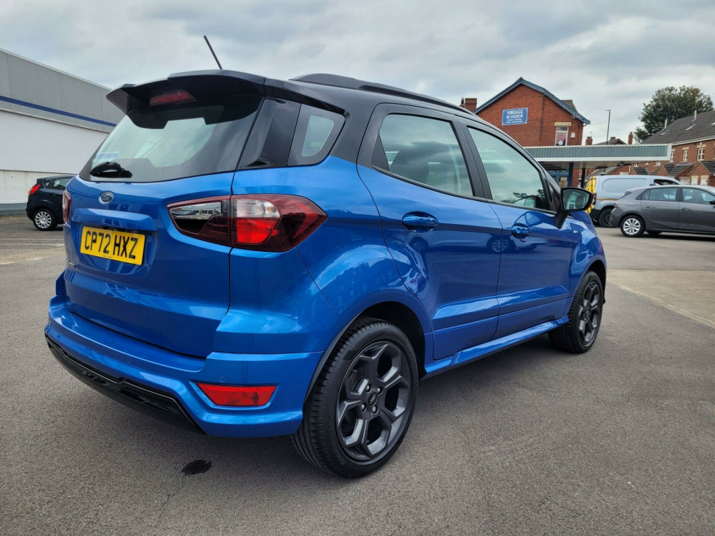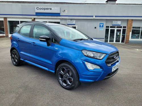 Priced At £15,6999.00 This One Owner Ex Motability Ford Ecosport 1.0T 125PS Ecoboost ST Line 5dr Finished In Desert Island Blue Metallic Paint Finish With Only 2,715 Miles Recorded! Complimented By The Factory Finished Agate Black Painted Roof And Door Mirror Cappings, Always A Popular Choice For This Particular Model. It Comes Supplied With A Full Service History With Its Last Service Having Been Completed On The 7th Of January 2025 At 2,359 Miles. Presented In Exceptional Condition Inside And Out, Our Sale Price Would Include The Remaining Balance Of The Ford 3 Years/60,000 Miles Manufacturers Warranty Until The 23rd Of January 2026, Subject To Regular Routine Servicing Being Carried Out Every 2 Years/18,000 Miles, Which Ever Occurs The Soonest. We Do Not Charge Any Administration Fees, The Only Add On Costs Are For Road Tax And Any Additional Warranty Period Requested By The New Keeper.