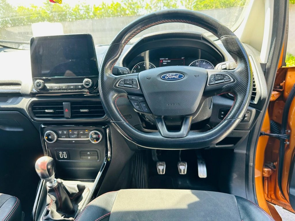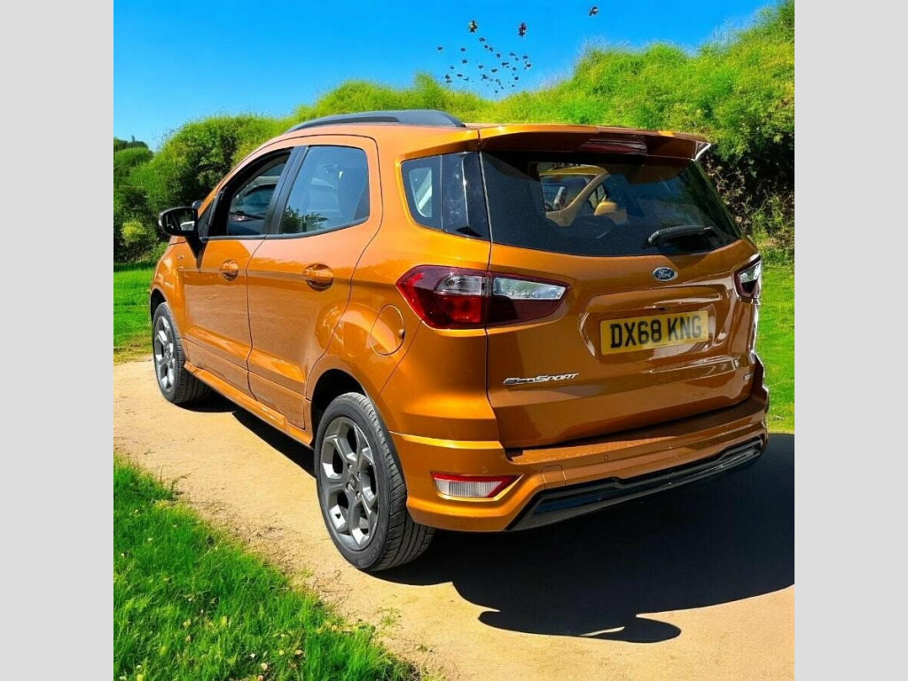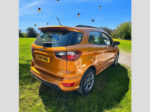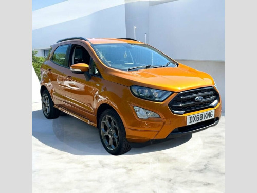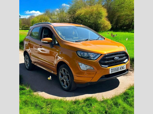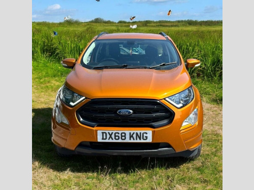 This Ford EcoSport, registered in 2018, is a stylish and efficient choice for those seeking a compact SUV. As a T ST-Line variant with the ST-Line trim, it combines sporty aesthetics with practical features. Under the bonnet is a responsive 1.0L petrol engine, designed to meet Euro 6 emission standards. Inside, you'll find Ford's SYNC 3 Navigation system, complete with an 8-inch touchscreen, Android Auto, and Apple CarPlay, ensuring you stay connected and entertained on the go. The inclusion of automatic headlights and electronic automatic temperature control adds convenience to your driving experience. Manoeuvring is made easier with the rear-view camera pack, which includes a rear camera and parking sensors. The low CO2 emissions of this vehicle mean it is kinder to the environment and potentially cheaper to run than similar vehicles. 17in Alloy Wheels - 5 Spoke Dark Tarnish, Adjustable Boot Load Floor, Air Conditioning - Electronic Automatic , Airbags - Curtain, Airbags - Driver and Front Passenger, Airbags - Drivers Knee, Airbags - Front Passenger De-Activation , Alarm - Thatcham Category 1 with Volume , Ambient Lighting - Instrument Panel and , Analogue Instrument Cluster, Anti-Lock Braking System - ABS with Elec, Auto-Dimming Electrochromic Rear-View Mi, Automatic Headlights, Black Headlight Bezel, Black Roof Rails, Centre Console Cup Holder with Chrome Ac, Centre Console with Covered Bin and Slid, Child Locks, Courtesy Light - Front with Two Map Ligh, Courtesy Light - Rear, Cruise Control, Door Frame Beltline - Black