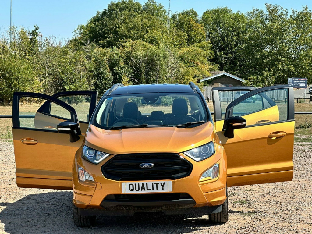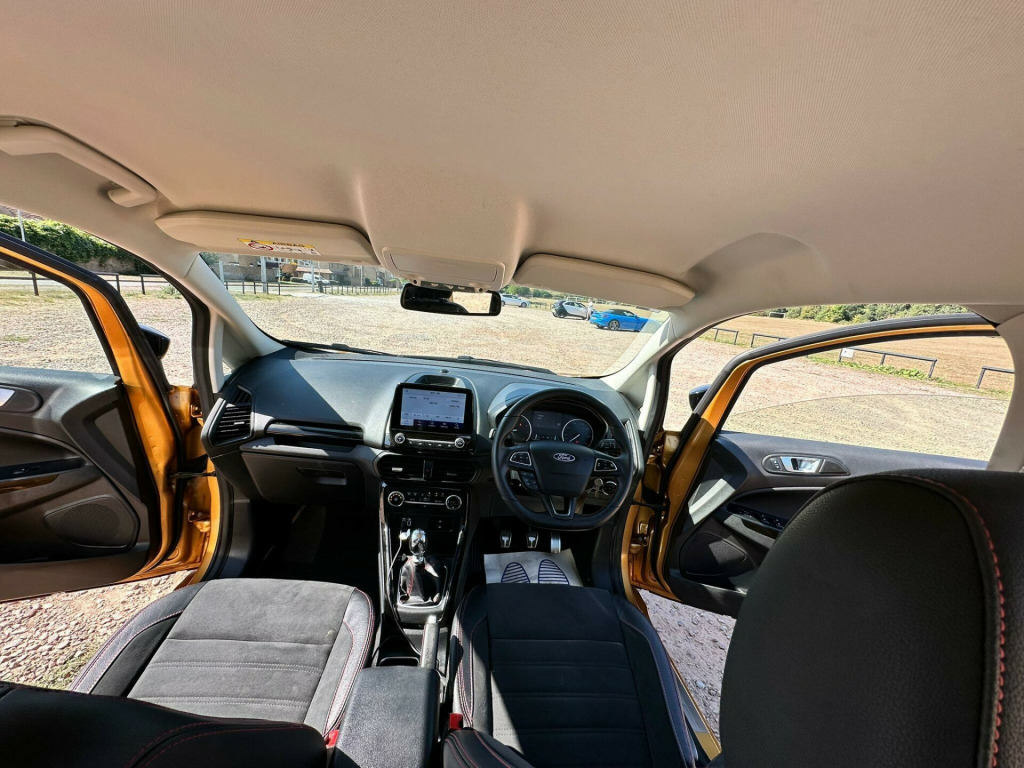 This 2020 Ford EcoSport ST-Line offers exceptional value with its remarkably low mileage of just 26,000 miles, a testament to its single owner. Powered by an efficient 1.0L petrol engine and meeting Euro 6 emissions standards, this ST-Line variant combines sporty styling with practicality. You can drive with confidence knowing it comes with a 3-month warranty and a full 12 months MOT provided on purchase, alongside a recent service completed on 25th August 2025. Inside, enjoy the convenience of automatic headlights, electronic automatic air conditioning, and a comprehensive rear view camera pack for easier parking. Stay connected and entertained with Ford SYNC 3 navigation featuring an 8-inch touchscreen, compatible with both Android Auto and Apple CarPlay.The EcoSport ST-Line stands out with its impressive fuel economy, achieving a remarkable 48 miles per gallon, which is a significant advantage for everyday running costs compared to many similar vehicles. Its low CO2 emissions further contribute to its economical profile. This well maintained, low mileage example provides a compelling package for anyone seeking a stylish and feature packed compact SUV.Visit Our Website Over 150 Cars In Stock + ALL DEALER FACILITIES AVAILABLE+ New service+ New Mot+ Reverse camera+ Low miles+ Cat s ( all works are done by approved garage) +FINANACE AVAILABLE+ ALL CARS SOLD WITH 12 MONTHS BREAKDOWN COVER AND EXTENDED WARRANTIES AVAILABLE. DRIVE AWAY INSURANCE ARRANGED (T&C Apply).. 17in Alloy Wheels - 5 Spoke Dark Tarnish, Adjustable Boot Load Floor, Air Conditioning - Electronic Automatic Temperature Control - EATC, Airbags - Curtain, Airbags - Driver and Front Passenger, Airbags - Drivers Knee, Airbags - Front Passenger De-Activation Switch, Alarm - Thatcham Category 1 with Volume Sensing and Perimeter, Ambient Lighting - Instrument Panel and Footwell, Analogue Instrument Cluster, Anti-Lock Braking System - ABS with Electronic Stability Control - ESC, Auto-Dimming Electrochromic Rear-View Mirror, Automatic Headlights, Black Headlight Bezel, Black Roof Rails, Centre Console Cup Holder with Chrome Accent, Centre Console with Covered Bin and Sliding Armrest, Child Locks, Courtesy Light - Front with Two Map Lights, Courtesy Light - Rear, Cruise Control, Door Frame Beltline - Black, Door Handles - Body Colour, Door Mirrors - Body Colour Housing, Door Mirrors - Power-Foldable Heated with Integrated Side Indicator and Puddle Lights, Driver Seat Manual Height- Fore/Aft and Seatback Angle Adjustment and Recliner, Driver Seat Manual Rotary Knob Lumbar Support Adjustment, Driver and Passengers Sun Visor with Covered Vanity Mirror and Ticket Strip on Drivers Side, Drivers Stowage Glovebox, EPAS - Electric Power Assisted Steering, ESP - Electronic Stability Programme with Hill Launch Assist, Emergency Assistance, Engine Immobiliser, Ford Easy Fuel - Capless Refuelling System, Ford SYNC 3 Navigation with 8in Touchscreen, Front Fog Lights and Turn Indication Light Bezel - Body Colour, Front Fog Lights with Combined Turn Indication Light, Front Grille Bars and Surround - Ebony Black, Front Seat - Passenger Manual - Fore-Aft and Recline Adjustment, Front Seat - Under Passenger Seat Stowage, Front Seats - 2-Way Head Restraint Up-Down, Front Seats - 3 Point Seat Belts with Load Limiter and Seatbelt Height Adjust, Front Seats - Seat-Back Map Pockets, Front Suspension - Independent with MacPherson Struts and Anti-Roll Bar, Front and Rear Bumper - Body Colour with Dark Sport Insert, Front and Rear Floor Mats with Red Stitching, Front and Rear Folding Grab Handles, Front and Rear Power Points - 12V, Full Length Overhead Console with Sunglasses Holder, Gear Shift Indicator, Gearshift Knob - Leather-Trimmed with Black Insert and Aluminium-Finish Ring and Red Stitching, Glovebox with Cool Bin - Lid and Illumination, Halogen Rear Lights, Handbrake Grip - Leather-Trimmed with Red Stitching, Headlights - Courtesy Delay, Headlights - Levelling Control, Headlights - Projector Beam Headlight with LED Daytime Running Lights, Height Lumbar Adjustment on Drivers Seat, High Mounted Brake Light, IPS - Intelligent Protection System, Keyless Start with Ford Power Start Button, Large Rear Spoiler, Leather Handbrake and Gearknob, Load Compartment - Lights, Load Compartment Carpet, Load Compartment Side Trim Incorporating Shopping Hooks, Lower Body Side - Door Claddings - Body Colour, Manual Parking Brake, MyKey, Power Front and Rear Windows with Global Opening-Closing, Quickclear Heated Front Windscreen with Heated Washer Jets, Rake Adjustable Rear Seat, Rear Seat - 60-40 Split Folding Seats, Rear Seats - 2-Way Head Restraint Up-Down, Rear Seats - Centre Head Restraint - Up-Down, Rear Seats - Retractable Rear Seat Belt - 3-Point All Positions, Rear Suspension - Semi-Independent Twist Beam with Twin Gas and Oil-Filled Shock Absorbers, Rear View Camera Pack, Remote Central Locking, Rocker Panel and Side Cladding - Body Colour ST-Line Design, Roof Rails - Black Painted Finish, ST-Line Bodystyling Kit, ST-Line Front Grille, ST-Line Styled Rear Lights, Seat Belt Reminder System - Drivers and Front Passengers, Seats - ISOFIX Mounting Provision for Child Seats - Outer Seats Only, Side Impact Door Beams, Soft Instrument Panel Cover, Sports Pedals with Stainless Steel Inserts, Sports Suspension, Steering Column - Rake and Reach Adjustment, Steering Wheel - Perforated Leather-Trimmed with Chrome Inserts and Red Stitching, Suspension - Front Stabiliser.