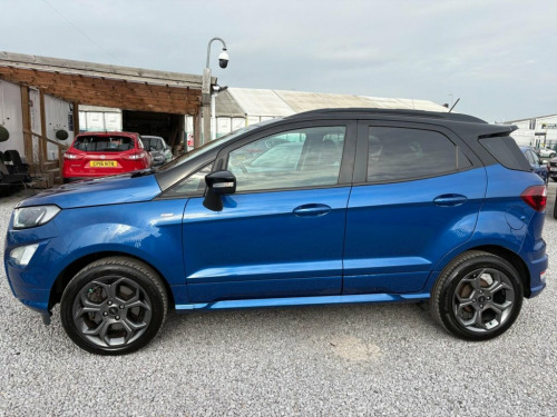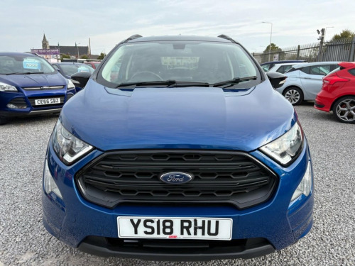 This 2018 Ford EcoSport ST-Line is a remarkable find, boasting exceptionally low mileage for its age at just 34,577 miles.  As a T ST-Line variant, it showcases sporty ST-Line bumpers and side skirts, complemented by a 1.0L petrol engine that meets Euro 6 emissions standards.  Inside, you'll appreciate the convenience of Electronic Automatic Temperature Control for a comfortable cabin environment, along with front 2-way head restraints for enhanced comfort.  Navigating and staying connected is effortless thanks to the Ford DAB Navigation System with Ford SYNC3, which includes Android Auto and Apple CarPlay compatibility, as well as Bluetooth connectivity. A NEW MOT AND SERVICE  COMPLETED ON 15/09/25  ULEZ-DAB RADIO-BLUETOOTH-ISOFIX-SAT NAV CAMERA-CAR PLAY-PARKING SENSORS-LIVE VIDEO AVAILABLE - ALL CARS COME WITH A NATION WIDE WARRANTY & ARE HPI CHECKED-NO ADMIN FEES-HOME DELIVERY AVAILABLE- PX WELCOME -Trading standard Approved -FINANCE AVAILABLE  & ALL CREDIT SCORES CONSIDERED   This EcoSport offers excellent efficiency, achieving an impressive 53 miles per gallon, which is a significant advantage over many similar vehicles. Its low CO2 emissions further contribute to its appeal, making it a more environmentally conscious choice. Parking is made simpler and safer with the inclusion of a rear view camera and rear parking sensors, providing parking assistance. These features collectively highlight how this particular Ford EcoSport ST-Line offers a superior driving and ownershi 17in Alloy Wheels - 5 Spoke Dark Tarnish, Adjustable Boot Load Floor, Airbags - Curtain, Airbags - Driver and Front Passenger, Airbags - Drivers Knee, Airbags - Front Passenger De-Activation , Alarm - Thatcham Category 1 with Volume , Ambient Lighting - Instrument Panel and , Analogue Instrument Cluster, Anti-Lock Braking System - ABS with Elec, Automatic Headlights, Black Headlight Bezel, Centre Console Cup Holder with Chrome Ac, Child Locks, Courtesy Light - Front with Two Map Ligh, Courtesy Light - Rear, Cruise Control, Door Frame Beltline - Black, Door Handles - Body Colour, Door Mirrors - Power-Foldable Heated wit, Driver Seat Manual Height- Fore/Aft and , Driver Seat Manual Rotary Knob