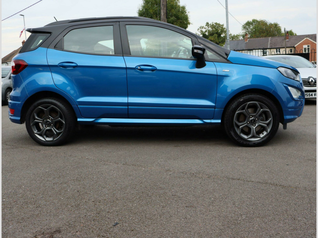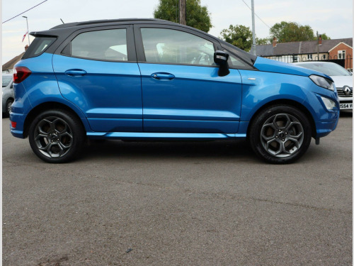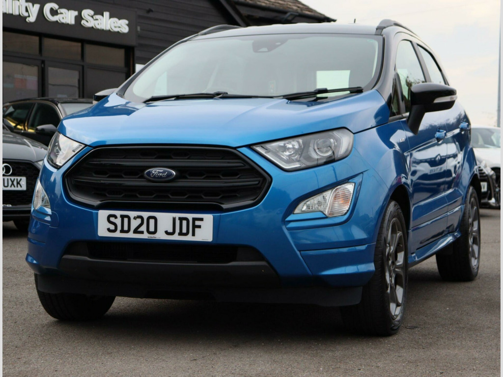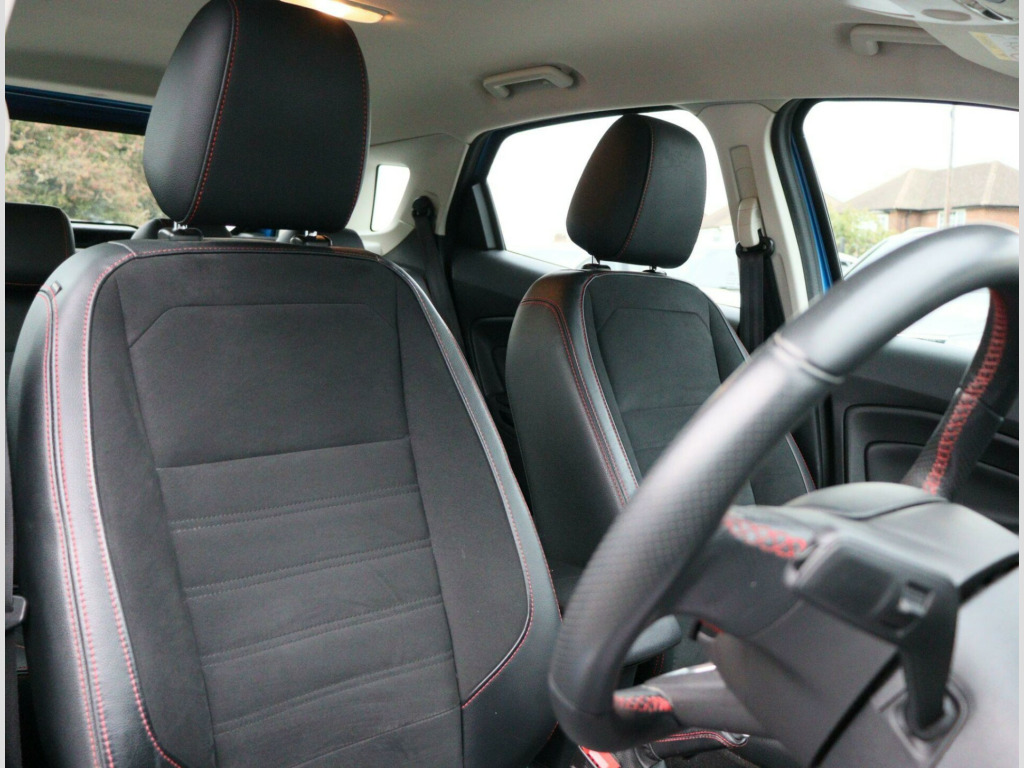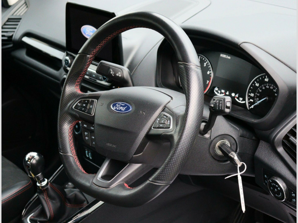This 2020 Ford EcoSport T ST-Line offers a blend of style and practicality, making it an excellent choice for those seeking a capable compact SUV. Powered by an efficient 1.0L petrol engine and meeting Euro 6 emissions standards, this model is equipped with the desirable Driver Assistance Pack, featuring Blind Spot Assistance for added safety. Navigating is made simple with Ford SYNC 3 Navigation and an 8in touchscreen that seamlessly integrates with Android Auto and Apple CarPlay. Comfort is assured with Electronic Automatic Temperature Control air conditioning, and convenience is enhanced by automatic headlights and front parking sensors with parking assistance.The Ford EcoSport T ST-Line stands out with its impressive fuel economy, achieving a highlight of 48 miles per gallon, which indicates it is more economical than many similar vehicles. Furthermore, its low CO2 emissions highlight also positions it favourably against other cars in its class. This combination of efficiency, advanced technology, and safety features makes the 2020 Ford EcoSport T ST-Line a compelling option for drivers in the UK.In Addition the car comes with 2 Keys, a long MOT, A mechanical/safety check and will be valeted. FREE DELIVERY AVAILABLE! NATIONWIDE CONTACTLESS DELIVERY (terms and conditions apply).We include 90 day warranty as standard plus an option to extend a  comprehensive warranty for up to 3 years!Reserve the car for £99 (Refundable) online visit us at www.thecoalvillemotorcompany.com or via telephoneTest drive before you buy, with no commitment and completely hassle free experience. We accept all major debit and credit cards. Bank transfer and cashFinance also available, personalized to meet your requirements.  Part exchange welcome.Drive away insurance available.Please contact our friendly sales team for more information  on 01164843301. Viewing by AppointmentsFCA Approved - VAT Registered - All Vehicles HPI  Clean ont parking sensors, driver assistance pack, agate black contrast roof and mirrors, 17in alloy wheels - 5 spoke dark tarnish, adjustable boot load floor, air conditioning - electronic automatic temperature control - eatc, airbags - curtain, airbags - driver and front passenger, airbags - drivers knee, airbags - front passenger de-activation switch, alarm - thatcham category 1 with volume sensing and perimeter, ambient lighting - instrument panel and footwell, analogue instrument cluster, anti-lock braking system - abs with electronic stability control - esc, auto-dimming electrochromic rear-view mirror, automatic headlights, autonomous emergency braking, black headlight bezel, black roof rails, centre console cup holder with chrome accent, centre console with covered bin and sliding armrest, child locks, courtesy light - front with two map lights, courtesy light - rear, cruise control, door frame beltline - black, door handles - body colour, door mirrors - body colour housing, door mirrors - power-foldable heated with integrated side indicator and puddle lights, driver seat manual height- fore/aft and seatback angle adjustment and recliner, driver seat manual rotary knob lumbar support adjustment, driver and passengers sun visor with covered vanity mirror and ticket strip on drivers side, drivers stowage glovebox, epas - electric power assisted steering, esp - electronic stability programme with hill launch assist, emergency assistance, engine immobiliser, ford easy fuel - capless refuelling system, ford sync 3 navigation with 8in touchscreen, front fog lights and turn indication light bezel - body colour, front fog lights with combined turn indication light, front grille bars and surround - ebony black, front seat - passenger manual - fore-aft and recline adjustment, front seat - under passenger seat stowage, front seats - 2-way head restraint up-down, front seats - 3 point seat belts with load limiter and seatbelt height adjust, front seats - seat-back map pockets, front suspension - independent with macpherson struts and anti-roll bar, front and rear bumper - body colour with dark sport insert, front and rear floor mats with red stitching, front and rear folding grab handles, front and rear power points - 12v, full length overhead console with sunglasses holder, gear shift indicator, gearshift knob - leather-trimmed with black insert and aluminium-finish ring and red stitching, halogen rear lights, handbrake grip - leather-trimmed with red stitching, headlights - courtesy delay, headlights - levelling control, headlights - projector beam headlight with led daytime running lights, height lumbar adjustment on drivers seat, high mounted brake light, ips - intelligent protection system, keyless start with ford power start button, large rear spoiler, leather handbrake and gearknob, load compartment - lights, load compartment carpet, load compartment side trim incorporating shopping hooks, lower body side - door claddings - body colour, manual parking brake, mykey, power front and rear windows with global opening-closing, quickclear heated front windscreen, rake adjustable rear seat, rear seat - 60-40 split folding seats, rear seats - 2-way head restraint up-down, rear seats - centre head restraint - up-down, rear seats - retractable rear seat belt - 3-point all positions, rear suspension - semi-independent twist beam with twin gas and oil-filled shock absorbers, rear view camera pack, remote central locking, rocker panel and side cladding - body colour st-line design, st-line bodystyling kit, st-line front grille, st-line styled rear lights, seat belt reminder system - drivers and front passengers, seats - isofix mounting provision for child seats - outer seats only, side impact door beams, soft instrument panel cover, sports pedals with stainless steel inserts, sports suspension, steering column - rake and reach adjustment, steering wheel - perforated leather-trimmed with chrome inserts and red stitching, suspension - front stabiliser bar, threshold plates - front stainless steel with 