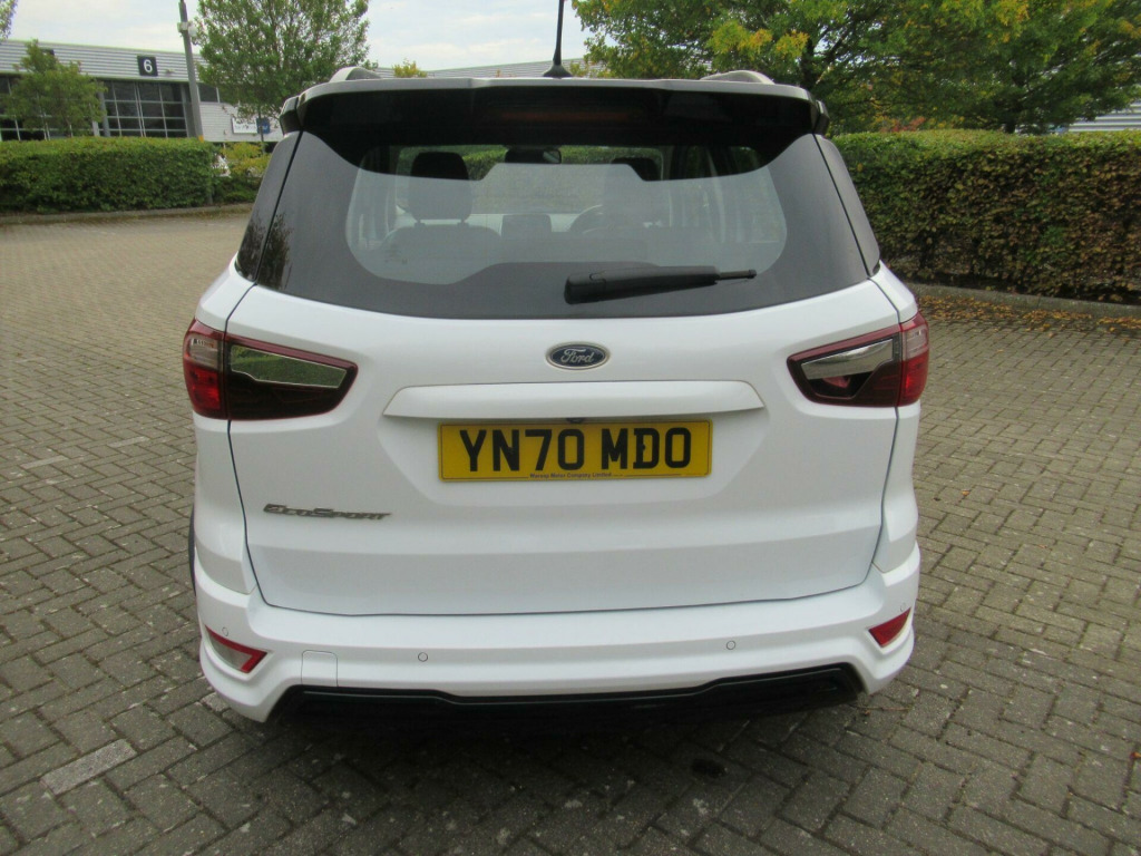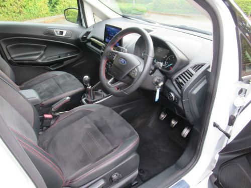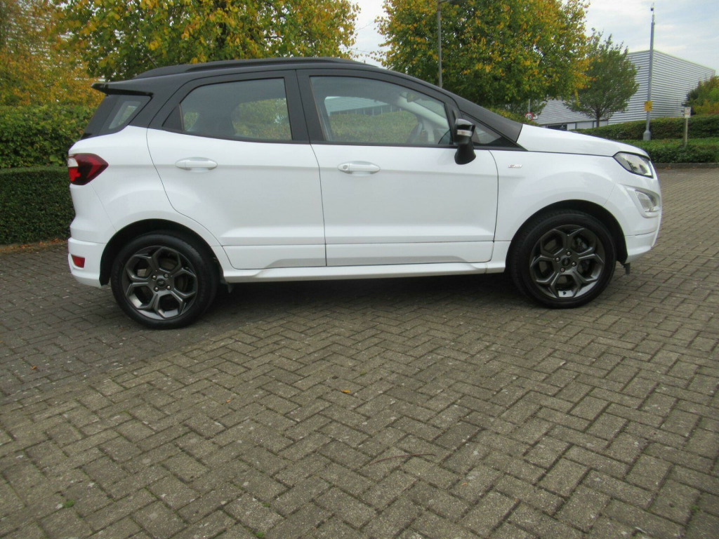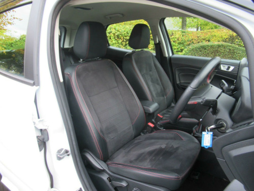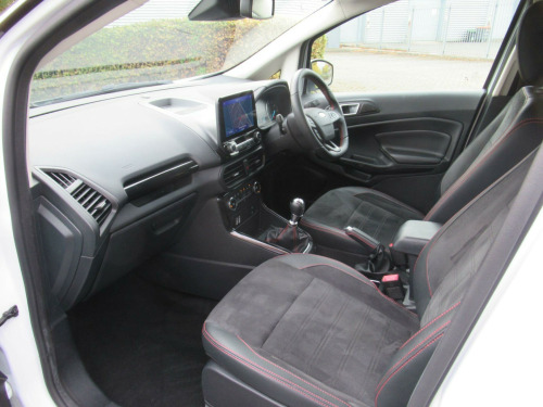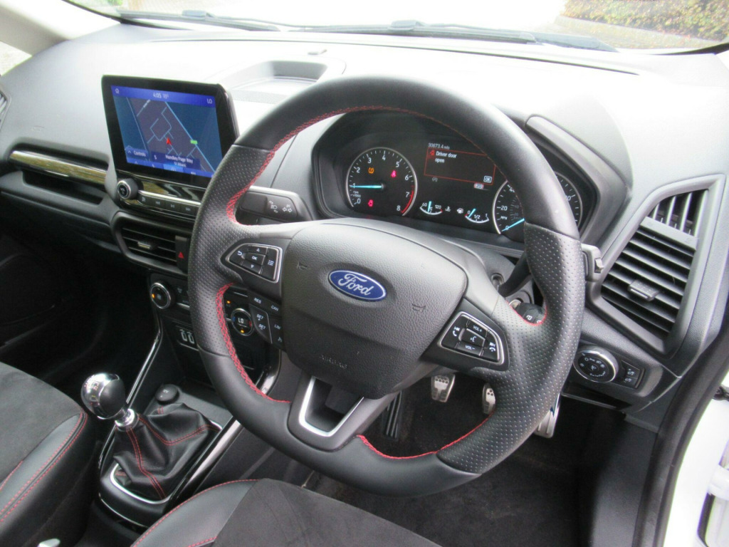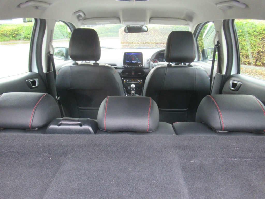 EURO 6 COMPLIANT ULEZ COMPLIANT This is Another One Owner Great Value Car We Can Offer to The Marketplace This Ford EcoSport 1.0T EcoBoost ST-Line Euro 6 (s/s) 5dr GREAT SPEC Apple CarPlay, Android Auto, rear view camera, power folding wing mirrors, Miko Dinamica fabric with leather bolster, parking sensors, rear privacy glass, cruise control, Ford SYNC3 navigation with 8 inch touchscreen, quick clear heated front windscreen, automatic headlights, rain sensing windscreen wipers, Bluetooth phone and music streaming, keyless start with Ford Power Start button, DAB radio, LED daytime running lights, climate control with automatic air conditioning, electric front and rear windows, ISOFIX, child locks, steering wheel audio controls and more.... GREAT SERVICE HISTORY ...This car will come with 3 months warranty protection cover for peace of mind. *** NO ADMIN FEES **information is supplied by CAPHPI and may vary to the actual car. This data does not form any part of a buying contact. Please check specification prior to purchase .... in alloy wheels - 5 spoke dark tarnish, adjustable boot load floor, air conditioning - electronic automatic temperature control - eatc, airbags - curtain, airbags - driver and front passenger, airbags - drivers knee, airbags - front passenger de-activation switch, alarm - thatcham category 1 with volume sensing and perimeter, ambient lighting - instrument panel and footwell, analogue instrument cluster, anti-lock braking system - abs with electronic stability control - esc, auto-dimming electrochromic rear-view mirror, automatic headlights, black headlight bezel, black roof rails, centre console cup holder with chrome accent, centre console with covered bin and sliding armrest, child locks, courtesy light - front with two map lights, courtesy light - rear, cruise control, door frame beltline - black, door handles - body colour, door mirrors - electrically operated and heated, driver seat manual height- fore/aft and seatback angle adjustment and recliner, driver seat manual rotary knob lumbar support adjustment, driver and passengers sun visor with covered vanity mirror and ticket strip on drivers side, drivers stowage glovebox, epas - electric power assisted steering, esp - electronic stability programme with hill launch assist, emergency assistance, engine immobiliser, ford easy fuel - capless refuelling system, ford sync 3 navigation with 8in touchscreen, front fog lights with combined turn indication light, front grille bars and surround - ebony black, front seat - passenger manual - fore-aft and recline adjustment, front seat - under passenger seat stowage, front seats - 2-way head restraint up-down, front seats - 3 point seat belts with load limiter and seatbelt height adjust, front seats - seat-back map pockets, front suspension - independent with macpherson struts and anti-roll bar, front and rear bumper - body colour with dark sport insert, front and rear floor mats with red stitching, front and rear folding grab handles, front and rear power points - 12v, full length overhead console with sunglasses holder, gear shift indicator, gearshift knob - leather-trimmed with black insert and aluminium-finish ring and red stitching, halogen rear lights, handbrake grip - leather-trimmed with red stitching, headlights - courtesy delay, headlights - levelling control, headlights - projector beam headlight with led daytime running lights, height lumbar adjustment on drivers seat, high mounted brake light, ips - intelligent protection system, large rear spoiler, load compartment - lights, load compartment carpet, load compartment side trim incorporating shopping hooks, lower body side - door claddings - body colour, manual parking brake, mykey, painted contrast roof and mirrors - agate black, power front and rear windows with global opening-closing, pre-collision assist with aeb, quickclear heated front windscreen, rake adjustable rear seat, rear seat - 60-40 split folding seats, rear seats - 2-way head restraint up-down, rear seats - retractable rear seat belt - 3-point all positions, rear suspension - semi-independent twist beam with twin gas and oil-filled shock absorbers, rear view camera pack, remote central locking, rocker panel and side cladding - body colour st-line design, st-line bodystyling kit, st-line front grille, seat belt reminder system - drivers and front passengers, seats - isofix mounting provision for child seats - outer seats only, sensico-trimmed steering wheel - handbrake handle and gearshift gaiter with red stitching, side impact door beams, soft instrument panel cover, sports pedals with stainless steel inserts, sports suspension, steering column - rake and reach adjustment, suspension - front stabiliser bar, tsr - traffic sign recognition, threshold plates - front stainless steel with st logo, tie-down hooks, trip computer, tyre pressure monitoring system, tyre repair kit, wipers - front - automatic with rain sensor, wipers - rear wash-wipe - intermittent