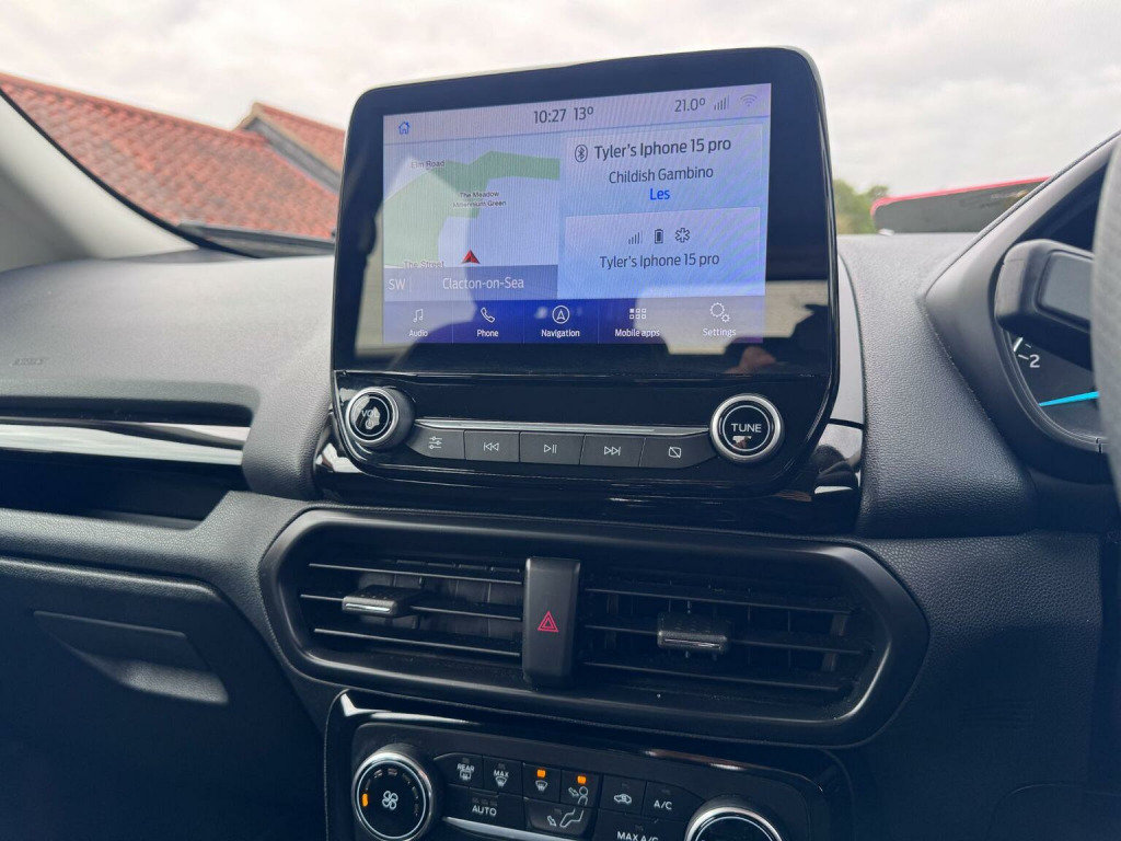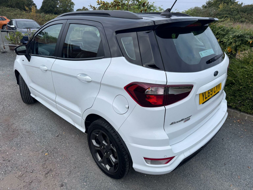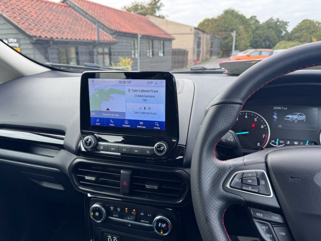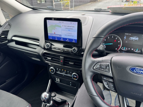 This 2019 Ford EcoSport ST Line presents an exceptional opportunity with its remarkably low mileage of just 20,393 miles. This 1.0L petrol model, finished in the sporty ST Line trim, is a Euro 6 compliant vehicle, ensuring efficient performance. It comes equipped with desirable features such as Electronic Automatic Temperature Control for effortless climate management, and a Rear View Camera Pack complete with rear parking sensors for enhanced manoeuvrability. Driving is made simpler with Automatic Headlights that switch on when needed, and the Ford SYNC 3 Navigation system featuring an 8-inch touchscreen, offering seamless integration with both Android Auto and Apple CarPlay. The Ford EcoSport ST Line stands out with its impressive fuel economy, achieving up to 47 miles per gallon, which is a significant advantage for everyday driving costs. Its low CO2 emissions further contribute to its appeal, indicating a more environmentally conscious choice compared to many other vehicles in its class. This combination of economical running, advanced technology, and the sporty ST Line styling makes this particular EcoSport a compelling option for those seeking a well equipped and efficient compact SUV.