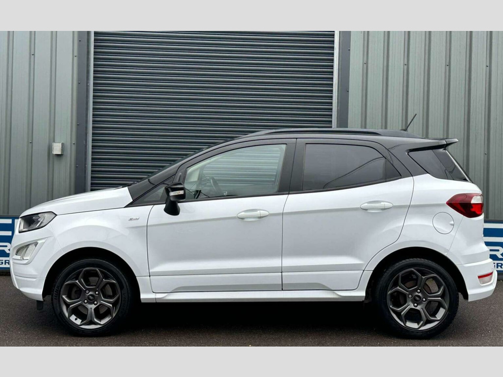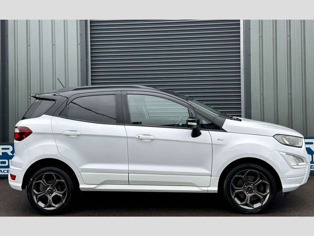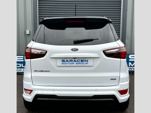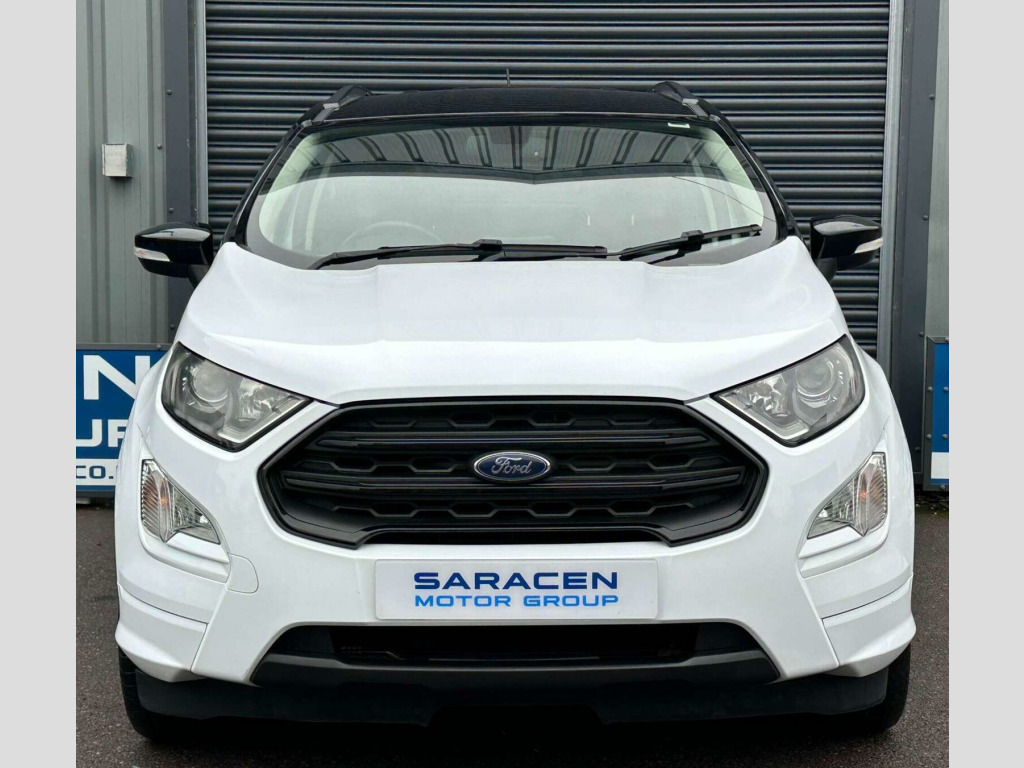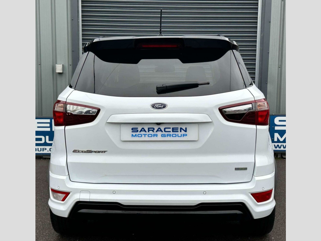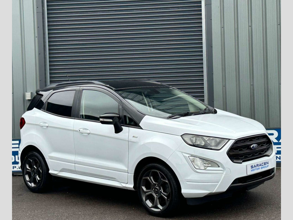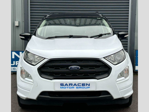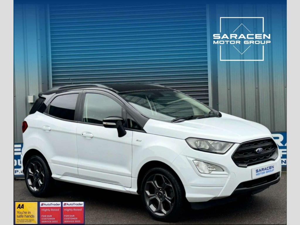Ford 1.0 EcoSport ST-Line 5dr Euro 6 ULEZ FREE. Finished in Frozen White with contrasting black roof. Half leather/half Alcantara with contrast red stitching. 17 alloy wheels, Ford SYNC 3 navigation, Apple car play /Android auto 8 multimedia screen, cruise control, electrically controlled/folding/heated door mirrors, front and rear electric windows, heated front windscreen, heated washer jets, automatic headlights, LED DRLs, ebony leather trimmed multifunction steering wheel, reversing camera, air conditioning, automatic wipers. Here at Saracen Motor Group we have been awarded AA Platinum dealership recognition along with being nominated for best customer service by Autotrader for 21,22, 23, 24 & 2025. We are a 5 star dealership with only 5 star reviews across all internet platforms including Autotrader and have been regarded as one of the best dealerships to buy from in the UK. Our preparation inspected each vehicle to the highest level possible for its age and mileage. You can rest assure your next car has been cared for to the highest standard. Service history, V5 and the HPI certificate will all be present on viewing and collection. With our location based in Battlesbridge, Essex you can enjoy a haggle-free buying experience where you can drive away the same day if prior arranged, additional fees apply please see our website for details.