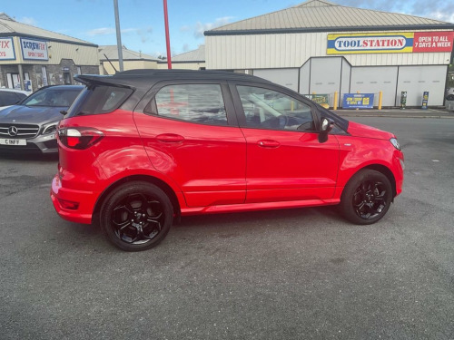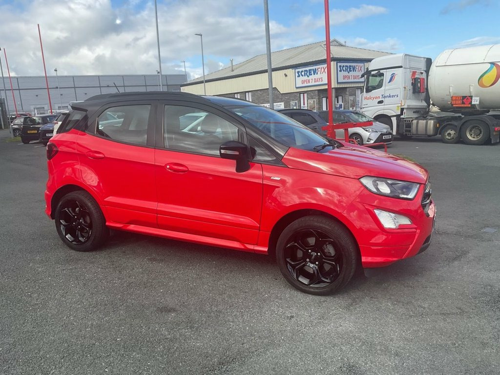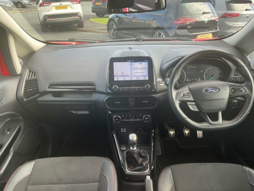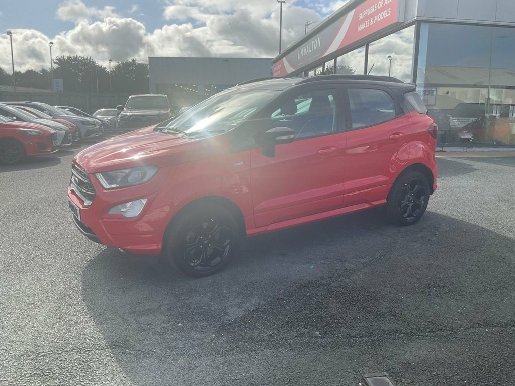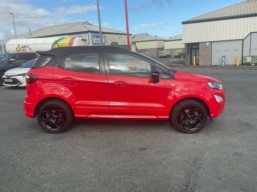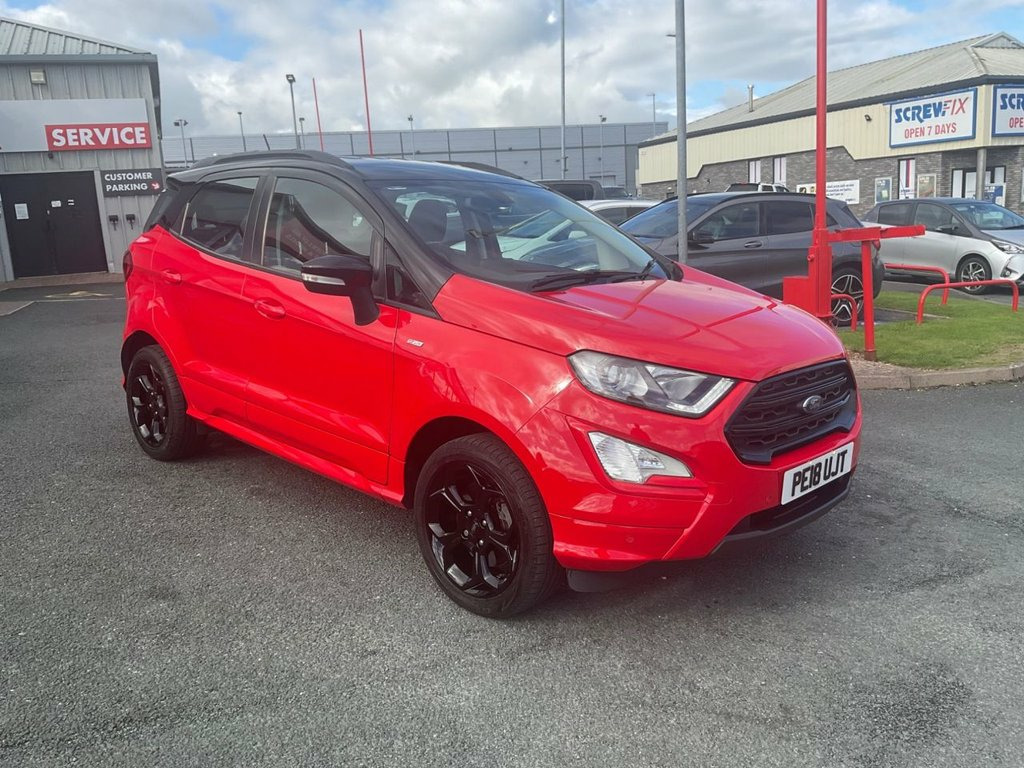 Here at Jim Walton Penrith we offer a wide range of models that have 12 months parts and labour warranty and at least 6 months MOT. We are delighted to be able to offer for sale this 2018 (18) Ford Ecosport ST Line 140 5Door. Superbly presented throughout this car comes with Sat nav, Bluetooth, heated seats, heated steering wheel, half leather interior, reverse camera, air con, alloys,electric windows, remote locking etc..., We have video presentations of this vehicle too simply drop us a message if you would like it sent over., Finance offers available and part exchanges welcome., Proud to supply quality used cars from our dealership in Penrith, Jim Walton has an exceptional choice of vehicles at affordable prices – just one of the reasons you should consider buying your next car from us! Couple that with more than 55 years' experience with an MOT and servicing centre on site, our reputation for providing excellent customer service is something we're extremely proud of. Race Red, Shadow Black Contrast Roof and Mirrors, 17in Alloy Wheels - 5 Spoke Dark Tarnish, Adjustable Boot Load Floor, Air Conditioning - Electronic Automatic , Airbags - Curtain, Airbags - Driver and Front Passenger, Airbags - Drivers Knee, Airbags - Front Passenger De-Activation , Alarm - Thatcham Category 1 with Volume , Ambient Lighting - Instrument Panel and , Analogue Instrument Cluster, Anti-Lock Braking System - ABS with Elec, Auto-Dimming Electrochromic Rear-View Mi, Automatic Headlights, Black Headlight Bezel, Front and Rear Power Points - 12V, Centre Console Cup Holder with Chrome Ac, Centre Console with Covered Bin and Slid, Child Locks, Courtesy Light - Front with Two Map Ligh,