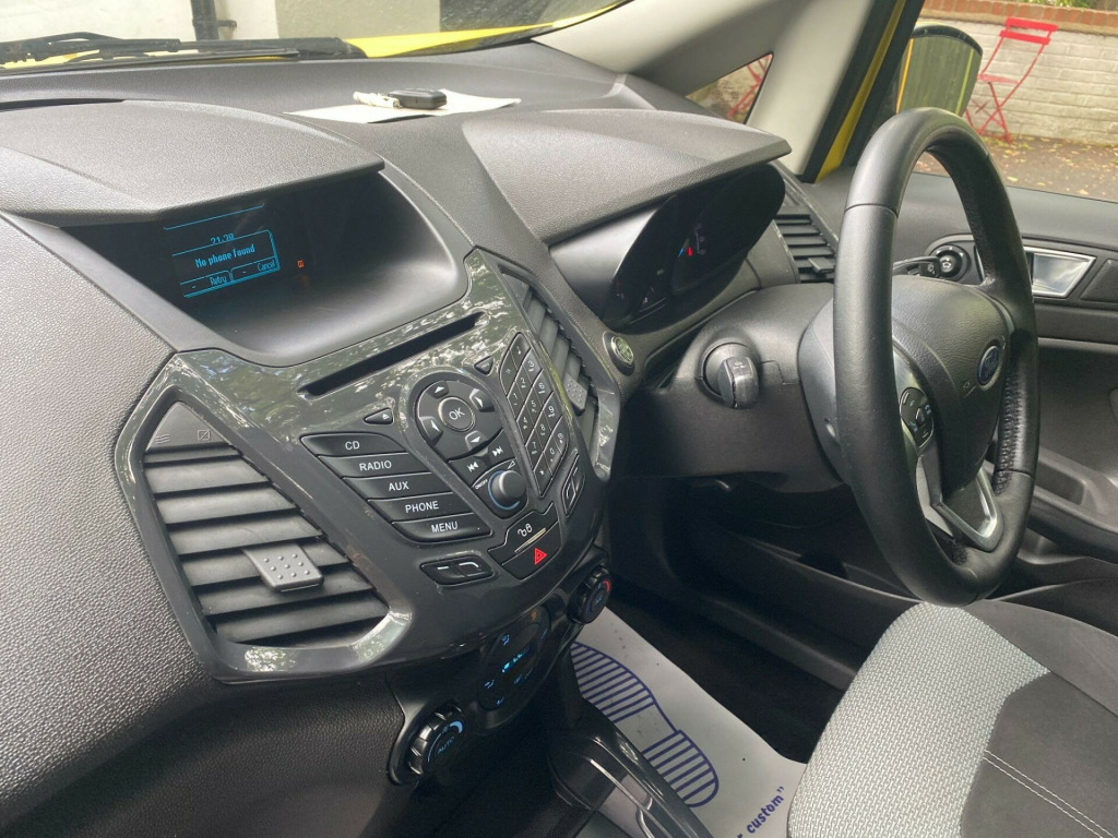 This Ford EcoSport, registered in 2015, is the Titanium trim of the T Titanium variant and offers a blend of practicality and style. Powered by a responsive 1.0L petrol engine, this EcoSport provides a comfortable and efficient driving experience. The vehicle includes keyless entry with central locking, adding convenience to your daily journeys. The Electronic Automatic Temperature Control, including climate control, ensures a pleasant environment inside the car, no matter the weather outside.This EcoSport stands out with its impressive fuel economy of up to 53 mpg, meaning fewer trips to the petrol station and more money in your pocket. It also boasts low CO2 emissions, making it a more environmentally conscious choice. Furthermore, the low insurance group associated with this model can lead to significant savings, especially for younger or newer drivers.. 16in Alloy Wheels - 6 Spoke, ABS - Anti-lock Braking System, AUX Connection, Airbag - Front Passenger, Airbags - Curtain, Airbags - Passenger Deactivation, Airbags - Side Impact, Card Holder, Central Locking - Keyless Entry, Chrome Grille - Large, DDS - Deflation Detection System, Daytime Running Lamps, Door Handle Integrated in Rear Light, Drivers Airbag, EATC - Electronic Automatic Temperature Control - Climate Control, Electric Windows - Front and Rear, Floor Mats - Carpet - Front and Rear, Ford Power Starter Button, Front Fog Lights, Front Skid Plates, Glovebox - Cooled, Handbrake Cover - Leather, Power Assisted Steering, Radio CD Player MP3 Compatible, Rake Adjustable Rear Seat, Rake and Reach Steering Adjustable, Rear Skid Plates, Seats - Drivers Lumbar Support, Seats - Drivers Manual Height and Tilt Adjustment, Silver Roof Rails, Slide Out Drawer Under the Front Seat, Spare Wheel with Cover - Alloy, Steering Wheel - Audio Controls, Steering Wheel - Leather, Stowage Pockets - Front Seatback, Sunglasses Holder, Thatcham Category 1 Alarm, Trip Computer, Tyre Pressure Monitoring System, USB Connection.