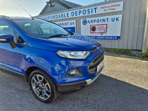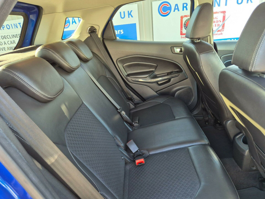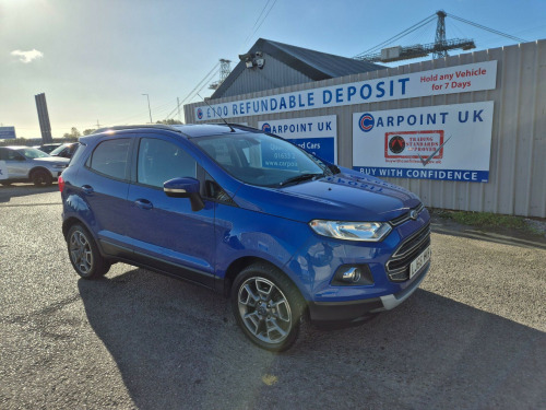 Enjoy peace of mind with this 2016 Ford EcoSport T Titanium, boasting a full service history and an MOT valid until October 2026. This 1.0L petrol model has been meticulously maintained, with its last service completed on 2025-10-06 at 62,796 miles. Key features include central locking with keyless entry and electronic automatic temperature control for effortless climate management.This Ford EcoSport stands out with its comprehensive provenance, offering reassurance of its well cared for status. The inclusion of keyless entry and climate control enhances the driving experience, making it a practical and comfortable choice for everyday use.. 16in Alloy Wheels - 6 Spoke, ABS - Anti-lock Braking System, AUX Connection, Airbag - Front Passenger, Airbags - Curtain, Airbags - Passenger Deactivation, Airbags - Side Impact, Card Holder, Central Locking - Keyless Entry, Chrome Grille - Large, DDS - Deflation Detection System, Daytime Running Lamps, Door Handle Integrated in Rear Light, Drivers Airbag, EATC - Electronic Automatic Temperature Control - Climate Control, Electric Windows - Front and Rear, Floor Mats - Carpet - Front and Rear, Ford Power Starter Button, Front Fog Lights, Front Skid Plates, Glovebox - Cooled, Handbrake Cover - Leather, Power Assisted Steering, Radio CD Player MP3 Compatible, Rake Adjustable Rear Seat, Rake and Reach Steering Adjustable, Rear Skid Plates, Seats - Drivers Lumbar Support, Seats - Drivers Manual Height and Tilt Adjustment, Silver Roof Rails, Slide Out Drawer Under the Front Seat, Spare Wheel with Cover - Alloy, Steering Wheel - Audio Controls, Steering Wheel - Leather, Stowage Pockets - Front Seatback, Sunglasses Holder, Thatcham Category 1 Alarm, Trip Computer, Tyre Pressure Monitoring System, USB Connection. Full service history