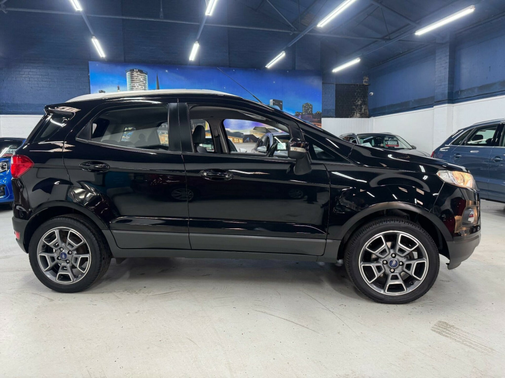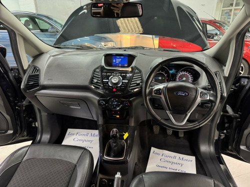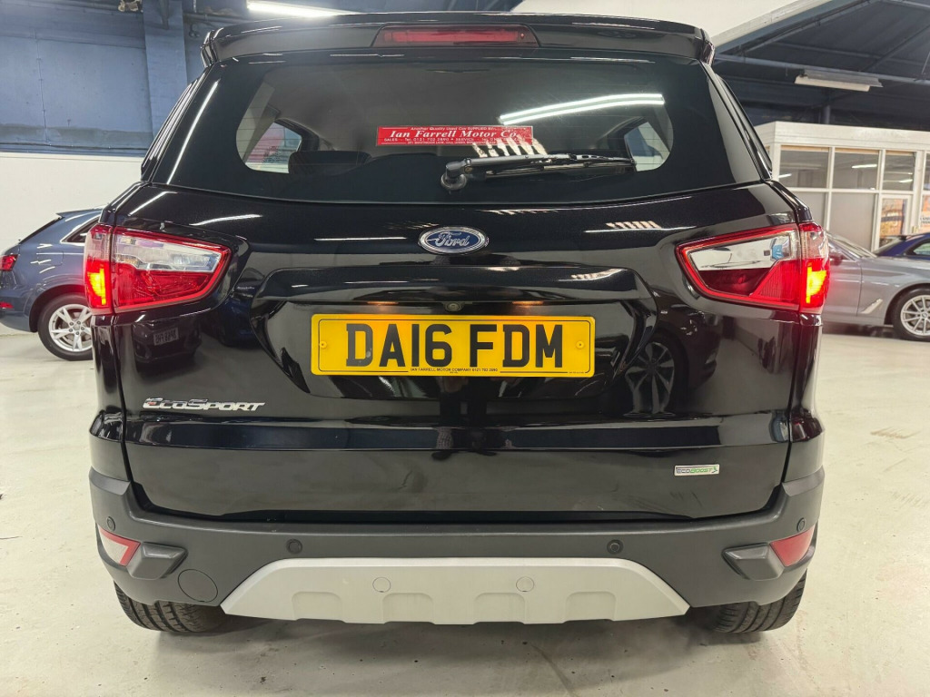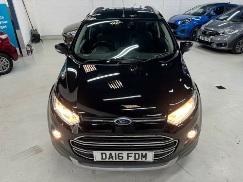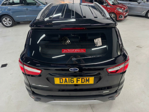 This 2016 Ford EcoSport T Titanium boasts a full service history, offering you peace of mind. This stylish SUV is equipped with a 1.0 litre petrol engine and comes with a 3 month warranty for added security. For your convenience, it features keyless entry and electronic automatic temperature control, ensuring a comfortable and effortless driving experience.The 12 months MOT provided on purchase further underlines the excellent condition of this vehicle. The inclusion of climate control and central locking highlights the thoughtful design and practical features that make this Ford EcoSport a superior choice for your next car.. 16in Alloy Wheels - 6 Spoke, ABS - Anti-lock Braking System, AUX Connection, Airbag - Front Passenger, Airbags - Curtain, Airbags - Passenger Deactivation, Airbags - Side Impact, Card Holder, Central Locking - Keyless Entry, Chrome Grille - Large, DDS - Deflation Detection System, Daytime Running Lamps, Door Handle Integrated in Rear Light, Drivers Airbag, EATC - Electronic Automatic Temperature Control - Climate Control, Electric Windows - Front and Rear, Floor Mats - Carpet - Front and Rear, Ford Power Starter Button, Front Fog Lights, Front Skid Plates, Glovebox - Cooled, Handbrake Cover - Leather, Power Assisted Steering, Radio CD Player MP3 Compatible, Rake Adjustable Rear Seat, Rake and Reach Steering Adjustable, Rear Skid Plates, Seats - Drivers Lumbar Support, Seats - Drivers Manual Height and Tilt Adjustment, Silver Roof Rails, Slide Out Drawer Under the Front Seat, Spare Wheel with Cover - Alloy, Steering Wheel - Audio Controls, Steering Wheel - Leather, Stowage Pockets - Front Seatback, Sunglasses Holder, Thatcham Category 1 Alarm, Trip Computer, Tyre Pressure Monitoring System, USB Connection, Panther Black, Parking Sensor - Rear. Full service history