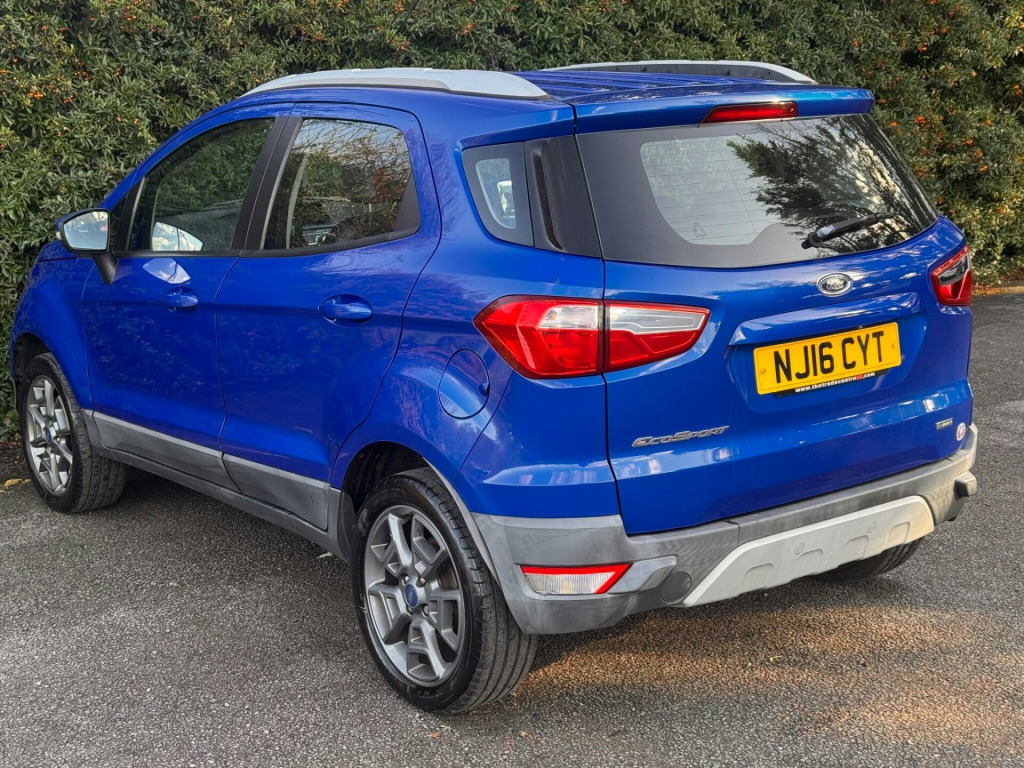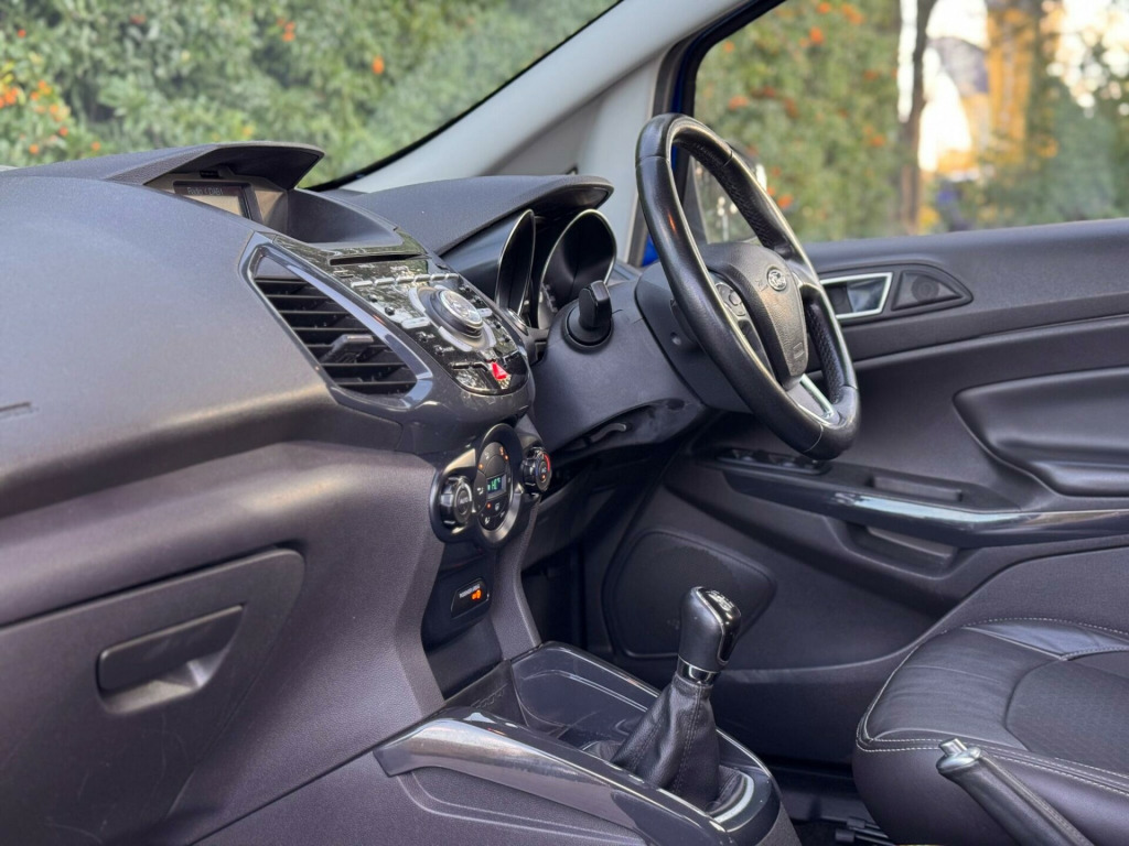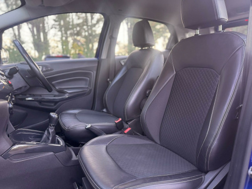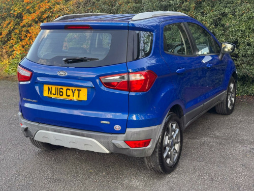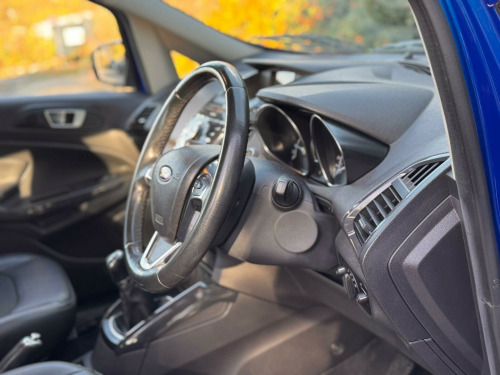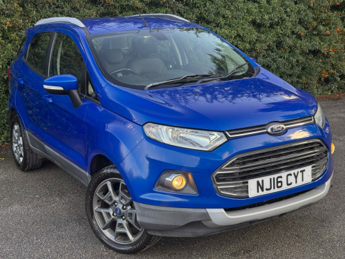 FULL SERVICE HISTORY - 1 FORMER KEEPER FROM NEW - MOT TILL JUNE 2026 - HPI CLEAR - FINANCE AVAILABLE- SAT NAV - BLUETOOTH - JUST BEEN SERVICED - ALL PART EXCHANGES ARE WELCOME - OVER 200 CARS IN STOCK - CALL FOR MORE INFORMATION This 2016 Ford EcoSport T Titanium presents a superb blend of practicality and comfort. Powered by an efficient 1.0L petrol engine, this model offers a smooth driving experience. Key features include keyless entry for effortless access and EATC, the electronic automatic temperature control, ensuring a consistently pleasant cabin environment regardless of the weather outside.The Titanium trim level signifies a well appointed vehicle, and this EcoSport is no exception. The inclusion of climate control means you can set your preferred temperature and let the car manage it automatically, enhancing your journey. This attention to detail in its features sets this Ford EcoSport apart, offering a refined and convenient ownership experience. in alloy wheels - 6 spoke, abs - anti-lock braking system, aux connection, airbag - front passenger, airbags - curtain, airbags - passenger deactivation, airbags - side impact, card holder, central locking - keyless entry, chrome grille - large, dds - deflation detection system, daytime running lamps, door handle integrated in rear light, drivers airbag, eatc - electronic automatic temperature control - climate control, electric windows - front and rear, floor mats - carpet - front and rear, ford power starter button, front fog lights, front skid plates, glovebox - cooled, handbrake cover - leather, power assisted steering, radio cd player mp3 compatible, rake adjustable rear seat, rake and reach steering adjustable, rear skid plates, seats - drivers lumbar support, seats - drivers manual height and tilt adjustment, silver roof rails, slide out drawer under the front seat, spare wheel with cover - alloy, steering wheel - audio controls, steering wheel - leather, stowage pockets - front seatback, sunglasses holder, thatcham category 1 alarm, trip computer, tyre pressure monitoring system, usb connection