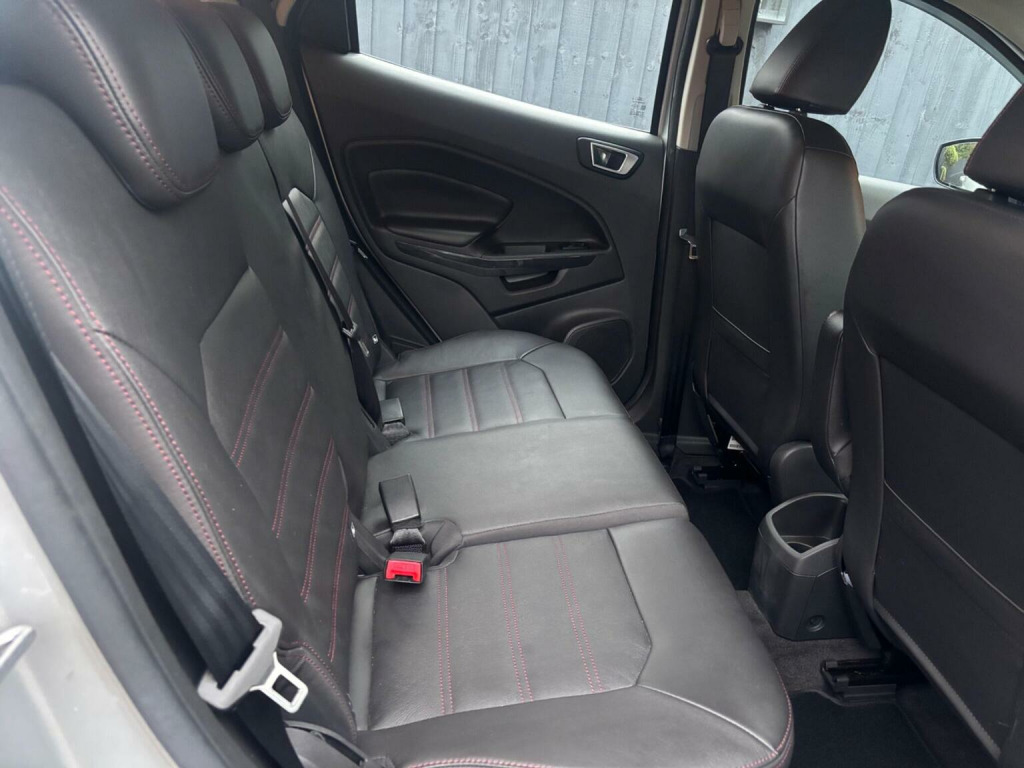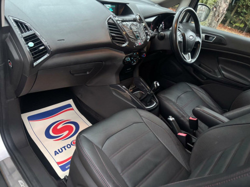 ALL VIEWINGS STRICTLY BY APPOINTMENT ONLY, FINANCE DELIVERY AND PX AVAILABLE, EXCELLENT LOW MILEAGE EXAMPLE ONLY COVERED A GENUINE 16,000 MILES WITH 5 SERVICES ( just been serviced) MOT NOVEMBER 2026 WITH NO ADVISORIES, BLACK LEATHER, REAR PARKING SENSORS, COMES WITH 6 MONTHS NATIONWIDE WARRANTY AND 12 MONTHS AA COVER, 2 KEYS, BUY WITH CONFIDENCE READ OUR CUSTOMERS DEALER REVIEWS, UNDER COVER INDOOR SHOWROOM VIEWING, FULL DEALER FACILITIES, OPEN 7 DAYS BY APPOINTMENT ONLY. This 2015 Ford EcoSport T Titanium presents an exceptional opportunity with its remarkably low mileage of just 16,000 miles, a significant advantage for a vehicle of its age. This particular model boasts a 1.0L petrol engine and comes with a 6 month warranty for your peace of mind. Its provenance is further strengthened by a full service history, a clear vehicle history check, and it has had only two owners. The last service was completed at 16,000 miles, ensuring it is well maintained. Notable features include keyless entry with central locking and EATC electronic automatic temperature control for effortless comfort. This Ford EcoSport stands out with several key highlights that demonstrate its superior value. Its fuel economy is a notable 53 mpg, meaning you can enjoy more miles for less money. Furthermore, it falls into a low insurance group, which can help keep your running costs down. The vehicle also benefits from low CO2 emissions, making it a more environmentally conscious choice. To ensure your confidence, a 12 month MOT will be provided on purchase, confirming its roadworthiness.
