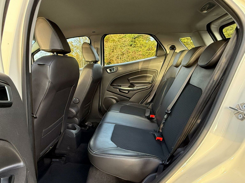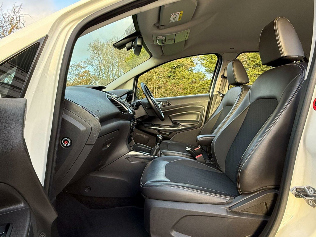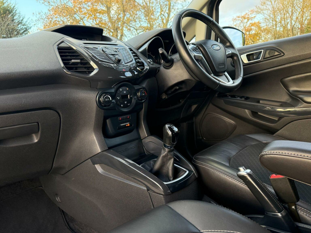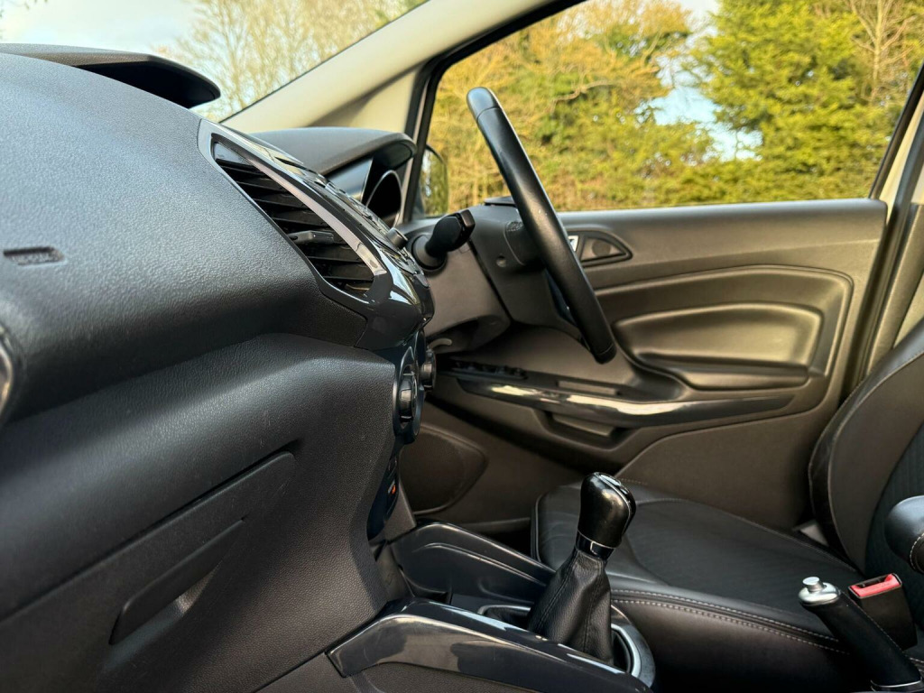 FORD ECOSPORT 1.0T ECOBOOST TITANIUM IN EXCELLENT CONDITION THROUGHOUT, FULLY HPI CLEAR, SUPPLIED WITH TWO ORIGINAL KEYS AND SOLD WITH A FRESH 12-MONTH MOT. ANNUAL ROAD TAX IS JUST £195, MAKING IT ECONOMICAL TO OWN AND RUN.THE TITANIUM SPECIFICATION DELIVERS A NOTICEABLY MORE PREMIUM FEEL WITH UPGRADED MATERIALS, REFINED TECHNOLOGY AND THE EFFICIENT ECOBOOST ENGINE PROVIDING SMOOTH, RELIABLE PERFORMANCE. SPECIFICATION INCLUDES KEYLESS ENTRY AND START, CLIMATE CONTROL, CRUISE CONTROL, SONY INFOTAINMENT, BLUETOOTH/USB, REAR PARKING SENSORS, ALLOY WHEELS, ELECTRIC WINDOWS AND MIRRORS, LEATHER-TRIMMED INTERIOR ACCENTS, AUTOMATIC HEADLIGHTS AND WIPERS, ISOFIX AND A MULTI-FUNCTION STEERING WHEEL. NATIONWIDE DELIVERY AVAILABLE, PART-EXCHANGE WELCOME, BY APPOINTMENT ONLY.SERVICED AT 5,406 MILES (22/05/2018), 9,217 MILES (28/05/2019), 14,313 MILES (06/08/2020), 17,755 MILES (26/07/2021) AND 22,862 MILES (27/07/2022), WITH ADDITIONAL BRAKE FLUID CHANGES COMPLETED AT 27,512 MILES (28/04/2023) AND 36,425 MILES (18/05/2024).