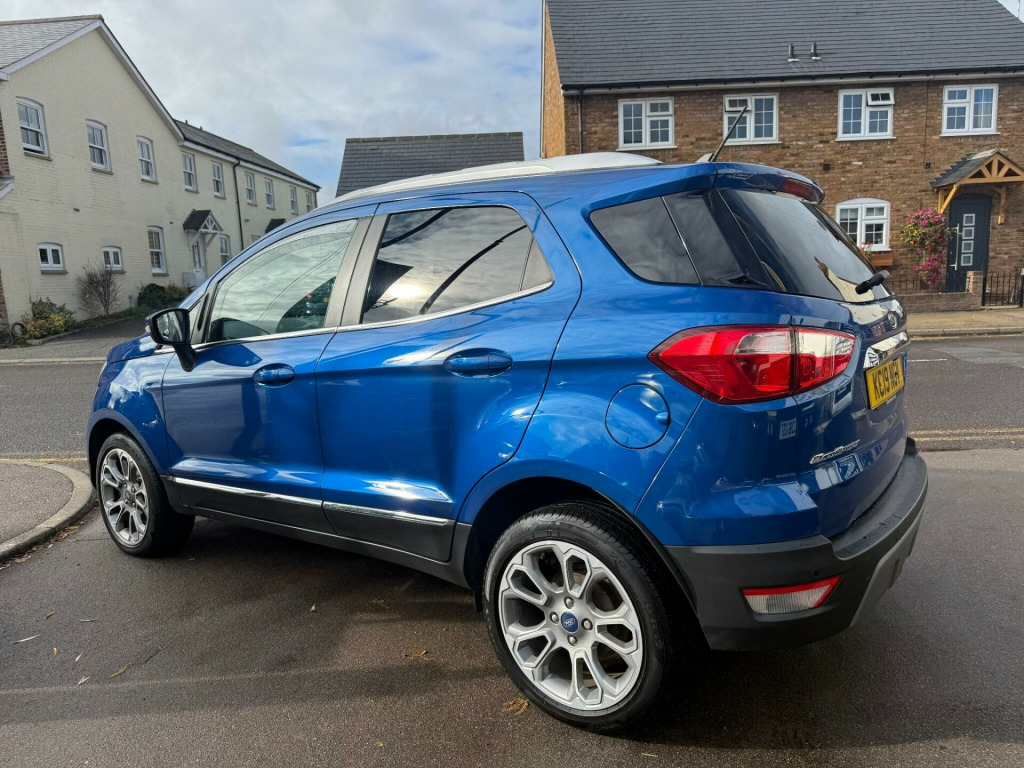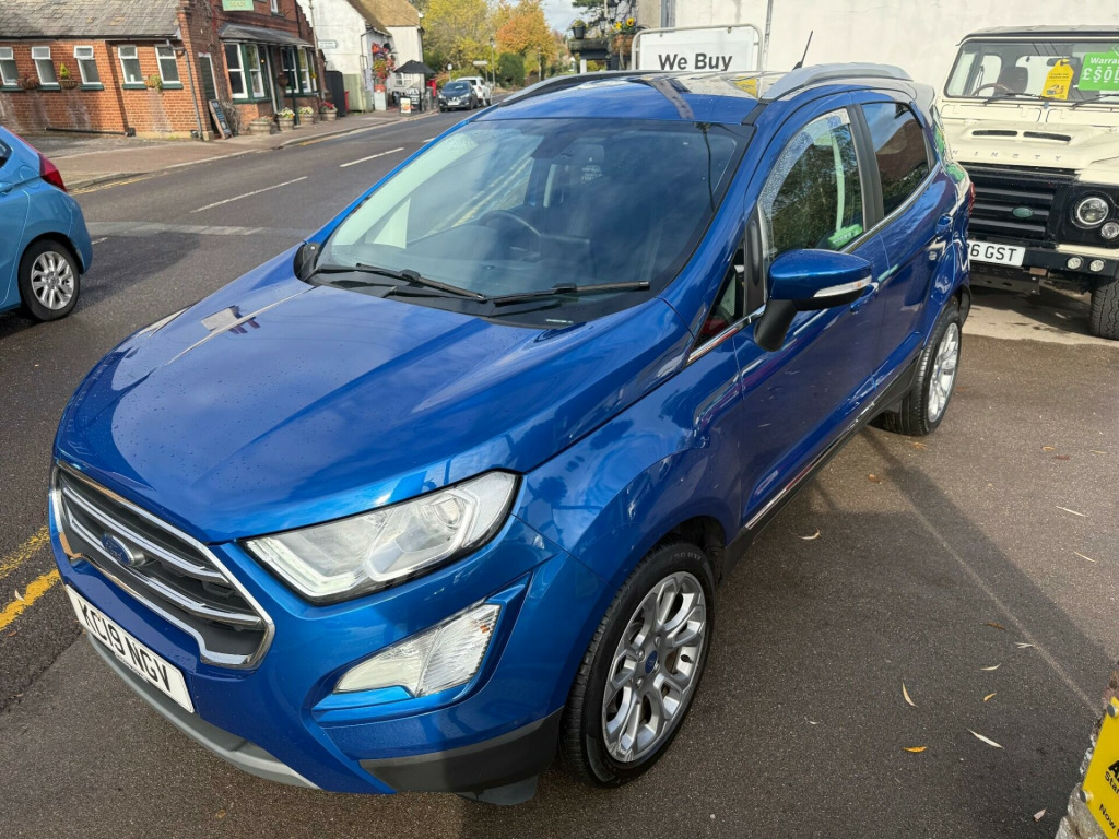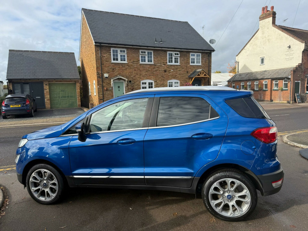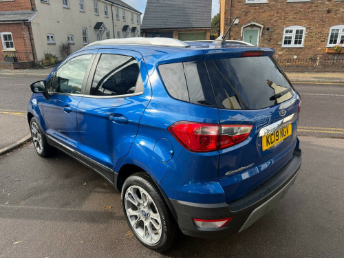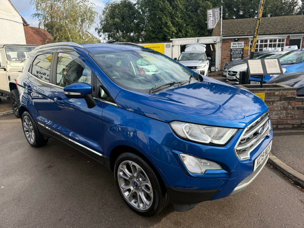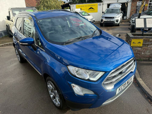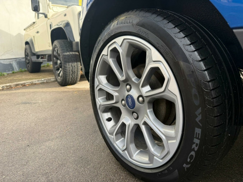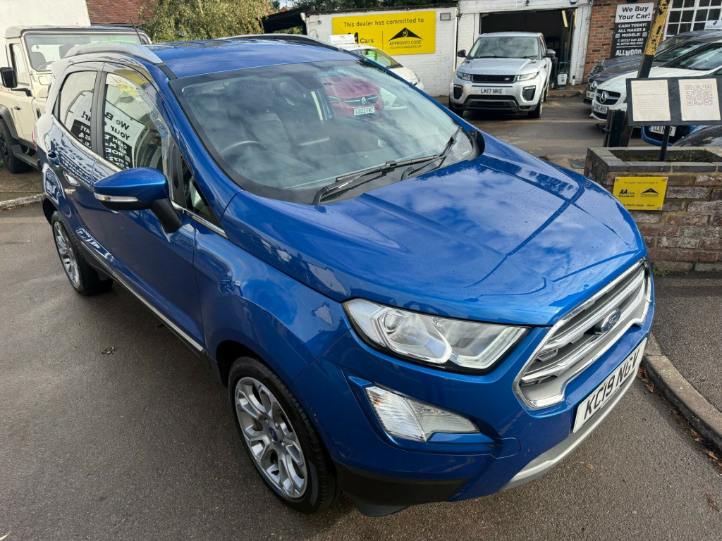 Allwood of Sandridge are pleased to be able to bring to market this lovely condition throughout and full service history with a wet belt replacement via Ford main dealer at 60,000 miles. In stunning lightning blue metallic paintwork this  Ford EcoSport 1.0T EcoBoost range topping Titanium edition has a lovely service record accompanying it. With full ford main dealer history for its first 4 service visits then followed by specialist independent with the last service at 55000 miles then a wet belt belt change at 60000 where the oil was changed again at the same time giving you  a lovely full history of 6 services. For further peace of mind the current MOT runs right through till 20/08/2026. Fully HPI verified with confirmation of the cars miles and 2 owners from new. 2 keys are also equipped with the car. A tremendous level of spec comes with the Titanium edition and highlights include features such as a full wide screen entertainment system with full navigation and reverse camera system, half leather interior, folding electric mirrors, dual USB inputs, keyless go, ambient lighting, leather multi functional steering wheel and cruise control with the exterior of the vehicle trimmed with gloss grey alloy wheels and privacy glass to complete the overall look. Ready to drive away! We offer our clients full dealership facilities, part exchange valuations with up to the minute market pricing. FCA regulated with access to some of the best funding options in the market (subject to status and vehicle choice). Our Staff are fully SAF approved. A portfolio of extended warranty options are on offer to suit your needs. Looking for a great driving and condition Ecosport, with wonderful spec and great colour combination with full history and new MOT and service? Our dealerships are fully AA Approved via trading standards and all vehicles come with free AA breakdown cover. We operate via appointments for viewings and test drives in order to give you the best possible service simply contact the friendly team today on 01727 641 333 or what's app and text services on 07741 585000 in alloy wheels - 10 spoke flash grey machined, adjustable boot load floor, air conditioning - electronic automatic temperature control - eatc, airbags - curtain, airbags - driver and front passenger, airbags - drivers knee, airbags - front passenger de-activation switch, alarm - thatcham category 1 with volume sensing and perimeter, ambient lighting - instrument panel and footwell, analogue instrument cluster, anti-lock braking system - abs with electronic stability control - esc, auto-dimming electrochromic rear-view mirror, automatic headlights, centre console cup holder with chrome accent, centre console with covered bin and sliding armrest, child locks, chrome headlight bezel, courtesy light - front with two map lights, courtesy light - rear, cruise control, door frame beltline - chrome, door handles - body colour, door mirrors - body colour housing, door mirrors - power-foldable heated with integrated side indicator and puddle lights, driver seat manual height- fore/aft and seatback angle adjustment and recliner, driver seat manual rotary knob lumbar support adjustment, driver and passengers sun visor with covered vanity mirror and ticket strip on drivers side, drivers stowage glovebox, epas - electric power assisted steering, esp - electronic stability programme with hill launch assist, emergency assistance, engine immobiliser, ford easy fuel - capless refuelling system, ford sync 3 navigation with 8in touchscreen, front fog lights and turn indication light bezel - body colour, front fog lights with combined turn indication light, front grille - chrome, front seat - passenger manual - fore-aft and recline adjustment, front seat - under passenger seat stowage, front seats - 2-way head restraint up-down, front seats - 3 point seat belts with load limiter and seatbelt height adjust, front seats - seat-back map pockets, front suspension - independent with macpherson struts and anti-roll bar, front and rear bumper - body colour with dark insert, front and rear floor mats, front and rear folding grab handles, front and rear power points - 12v, full length overhead console with sunglasses holder, gear shift indicator, glovebox with cool bin - lid and illumination, halogen rear lights, handbrake grip - leather-trimmed, headlights - courtesy delay, headlights - levelling control, headlights - projector beam headlight with led daytime running lights, height lumbar adjustment on drivers seat, high mounted brake light, ips - intelligent protection system, keyless start with ford power start button, leather handbrake and gearknob, load compartment - lights, load compartment carpet, load compartment side trim incorporating shopping hooks, lower body side - door claddings - black with chrome insert, manual parking brake, mykey, power front and rear windows with global opening-closing, quickclear heated front windscreen with heated washer jets, rake adjustable rear seat, rear seat - 60-40 split folding seats, rear seats - 2-way head restraint up-down, rear seats - centre head restraint - up-down, rear seats - retractable rear seat belt - 3-point all positions, rear suspension - semi-independent twist beam with twin gas and oil-filled shock absorbers, rear view camera pack, remote central locking, rocker panel and side cladding - black, seat belt reminder system - drivers and front passengers, seats - isofix mounting provision for child seats - outer seats only, select shift sports mode technology, side impact door beams, silver roof rails, soft instrument panel cover, steering column - rake and reach adjustment, steering wheel - leather-trimmed with chrome inserts, steering wheel - paddle shift, suspension - front stabiliser bar, tailgate handle - chrome, threshold plates - front - stainless steel with ecosport logo, tie-down hooks, trip computer, tyre inflator kit, tyre pressure monitoring system, tyre repair kit, wipers - front - automati