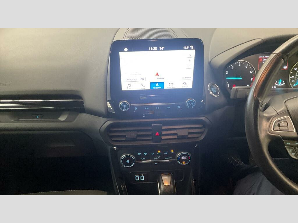 Finance Available  Extendable Warranty Available  Low Mileage  Service History  6 Months Warranty Included  Finance Available  2 Keys  ULEZ Free  Boasting exceptionally low mileage for its age, this 2018 Ford EcoSport T Titanium presents a superb opportunity.  With a clear vehicle history check and a mere 29,500 miles on the clock, this 1.0L petrol model is a well maintained example.  It features Electronic Automatic Temperature Control for your comfort, alongside a rear view camera and rear parking sensors to aid manoeuvring.  Stay connected and entertained with the Ford DAB Navigation System, complete with Ford SYNC3, Android Auto, Apple CarPlay, and Bluetooth connectivity.  Automatic headlights ensure optimal visibility in varying conditions.This Euro 6 compliant EcoSport offers impressive fuel economy, achieving up to 46 miles per gallon, and benefits from low CO2 emissions, indicating its efficiency compared to similar vehicles. These highlights demonstrate its cost effective running and environmental consideration, making it a practical choice for everyday driving. in alloy wheels - 10 spoke flash grey machined, adjustable boot load floor, airbags - curtain, airbags - driver and front passenger, airbags - drivers knee, airbags - front passenger de-activation switch, alarm - thatcham category 1 with volume sensing and perimeter, ambient lighting - instrument panel and footwell, analogue instrument cluster, anti-lock braking system - abs with electronic stability control - esc, automatic dimming rear view mirror, automatic headlights, centre console cup holder with chrome accent, centre console with sliding armrest, child locks, chrome headlight bezel, courtesy light - front with two map lights, courtesy light - rear, cruise control, door frame beltline - chrome, door handles - body colour, door mirrors - power-foldable heated with integrated side indicator and puddle lights, driver seat manual height- fore/aft and seatback angle adjustment and recliner, driver seat manual rotary knob lumbar support adjustment, driver and passengers sun visor with covered vanity mirror and ticket strip on drivers side, drivers stowage glovebox, epas - electric power assisted steering, electronic automatic temperature control - eatc, emergency assistance, engine immobiliser, ford dab navigation system with ford sync3, ford easy fuel - capless refuelling system, front 2-way head restraints, front fog lights, front grille - chrome, front seat - passenger manual - fore-aft and recline adjustment, front seats - 3 point seat belts with load limiter and seatbelt height adjust, front seats - seat-back map pockets, front suspension - independent with macpherson struts and anti-roll bar, front and rear bumper - body colour with dark insert, front and rear floor mats, front and rear folding grab handles, front and rear power points - 12v, full length overhead console with sunglasses holder, gear shift indicator, glovebox with cool bin - lid and illumination, halogen headlamps with led day running lights, halogen rear lights, handbrake grip - leather-trimmed, headlights - courtesy delay, headlights - levelling control, high mounted brake light, ips - intelligent protection system, keyless start with ford power start button, load compartment - lights, load compartment carpet, load compartment side trim incorporating shopping hooks, lower body side - door claddings - black with chrome insert, manual parking brake, mykey, power front and rear windows with global opening-closing, quickclear heated front windscreen with heated washer jets, rain sensing wipers, rear seat - fold and tumble 60-40 split - split back, rear seats - centre head restraint - up-down, rear seats - retractable rear seat belt - 3-point all positions, rear suspension - semi-independent twist beam with twin gas and oil-filled shock absorbers, rear view camera with rear parking sensors, remote central locking, rocker panel and side cladding - black, seat belt reminder system - drivers and front passengers, seats - isofix mounting provision for child seats - outer seats only, select shift sports mode technology, side impact door beams, silver roof rails, soft instrument panel cover, steering column - rake and reach adjustment, steering wheel - leather-trimmed with chrome inserts, steering wheel - paddle shift, storage - front passenger underseat area, suspension - front stabiliser bar, tailgate handle - chrome, threshold plates - front - stainless steel with ecosport logo, tie-down hooks, trip computer, tyre pressure monitoring system, tyre repair kit, wiper - intermittent rear wash-wipe