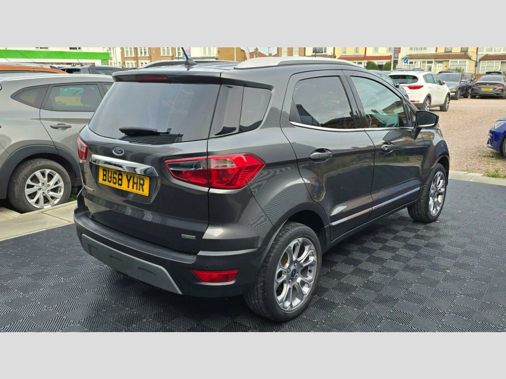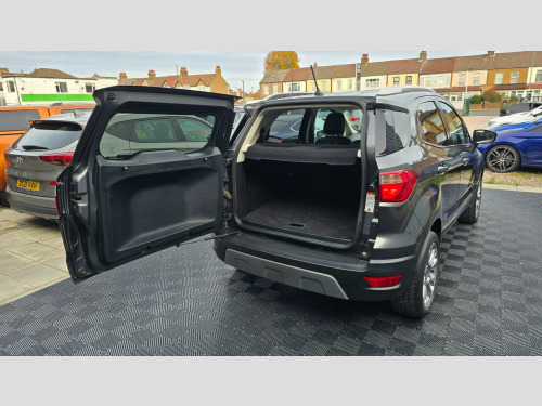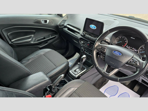 This 2018 Ford EcoSport T Titanium is a superb example, having been owned by just one careful keeper from new. This stylish compact SUV is powered by an efficient 1.0L petrol engine, meeting Euro 6 emissions standards. It comes equipped with Ford Keyless Entry and Keyless Start, allowing for effortless access and ignition. For added convenience and safety, you'll find rear privacy glass, a rear view camera complemented by rear parking sensors, and automatic headlights that illuminate the road ahead when needed.Inside, the EcoSport Titanium boasts the Ford DAB Navigation System with Ford SYNC3, offering seamless integration with your smartphone via Android Auto and Apple CarPlay, alongside Bluetooth connectivity for calls and music streaming. This vehicle achieves an impressive fuel economy of 46 mpg, demonstrating its efficiency compared to other vehicles in its class. The combination of its single owner provenance and desirable features makes this Ford EcoSport a compelling choice.At Brilliant Motors, we are excited to present this vehicle, which has undergone a thorough service and inspection. A full service history is provided, and the car has been meticulously cleaned inside and out. We welcome any inspection or test drive, and all of our vehicles are HPI clear. The vehicle comes with a 90-day basic warranty covering the engine and gearbox, with competitive extended warranty options available for added peace of mind. We offer nationwide home delivery and a 7-day money-back guarantee for online sales. Part exchange is accepted, and we are open 7 days a week. As an FCA registered dealer, we also provide financing options. For more information, please visit our website at www.brilliantmotors.co.uk. in alloy wheels - 10 spoke flash grey machined, adjustable boot load floor, airbags - curtain, airbags - driver and front passenger, airbags - drivers knee, airbags - front passenger de-activation switch, alarm - thatcham category 1 with volume sensing and perimeter, ambient lighting - instrument panel and footwell, analogue instrument cluster, anti-lock braking system - abs with electronic stability control - esc, automatic dimming rear view mirror, automatic headlights, centre console cup holder with chrome accent, centre console with sliding armrest, child locks, chrome headlight bezel, courtesy light - front with two map lights, courtesy light - rear, cruise control, door frame beltline - chrome, door handles - body colour, door mirrors - power-foldable heated with integrated side indicator and puddle lights, driver seat manual height- fore/aft and seatback angle adjustment and recliner, driver seat manual rotary knob lumbar support adjustment, driver and passengers sun visor with covered vanity mirror and ticket strip on drivers side, drivers stowage glovebox, epas - electric power assisted steering, electronic automatic temperature control - eatc, emergency assistance, engine immobiliser, ford dab navigation system with ford sync3, ford easy fuel - capless refuelling system, front 2-way head restraints, front fog lights, front grille - chrome, front seat - passenger manual - fore-aft and recline adjustment, front seats - 3 point seat belts with load limiter and seatbelt height adjust, front seats - seat-back map pockets, front suspension - independent with macpherson struts and anti-roll bar, front and rear bumper - body colour with dark insert, front and rear floor mats, front and rear folding grab handles, front and rear power points - 12v, full length overhead console with sunglasses holder, gear shift indicator, glovebox with cool bin - lid and illumination, halogen headlamps with led day running lights, halogen rear lights, handbrake grip - leather-trimmed, headlights - courtesy delay, headlights - levelling control, high mounted brake light, ips - intelligent protection system, keyless start with ford power start button, load compartment - lights, load compartment carpet, load compartment side trim incorporating shopping hooks, lower body side - door claddings - black with chrome insert, manual parking brake, mykey, power front and rear windows with global opening-closing, quickclear heated front windscreen with heated washer jets, rain sensing wipers, rear seat - fold and tumble 60-40 split - split back, rear seats - centre head restraint - up-down, rear seats - retractable rear seat belt - 3-point all positions, rear suspension - semi-independent twist beam with twin gas and oil-filled shock absorbers, rear view camera with rear parking sensors, remote central locking, rocker panel and side cladding - black, seat belt reminder system - drivers and front passengers, seats - isofix mounting provision for child seats - outer seats only, select shift sports mode technology, side impact door beams, silver roof rails, soft instrument panel cover, steering column - rake and reach adjustment, steering wheel - leather-trimmed with chrome inserts, steering wheel - paddle shift, storage - front passenger underseat area, suspension - front stabiliser bar, tailgate handle - chrome, threshold plates - front - stainless steel with ecosport logo, tie-down hooks, trip computer, tyre pressure monitoring system, tyre repair kit, wiper - intermittent rear wash-wipe, ford keyless entry and keyless start, rear privacy glass, groove fabric and leather bolster - ebony