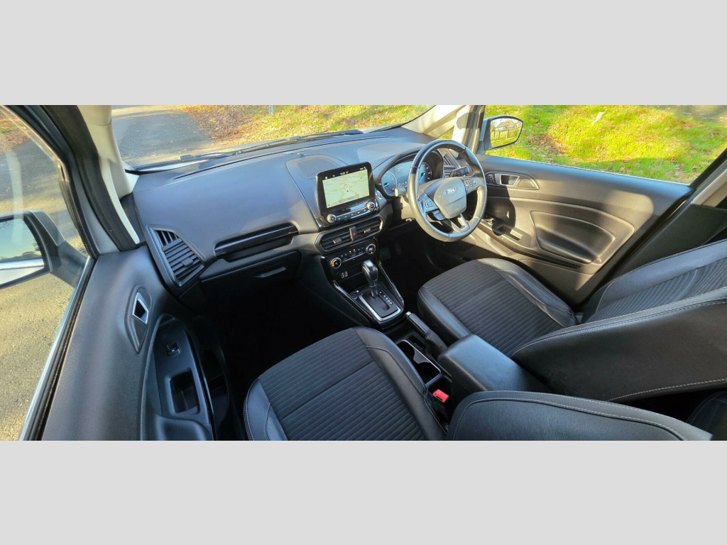 ++ 12 MONTHS FREE AA BREAKDOWN COVER ++ ULEZ COMPLIANT ++ TOP SPEC LOVELY LOOKING 18 REG AUTOMATIC PETROL DONE 82K MILES WITH SERVICE HISTORY AND ALL OLD MOT RECORD, MOTed TILL APRIL 2026, HPI CLEAR, HALF LEATHER INTERIOR, SAT NAV, REVERSE CAMERA with PARKING SENSORS, BLUETOOTH FOR PHONE AND MEDIA, PADDLE SHIFT, CLIMATE CONTROL/AIR CON, CRUISE CONTROL, TPMS, LED DAYTIME RUNNING LIGHTS, FRONT FOGS, AMBIENT LIGHTING, KEYLESS ENTRY AND PUSH BUTTON START, REMOTE CENTRAL LOCKING with 2 KEYS, RAIN SENSITIVE WIPERS, MULTI FUNCTION STEERING WHEEL, ELECTRIC WINDOWS AND MIRRORS, HEIGHT ADJUSTABLE SEATS AND STEERING, PAS, ABS, CLEAN INSIDE OUT, SMOOTH/SOLID AND NOISELESS DRIVE, EXCELLENT FUEL ECONOMY, GOOD LEG ROOM AND BOOT SPACE, WARRANTY AVAILABLE, FINANCE AVAILABLE, NATIONWIDE DELIVERY AVAILABLE, ANY INSPECTION/VIEWING OR TEST DRIVE IS WELCOME, VIEWING IS BY APPOINTMENT ONLY ..... rd keyless entry and keyless start, rear privacy glass, comfort pack, lux pack, 17in alloy wheels - 10 spoke flash grey machined, adjustable boot load floor, airbags - curtain, airbags - driver and front passenger, airbags - drivers knee, airbags - front passenger de-activation switch, alarm - thatcham category 1 with volume sensing and perimeter, ambient lighting - instrument panel and footwell, analogue instrument cluster, anti-lock braking system - abs with electronic stability control - esc, automatic dimming rear view mirror, automatic headlights, centre console cup holder with chrome accent, centre console with sliding armrest, child locks, chrome headlight bezel, courtesy light - front with two map lights, courtesy light - rear, cruise control, door frame beltline - chrome, door handles - body colour, door mirrors - power-foldable heated with integrated side indicator and puddle lights, driver seat manual height- fore/aft and seatback angle adjustment and recliner, driver seat manual rotary knob lumbar support adjustment, driver and passengers sun visor with covered vanity mirror and ticket strip on drivers side, drivers stowage glovebox, epas - electric power assisted steering, electronic automatic temperature control - eatc, emergency assistance, engine immobiliser, ford dab navigation system with ford sync3, ford easy fuel - capless refuelling system, front 2-way head restraints, front fog lights, front grille - chrome, front seat - passenger manual - fore-aft and recline adjustment, front seats - 3 point seat belts with load limiter and seatbelt height adjust, front seats - seat-back map pockets, front suspension - independent with macpherson struts and anti-roll bar, front and rear bumper - body colour with dark insert, front and rear floor mats, front and rear folding grab handles, front and rear power points - 12v, full length overhead console with sunglasses holder, gear shift indicator, glovebox with cool bin - lid and illumination, halogen headlamps with led day running lights, halogen rear lights, handbrake grip - leather-trimmed, headlights - courtesy delay, headlights - levelling control, high mounted brake light, ips - intelligent protection system, keyless start with ford power start button, load compartment - lights, load compartment carpet, load compartment side trim incorporating shopping hooks, lower body side - door claddings - black with chrome insert, manual parking brake, mykey, power front and rear windows with global opening-closing, quickclear heated front windscreen with heated washer jets, rain sensing wipers, rear seat - fold and tumble 60-40 split - split back, rear seats - centre head restraint - up-down, rear seats - retractable rear seat belt - 3-point all positions, rear suspension - semi-independent twist beam with twin gas and oil-filled shock absorbers, rear view camera with rear parking sensors, remote central locking, rocker panel and side cladding - black, seat belt reminder system - drivers and front passengers, seats - isofix mounting provision for child seats - outer seats only, select shift sports mode technology, side impact door beams, silver roof rails, soft instrument panel cover, steering column - rake and reach adjustment, steering wheel - leather-trimmed with chrome inserts, steering wheel - paddle shift, storage - front passenger underseat area, suspension - front stabiliser bar, tailgate handle - chrome, threshold plates - front - stainless steel with ecosport logo, tie-down hooks, trip computer, tyre pressure monitoring system, tyre repair kit, wiper - intermittent rear wash-wipe