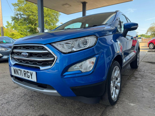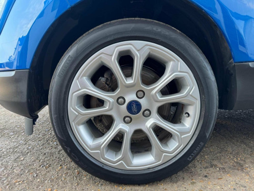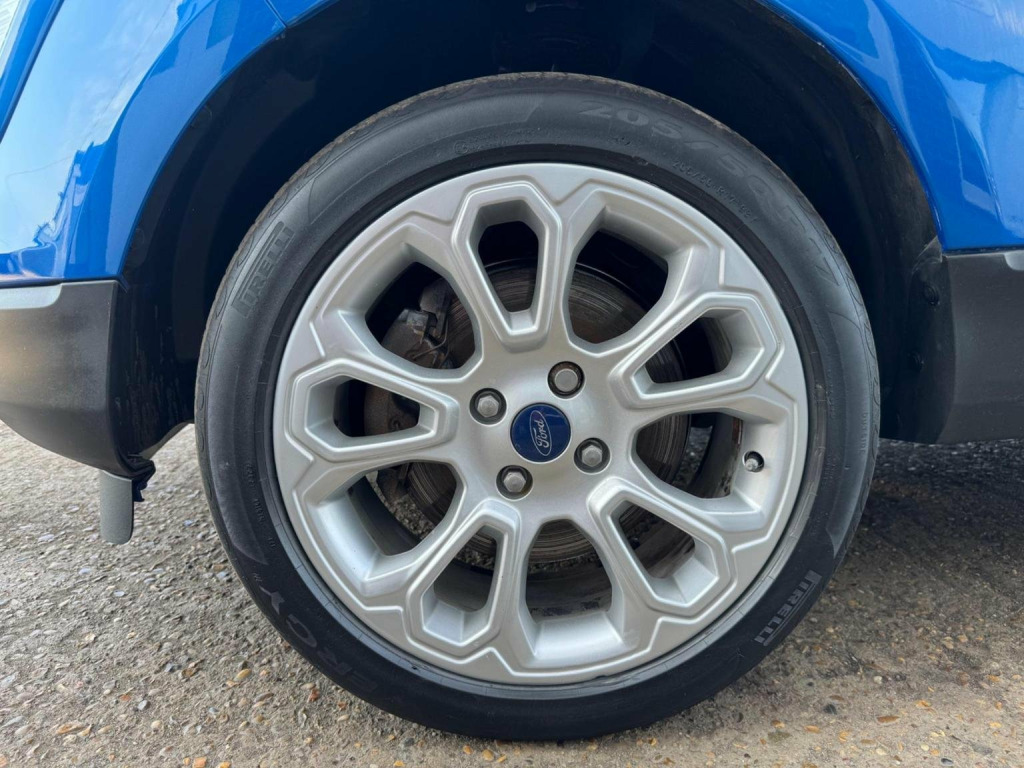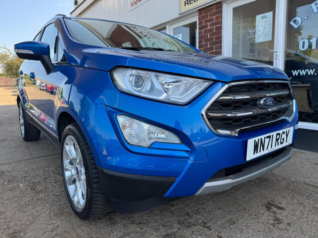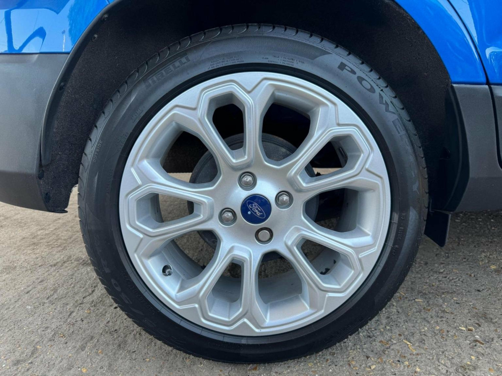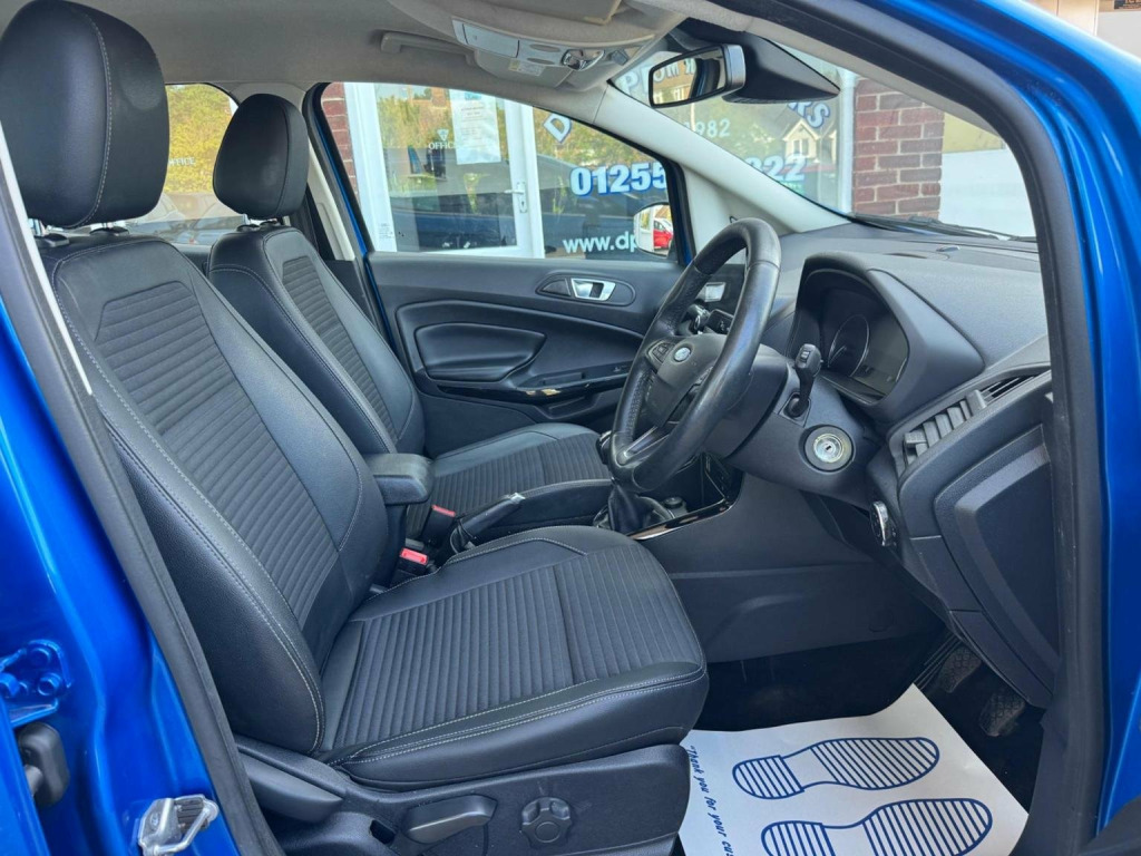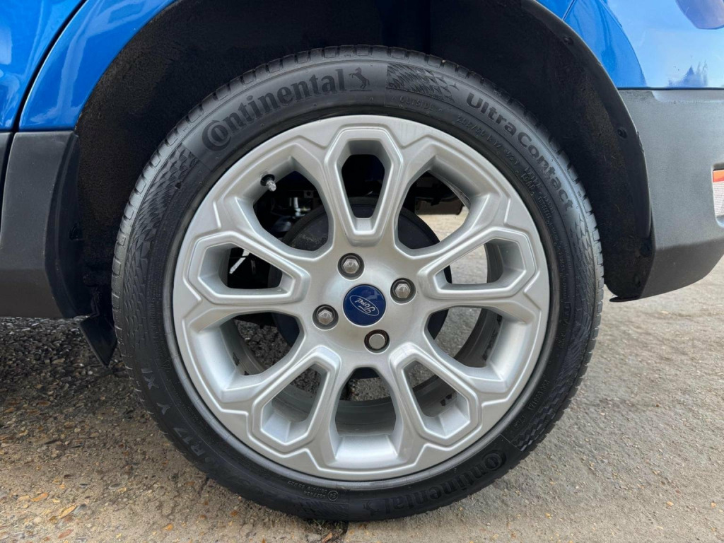 We have for you a Ford EcoSport 1.0T EcoBoost Titanium in metallic blue with black half leather trim covered just 47,000 miles with full Ford service history and one owner from new