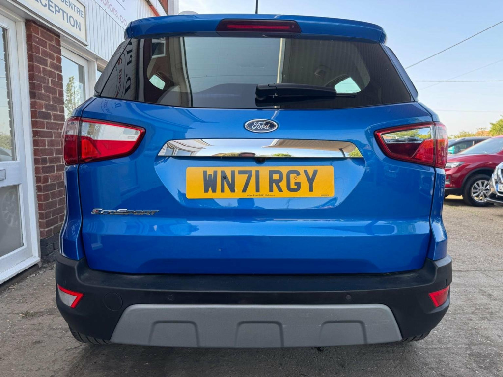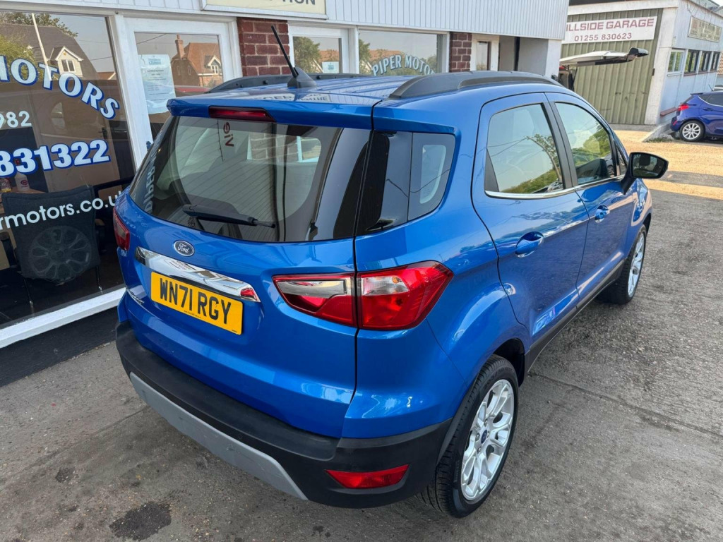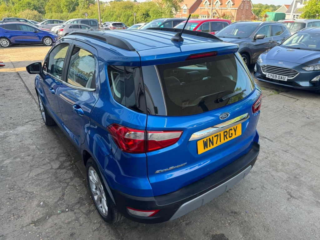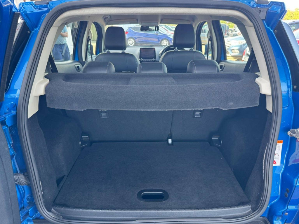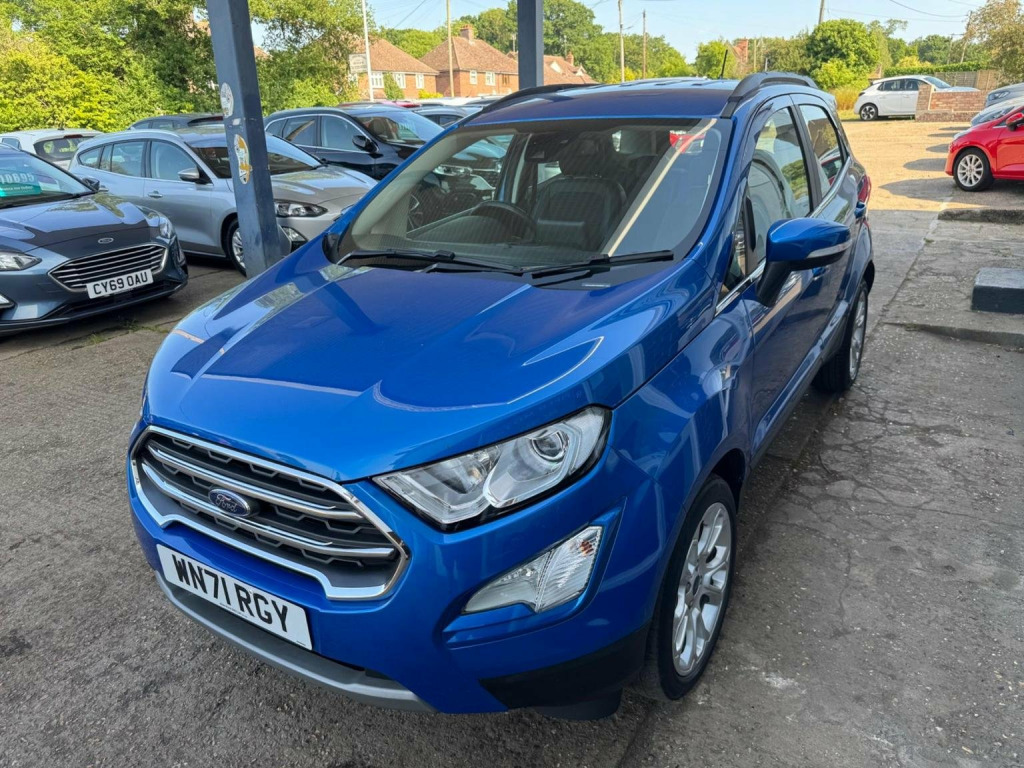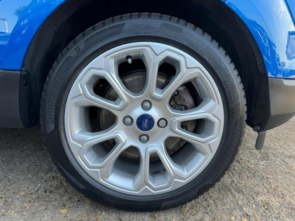We have for you a Ford EcoSport 1.0T EcoBoost Titanium in metallic blue with black half leather trim covered just 47,000 miles with full Ford service history and one owner from new