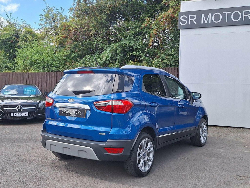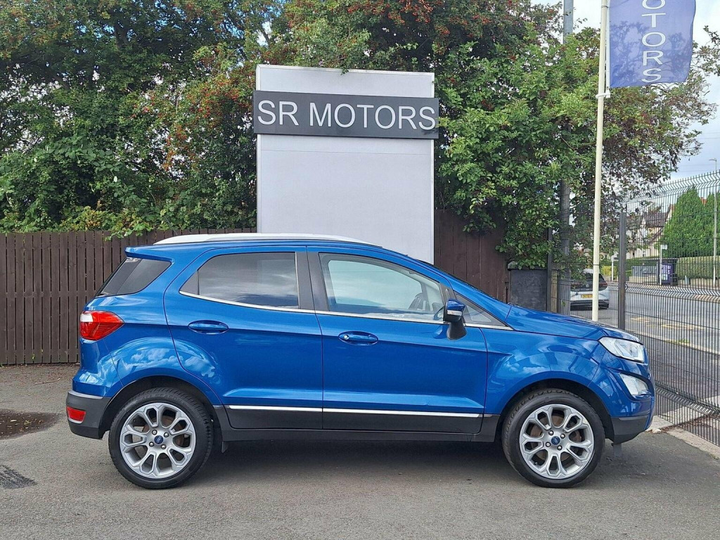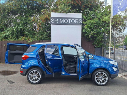 Discover this 2018 Ford EcoSport T Titanium, a well presented example ready for its next owner. This stylish SUV is powered by an efficient 1.0 litre petrol engine and meets Euro 6 emissions standards, contributing to its impressive fuel economy of 53 miles per gallon. Inside, youll find a host of convenient features designed to enhance your driving experience, including a Ford DAB Navigation System with Ford SYNC3, which seamlessly integrates with Android Auto and Apple CarPlay for effortless connectivity. Enjoy comfortable journeys thanks to the Electronic Automatic Temperature Control, ensuring the cabin remains at your preferred temperature, while Automatic Headlights provide added convenience by illuminating the road ahead when needed. This Ford EcoSport Titanium also boasts a Rear View Camera paired with Rear Parking Sensors, complete with Parking Assistance, making manoeuvring in tight spaces simpler and safer. The low CO2 emissions further highlight the EcoSports appeal as a more environmentally conscious choice compared to similar vehicles. This combination of practical features, efficient performance, and modern technology makes the 2018 Ford EcoSport T Titanium a compelling option for those seeking a versatile and user friendly compact SUV.3 MONTHS COMPREHENSIVE WARRANTY,3 MONTHS BREAK DOWN COVER, RESERVE for ONLY, £300.00, SR MOTORS is driven by the passion of all SR MOTORS staff, with over 10 years experience in the motor trade, all of our quality vehicles are personally selected. All vehicles are quality checked by our experienced technicians. We only supply vehicles of the highest standard, by doing so we ensure repeat business and recommendations. We believe in providing our customers with a personal and first class level of service to ensure an enjoyable experience. We also offer finance packages to suit all and we offer nationwide delivery. Visit our website for a further 200 cars to choose from. We are based on Paisley Road West, Glasgow, G52 3QH for further information you can contact us on 0141 319 8228 [email protected]. PLEASE