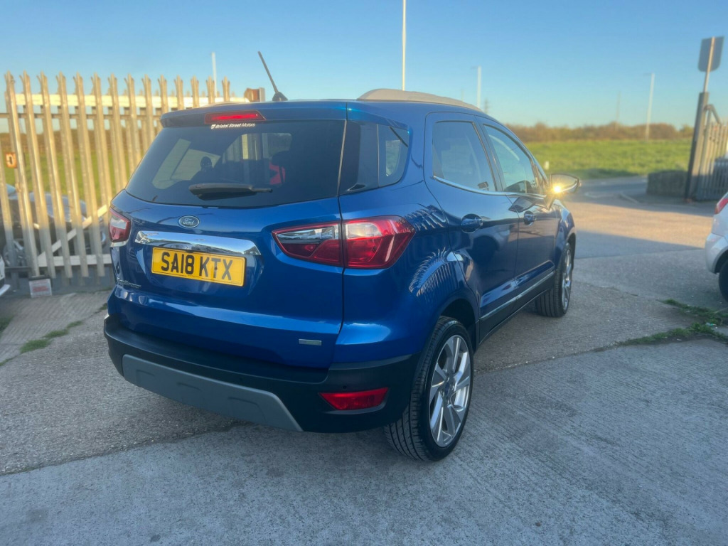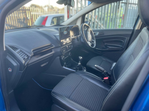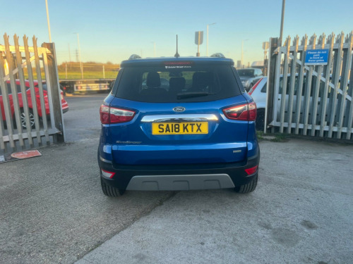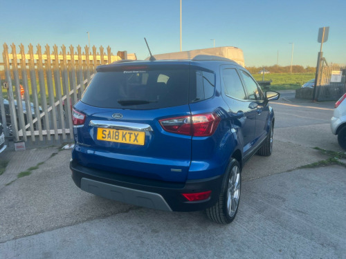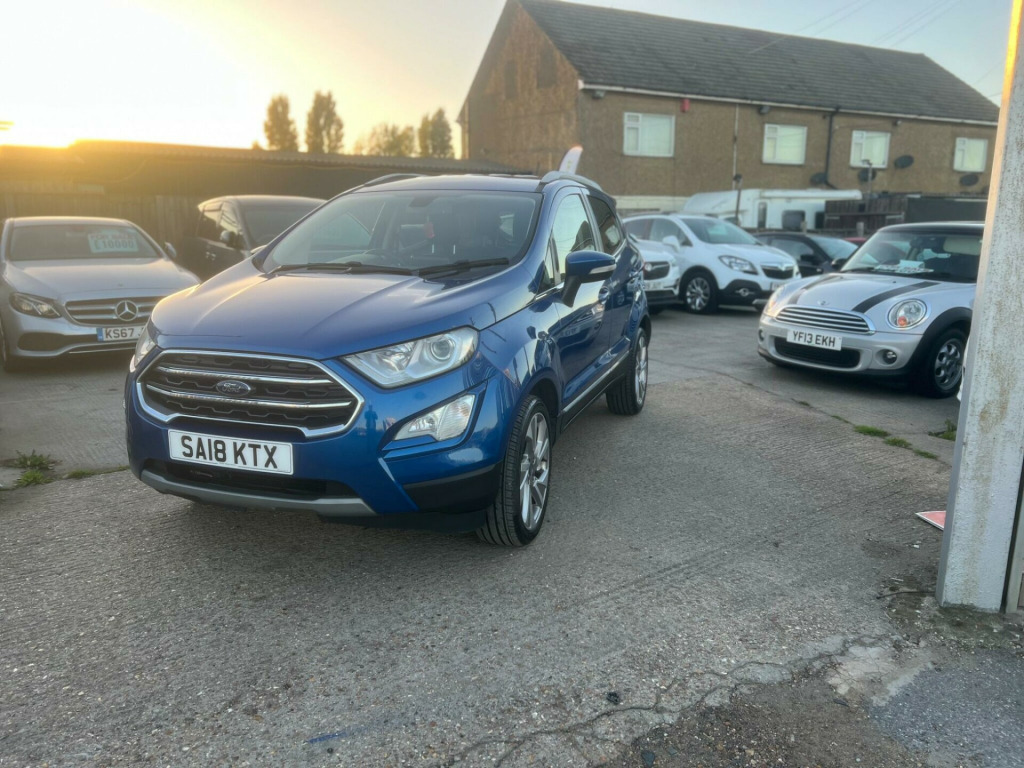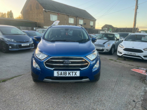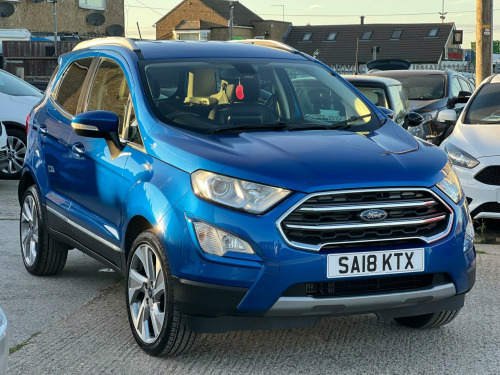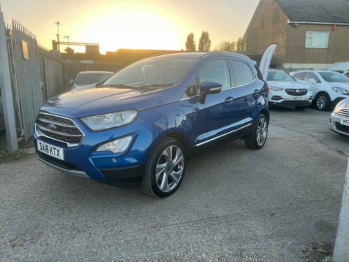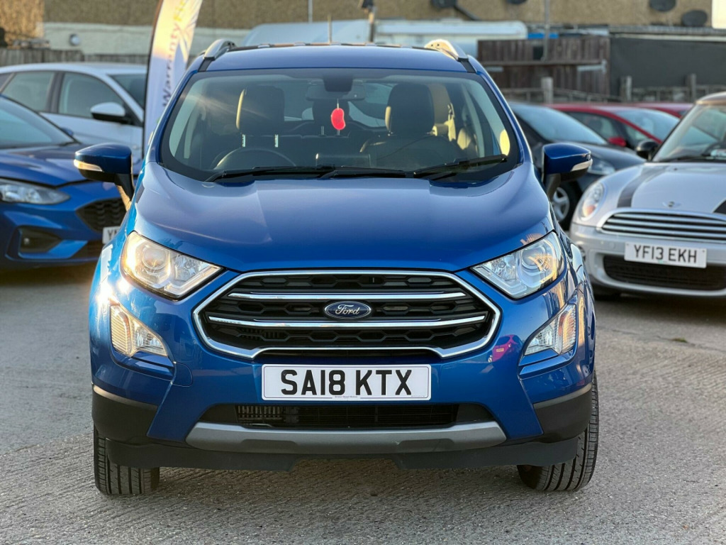 This 2018 Ford EcoSport T Titanium is presented with a clear vehicle history check, offering you peace of mind. This stylish SUV is equipped with a responsive 1.0L petrol engine and meets Euro 6 emissions standards. Inside, you'll find the Ford DAB Navigation System with Ford SYNC3, which conveniently includes Android Auto and Apple CarPlay, alongside Bluetooth connectivity. Comfort is assured with Electronic Automatic Temperature Control, providing climate control, while automatic headlights and a rear view camera with rear parking sensors enhance convenience and safety.The Ford EcoSport T Titanium stands out with its impressive fuel economy, achieving a highlight of 53 miles per gallon. This efficiency, combined with its low CO2 emissions, indicates that this vehicle offers a more economical and environmentally conscious driving experience compared to many others in its class. This well appointed EcoSport is ready for your next adventure. in alloy wheels - 10 spoke flash grey machined, adjustable boot load floor, airbags - curtain, airbags - driver and front passenger, airbags - drivers knee, airbags - front passenger de-activation switch, alarm - thatcham category 1 with volume sensing and perimeter, ambient lighting - instrument panel and footwell, analogue instrument cluster, anti-lock braking system - abs with electronic stability control - esc, automatic dimming rear view mirror, automatic headlights, centre console cup holder with chrome accent, centre console with sliding armrest, child locks, chrome headlight bezel, courtesy light - front with two map lights, courtesy light - rear, cruise control, door frame beltline - chrome, door handles - body colour, door mirrors - power-foldable heated with integrated side indicator and puddle lights, driver seat manual height- fore/aft and seatback angle adjustment and recliner, driver seat manual rotary knob lumbar support adjustment, driver and passengers sun visor with covered vanity mirror and ticket strip on drivers side, drivers stowage glovebox, epas - electric power assisted steering, electronic automatic temperature control - eatc, emergency assistance, engine immobiliser, ford dab navigation system with ford sync3, ford easy fuel - capless refuelling system, front 2-way head restraints, front fog lights, front grille - chrome, front seat - passenger manual - fore-aft and recline adjustment, front seats - 3 point seat belts with load limiter and seatbelt height adjust, front seats - seat-back map pockets, front suspension - independent with macpherson struts and anti-roll bar, front and rear bumper - body colour with dark insert, front and rear floor mats, front and rear folding grab handles, front and rear power points - 12v, full length overhead console with sunglasses holder, gear shift indicator, gearshift knob - black insert and chrome-finish ring, glovebox with cool bin - lid and illumination, halogen headlamps with led day running lights, halogen rear lights, handbrake grip - leather-trimmed, headlights - courtesy delay, headlights - levelling control, high mounted brake light, ips - intelligent protection system, keyless start with ford power start button, load compartment - lights, load compartment carpet, load compartment side trim incorporating shopping hooks, lower body side - door claddings - black with chrome insert, manual parking brake, mykey, power front and rear windows with global opening-closing, quickclear heated front windscreen with heated washer jets, rain sensing wipers, rear seat - fold and tumble 60-40 split - split back, rear seats - centre head restraint - up-down, rear seats - retractable rear seat belt - 3-point all positions, rear suspension - semi-independent twist beam with twin gas and oil-filled shock absorbers, rear view camera with rear parking sensors, remote central locking, rocker panel and side cladding - black, seat belt reminder system - drivers and front passengers, seats - isofix mounting provision for child seats - outer seats only, side impact door beams, silver roof rails, soft instrument panel cover, steering column - rake and reach adjustment, steering wheel - leather-trimmed with chrome inserts, storage - front passenger underseat area, suspension - front stabiliser bar, tailgate handle - chrome, threshold plates - front - stainless steel with ecosport logo, tie-down hooks, trip computer, tyre pressure monitoring system, tyre repair kit, wiper - intermittent rear wash-wipe